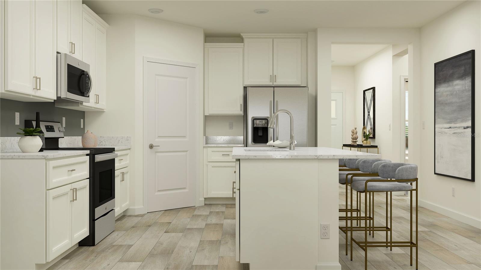 One or more photo(s) has been virtually staged. COMPLETED HOME!! MOVE IN READY!! BRAND NEW HOME - “One of Tampa Bay’s best Active Adult Lifestyle Communities” This convenient single-story home features two bedrooms, including a privately situated owner’s suite with an attached full bathroom and walk-in closet. On the opposite side, there is an open floorplan showcasing the stylish kitchen, dining room and inviting family room in a cohesive flow to deliver seamless everyday living. Nearby are glass-sliders that lead to a cozy covered patio, ideal for outdoor activities. Interior photos disclosed are different from the actual model being built. Nestled in the quiet city of San Antonio, FL, Mirada is a master-planned community with new single-family homes and villas for sale, exclusively for active adults ages 55 and better. You’ll have everything you need to live a relaxed lifestyle, including resort-style amenities such as the gorgeous 15-acre Lagoon, a swimming pool, clubhouse, fitness center, tennis and pickleball courts. Situated in Pasco County, the community is just a short drive from some of Tampa’s most popular dining and retail establishments, such as the Tampa Premium Outlets® in Wesley Chapel and Wiregrass Mall.