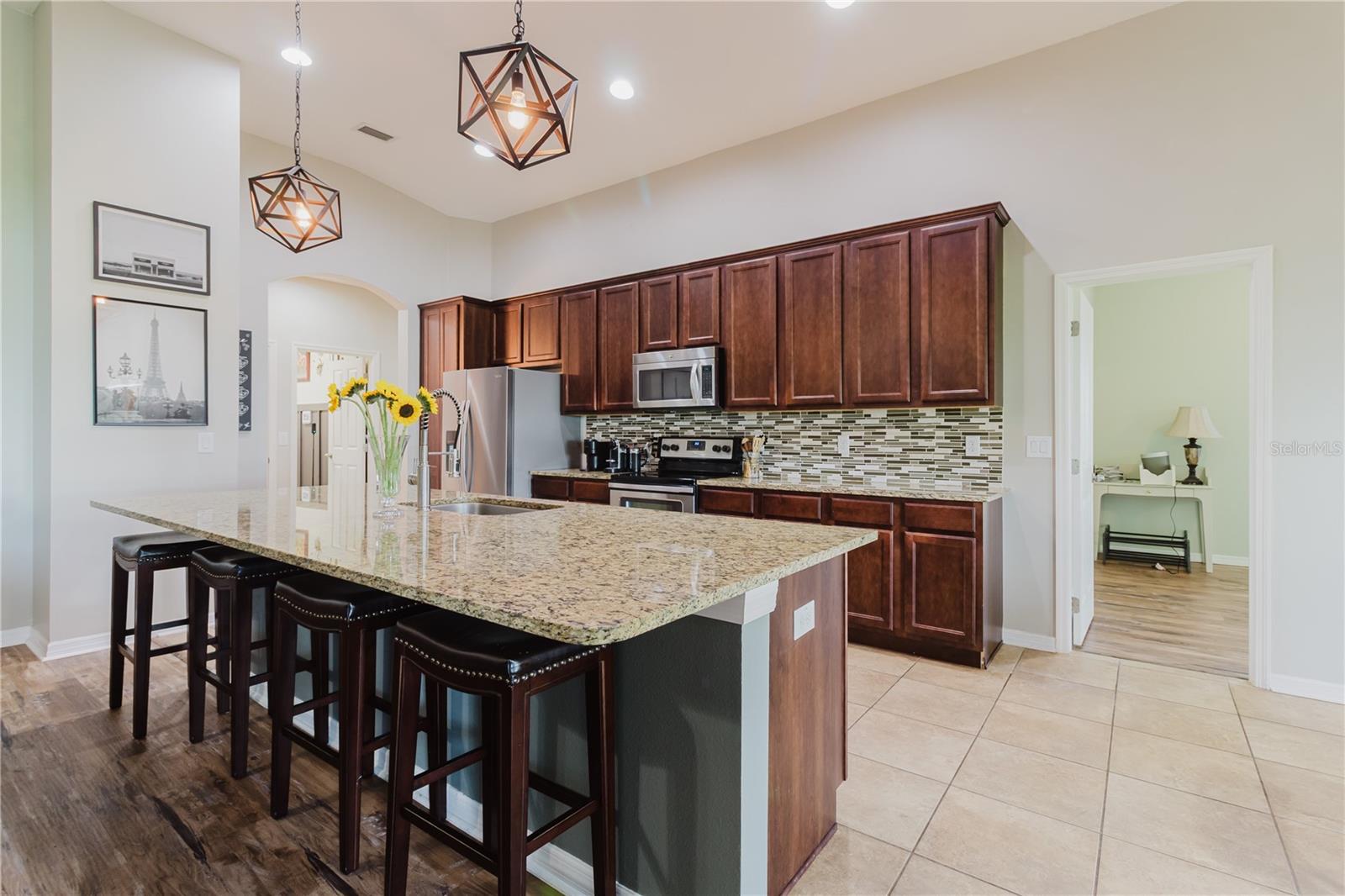 Welcome to your dream home in the Oak Glen neighborhood in San Antonio, Florida. Nestled on a spacious ¼-acre corner lot, this beautifully designed 4-bedroom, 3-bathroom residence offers the perfect blend of luxury, functionality, and modern comfort. Step inside to an open-concept layout featuring a gourmet kitchen complete with sleek modern cabinetry, granite countertops, oversized kitchen island, and stainless steel appliances—perfect for entertaining or creating culinary masterpieces. The expansive living areas are filled with natural light and designed for both everyday living and hosting. This home offers a separate office, game room, a large dining room, an open concept living room, and many upgrades throughout the home. Retreat to the spacious master suite, which boasts a walk-in closet and a spa-like ensuite bathroom with dual vanities and luxurious finishes. This home offers a large laundry room area with extra storage, AC was replaced in 2022, offering an 3 car garage, and a vinyl a fenced surrounds the entire backyard. Enjoy low property taxes and minimal HOA fees. Conveniently located just minutes from St Leo University, and 30 minutes to downtown Tampa, close to top shopping destinations like The Grove at Wesley Chapel, Krates, Wiregrass Mall, and Tampa Premium Outlets, this home truly has it all. Don't miss the immersive 3D Matterport tour to explore every inch of this incredible home!