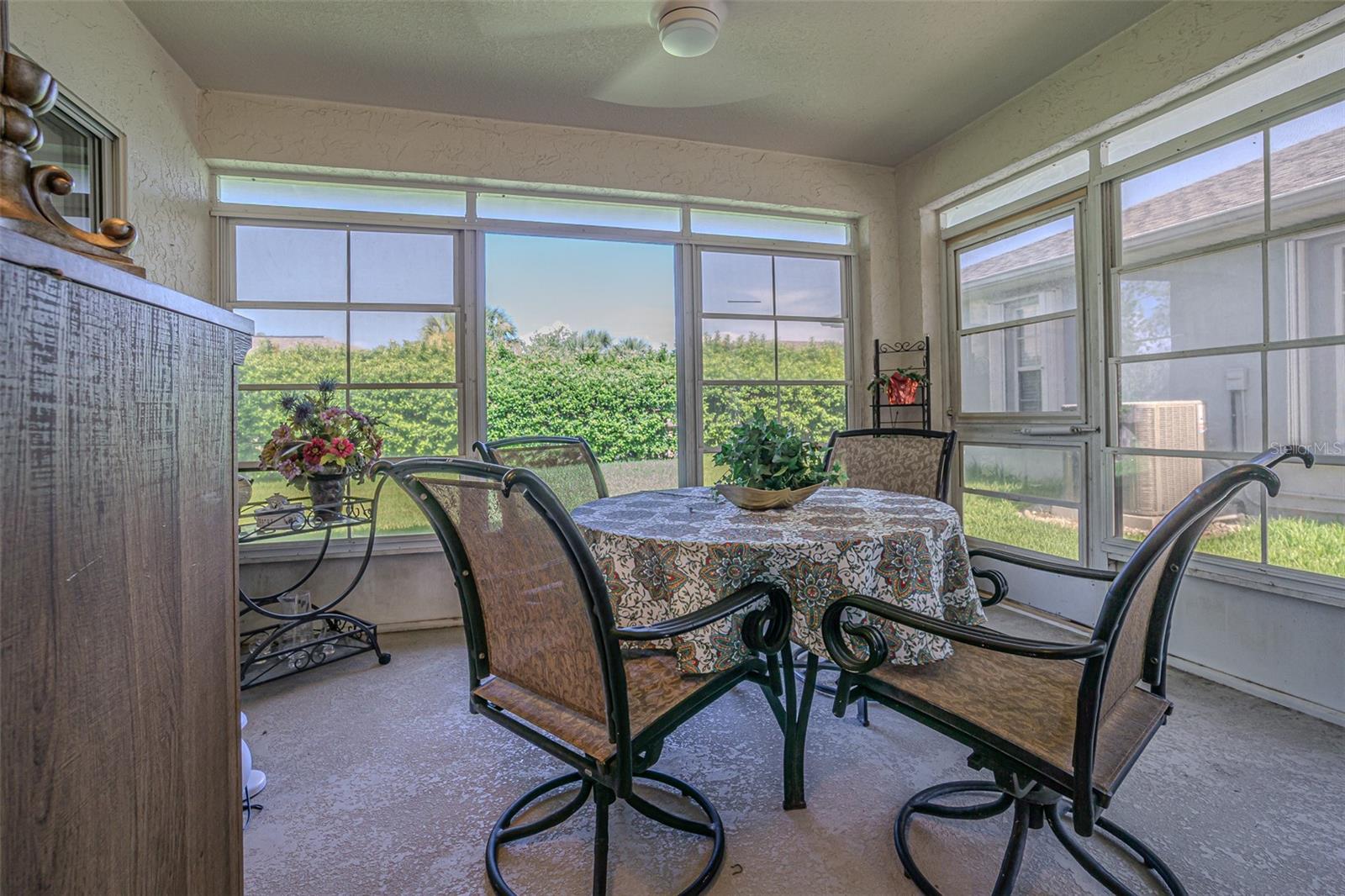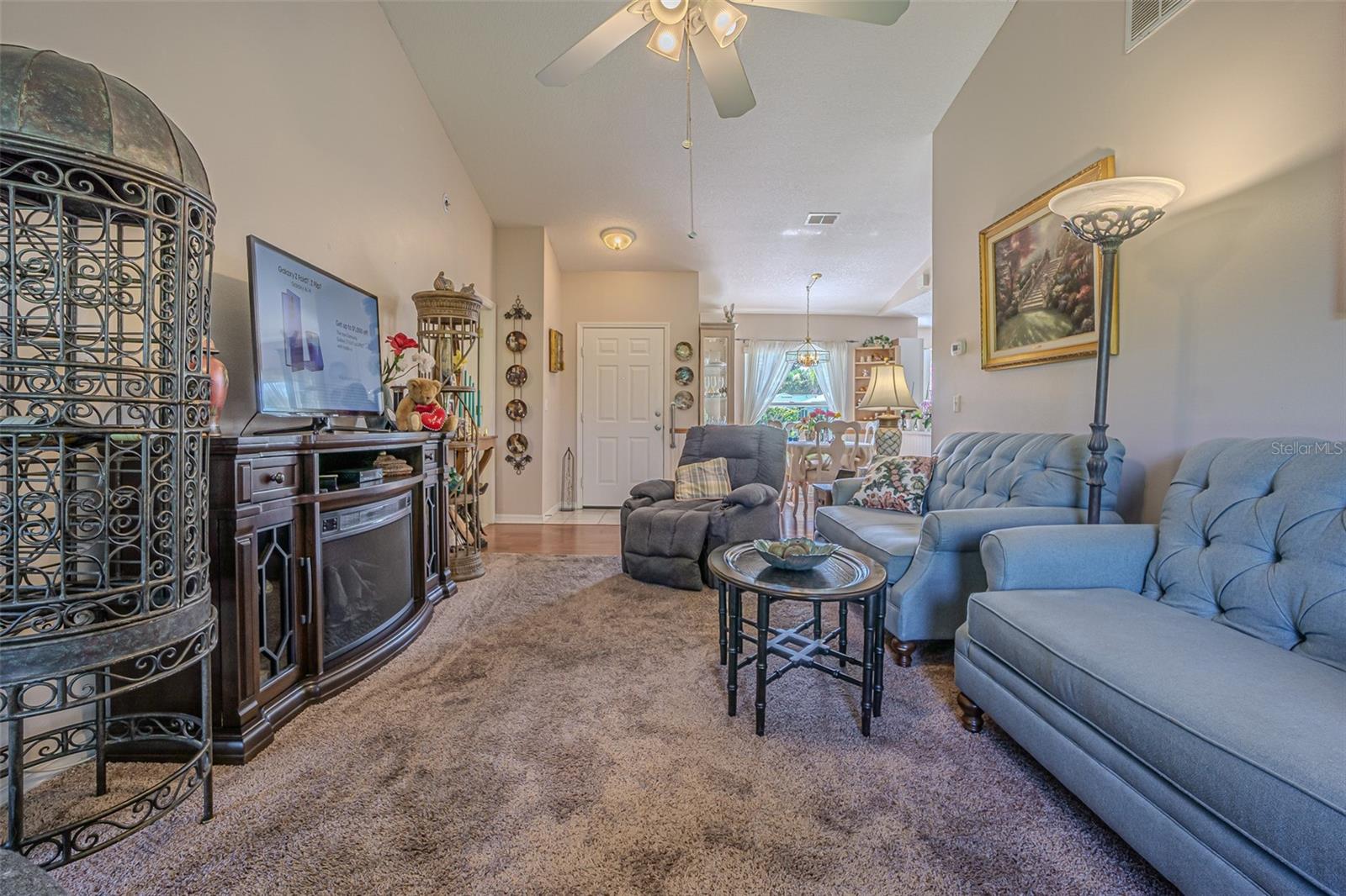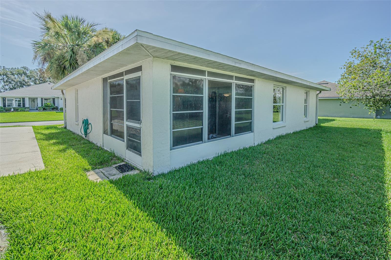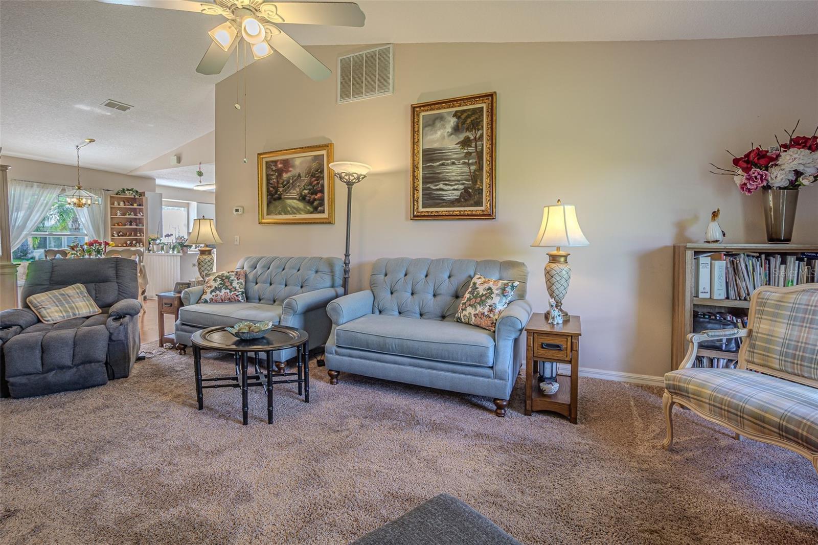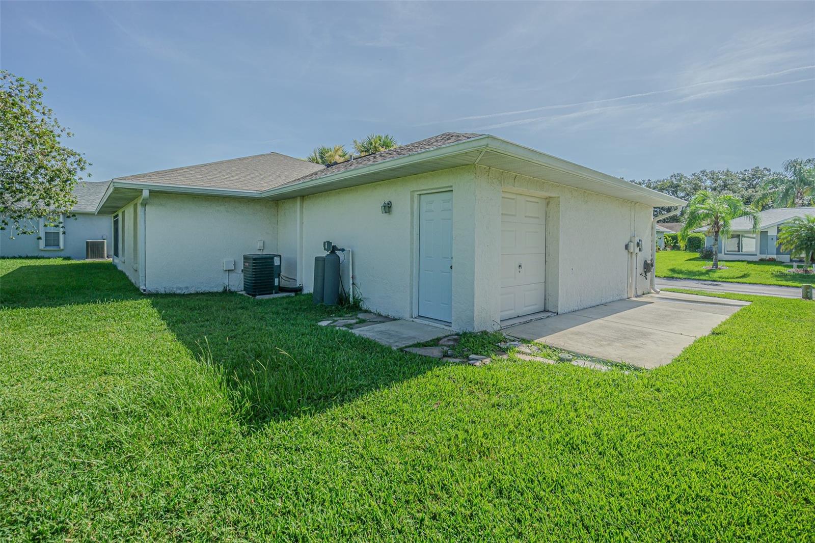 Live the RESORT Lifestyle in this updated 2-bedroom, 2-bath home located in the highly sought after 55+ gated community of Tampa Bay Golf & Tennis Club! Situated on an oversized lot, this modified Riviera model offers a thoughtfully expanded great room floor plan and a rare side-entry golf cart garage. The home boasts cathedral ceilings, double-pane windows, and a fully enclosed Florida room with vinyl windows... perfect for enjoying your morning coffee or entertaining guests overlooking your private backyard. Screened front entry welcomes you and once inside you will be greeted with a Light, Bright, OPEN floorplan with Cathedral ceilings. The U-shaped kitchen offers a window over the sink overlooking the front landscape, white cabinets with contrasting drawers for added storage, breakfast bar OPEN to dining area plus a closet pantry. All appliances are included... Stainless steel refrigerator, smooth top range, dishwasher, counter microwave, washer/dryer, as well as all window treatments and upgraded ceiling fans. The new garage door opener comes with two transmitters for added convenience. Split bedroom layout ensures privacy for both homeowners and guests with the cathedral ceiling, SPACIOUS Great room in the center to make entertaining a breeze! Great room and spacious primary suite features sliding glass doors to enclosed lanai, with spacious walk-in closet and a bath ensuite off the primary bedroom, featuring a walk-in shower, while the guest bath offers a tub/shower combo. Modified Rivera plan includes an inside utility closet off the kitchen instead of the washer and dryer in the garage. Major upgrades include a brand NEW ROOF in August 2023 with a limited lifetime warranty, newer A/C unit (August 2023) with a 5-year warranty plus a Culligan whole-house water softener system (owned, not leased). Additional highlights include gutters, an extra-wide driveway, screened-in entry and lanai areas under roof, creating cross breezes and wonderful outdoor living space. This Move in Ready property offers fantastic value, with a lot large enough to add your own private pool. Residents of Tampa Bay Golf & Tennis Club enjoy access to two championship golf courses, 15,000 sq. ft. clubhouse, heated community pool, full-service restaurant and bar, fitness center, library, billiards, shuffleboard, poker tables, two dog parks, and a vibrant calendar of social clubs and activities including dance lessons, painting, crafts... in addition to planned onsite entertainment, dinner shows and travel excursions. This is your opportunity to enjoy RESORT SYTLE living in a tranquil yet active community—perfect for downsizing or retiring in comfort. Located just North of Tampa with easy access to Ocala, Orlando, Tampa, Lakeland, Wesley Chapel, International airports or the beaches! CALL TODAY!