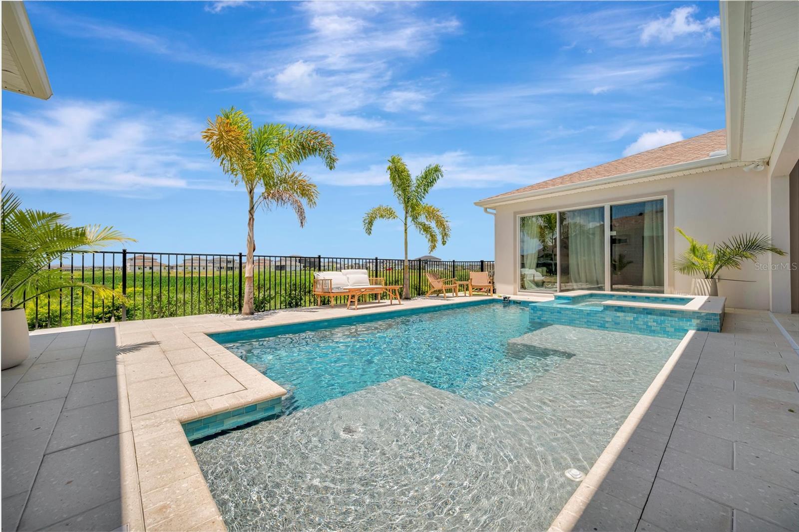 BEST LOT AND BEST VALUE IN THE COMMUNITY - OVER $250,000 BELOW WHAT OWNERS PAID!!! OWNERS OFFERING $12,500.00 BACK AT CLOSING!! Exceptional Quality & Privacy – Luxuriously Updated Courtyard Pool Home with Casita. IMPACT GLASS THROUGHOUT!!! Welcome to 10391 Torchwood Sea Way, a beautifully upgraded 4-bedroom, 3-and 1/2 bathroom home situated on an exceptionally private preserve lot with no rear neighbors and more importantly NO COURTYARD NEIGHBORS!! This rare courtyard-style home features a stunning saltwater pool and spa with swim up bar with built-in stools — the perfect backdrop for outdoor entertaining and relaxation. Step into your own private oasis with a 1-bedroom, 1-bathroom casita and a fully equipped cabana-style outdoor kitchen and grill, ideal for hosting guests, multigenerational living, or creating the ultimate home office or retreat. Inside, the open-concept living area boasts a designer kitchen with a massive center island, upgraded appliances, large walk-in pantry, and a pot filler — a dream for any chef. The luxurious primary suite offers private access to the courtyard pool and spa, and a spa-inspired ensuite bath with dual vanities, an oversized walk-in shower, and a gorgeous freestanding soaking tub. Located in the Mirada Community, a one-of-a-kind lagoon lifestyle destination featuring: A massive crystal-clear lagoon with sandy beaches, Live music and entertainment, Acres of resort-style water activities A vibrant atmosphere that feels like your own private resort every day.