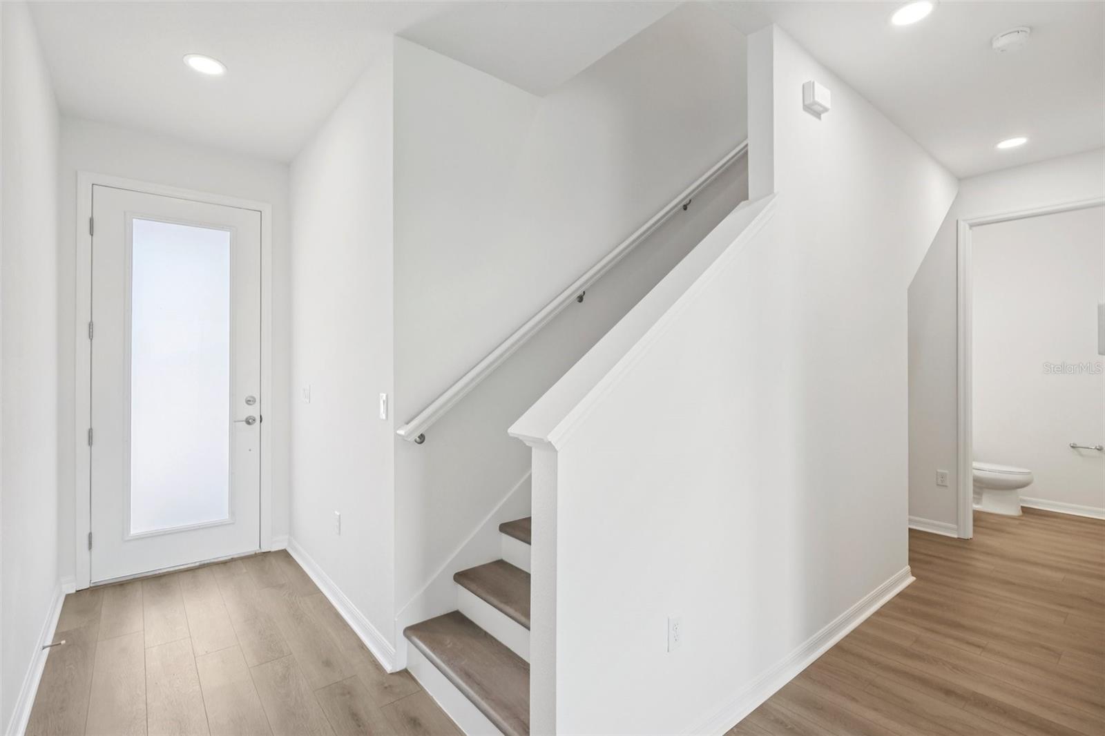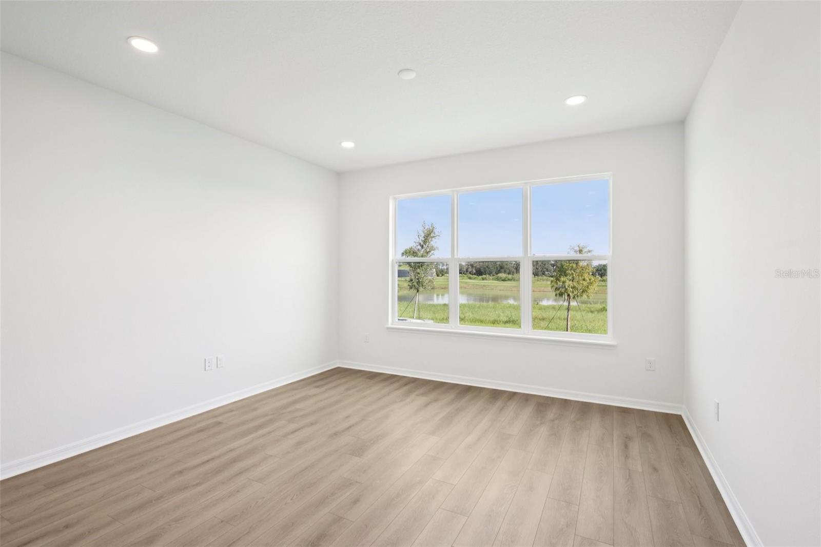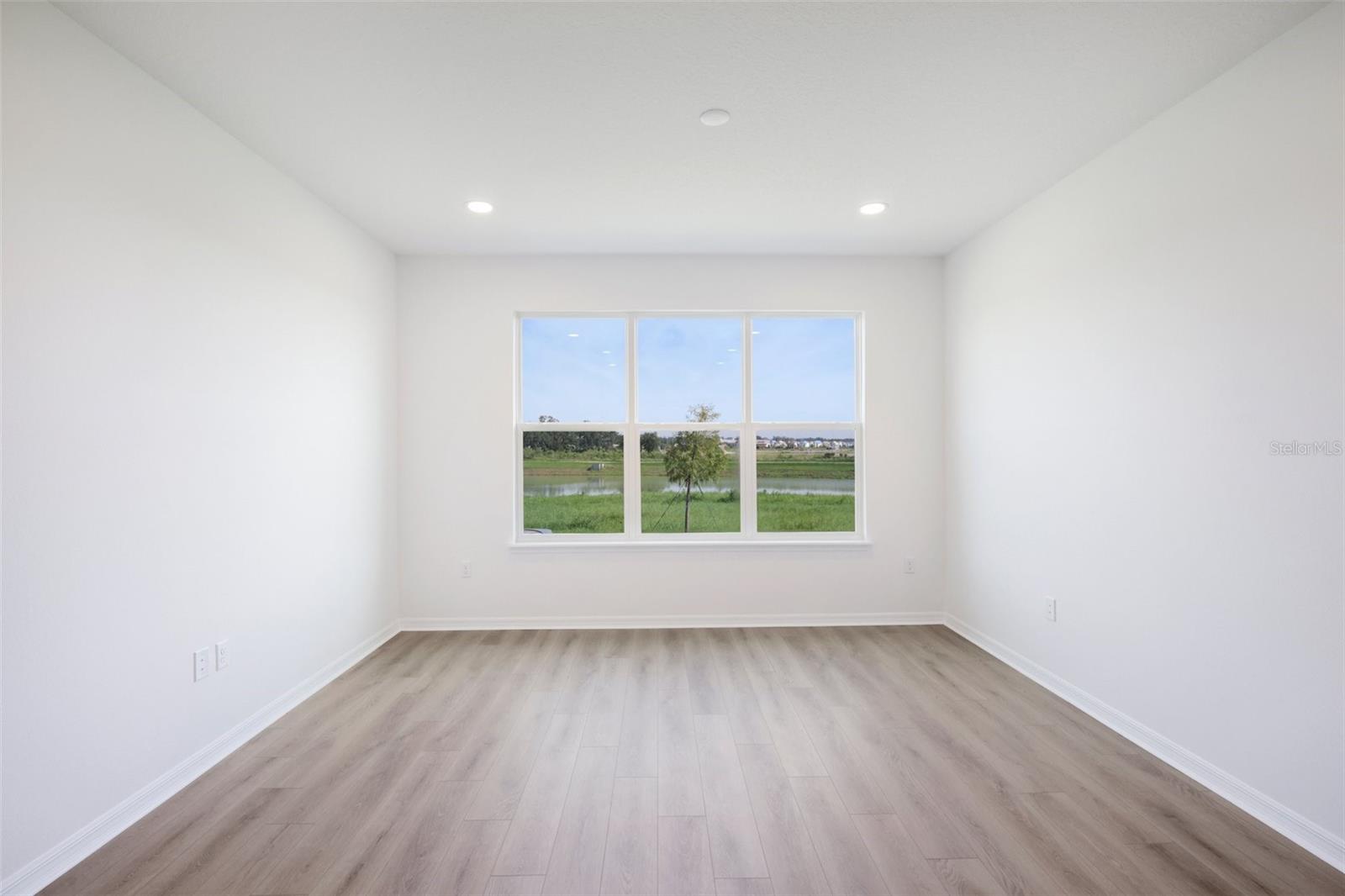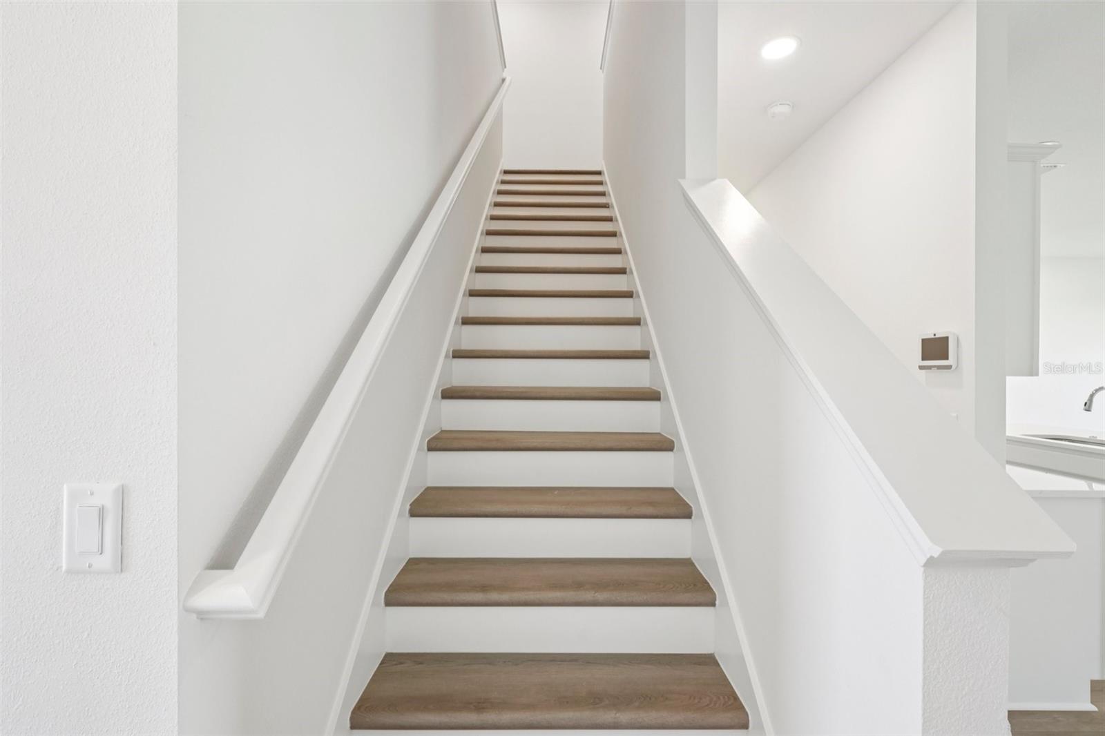 Enjoy bright, modern living in this beautifully finished 3-bedroom, 2.5-bath Aruba townhome with a 2-car garage, located in the gated Isla Mirada community within the Mirada master-planned development. With a fresh, light interior design and peaceful wetland views, this home offers both comfort and style in a low-maintenance setting. Inside, you’ll find luxury vinyl plank flooring throughout—no carpet—plus soaring ceilings and large windows that fill the home with natural light. The kitchen is finished cabinetry, light quartz countertops, and a designer backsplash, creating a clean and inviting space that flows into the open-concept living and dining areas. Upstairs, three generously sized bedrooms include a serene primary suite with modern finishes and two versatile guest rooms or work-from-home options. Outside, your private lanai overlooks tranquil water views with no rear neighbors—perfect for enjoying peaceful mornings or winding down in the evenings. With access to resort-style amenities and just a short walk from the 15-acre Mirada Lagoon, this home offers the best of Florida living in one of Pasco County’s fastest-growing communities.