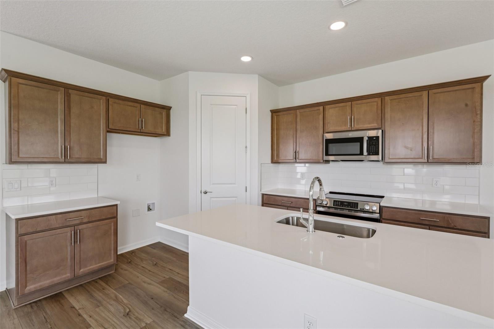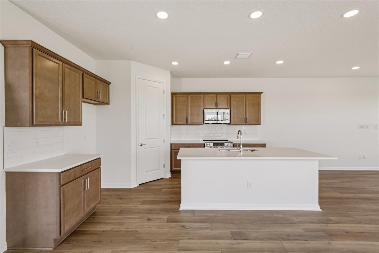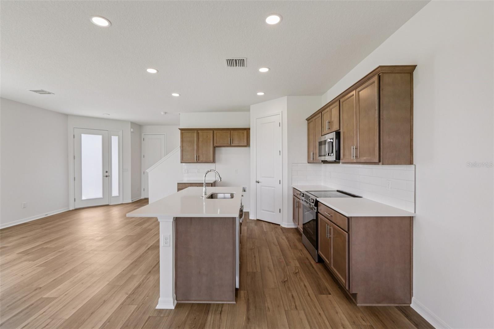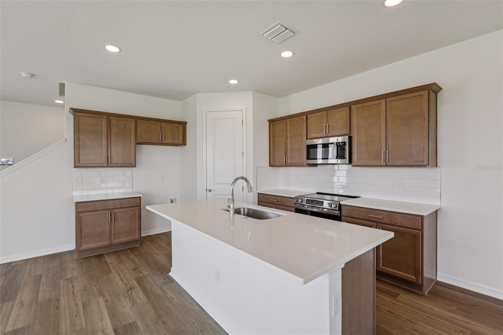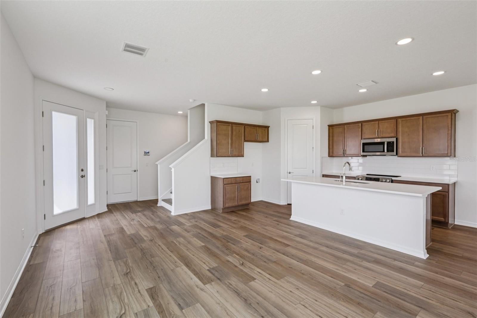 Don’t miss this rare opportunity to own one of the few available Bimini floorplans in Isla Mirada, a gated neighborhood within the highly sought-after Mirada master-planned community. This spacious 4-bedroom, 2.5-bath, 2-story townhome offers a flexible and functional layout that’s hard to find—and current availability is extremely limited. Designed for everyday comfort and modern living, this home features luxury vinyl plank flooring throughout with no carpet, high ceilings, and a bright open-concept layout. The kitchen includes quartz countertops, a designer tile backsplash, and opens seamlessly to the dining and living areas—ideal for both entertaining and day-to-day life. Upstairs, four full bedrooms provide plenty of space for family, guests, or a home office. Step outside to your private lanai and take in tranquil views of scenic wetlands and a scenic walking trail just beyond your backyard—providing a peaceful, natural setting with no rear neighbors. Located of the 15-acre Mirada Lagoon and surrounded by resort-style amenities, this low-maintenance townhome blends convenience, comfort, and an unbeatable outdoor lifestyle. With its rare floorplan, upgraded finishes, and prime location, this home is a standout opportunity in one of Pasco County’s most exciting new communities.