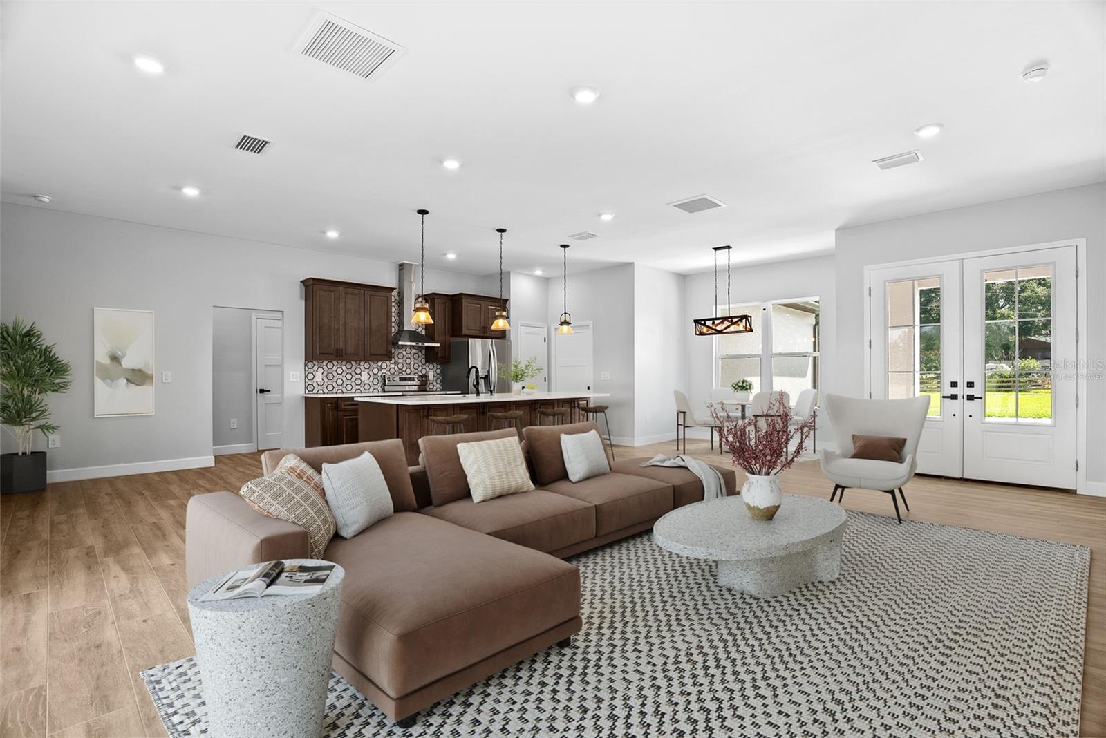 One or more photo(s) has been virtually staged. Welcome to this beautifully crafted modern farmhouse offering 2,522 sq ft of living space, nestled on 7.69 acres in a quiet, secluded location at the end of the road in San Antonio, FL. This property is an oasis of peace and privacy while being just minutes from I-75 and SR 52 for easy commuting. Key features include a spacious, open floor plan, quartz countertops throughout, a large flex room that can be used as an office, playroom, or gym. This property is perfect for animals including horses, livestock, and pets. Ideal for cultivating your dream garden or homestead. The large enclosed pole barn is perfect for additional storage, vehicles, workshop, or equipment, and there is a second open pole barn with stalls. No HOA so enjoy the freedom to personalize. All of this including quick access to major highways yet still tucked away in nature. With the peaceful charm of country living and plenty of room for family, animals, and hobbies, this is the ideal property for anyone looking for space, privacy, and convenience. Schedule a tour today and experience this amazing property!