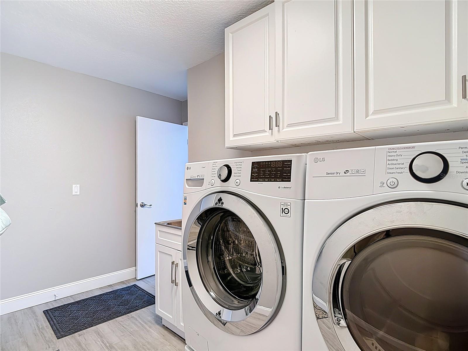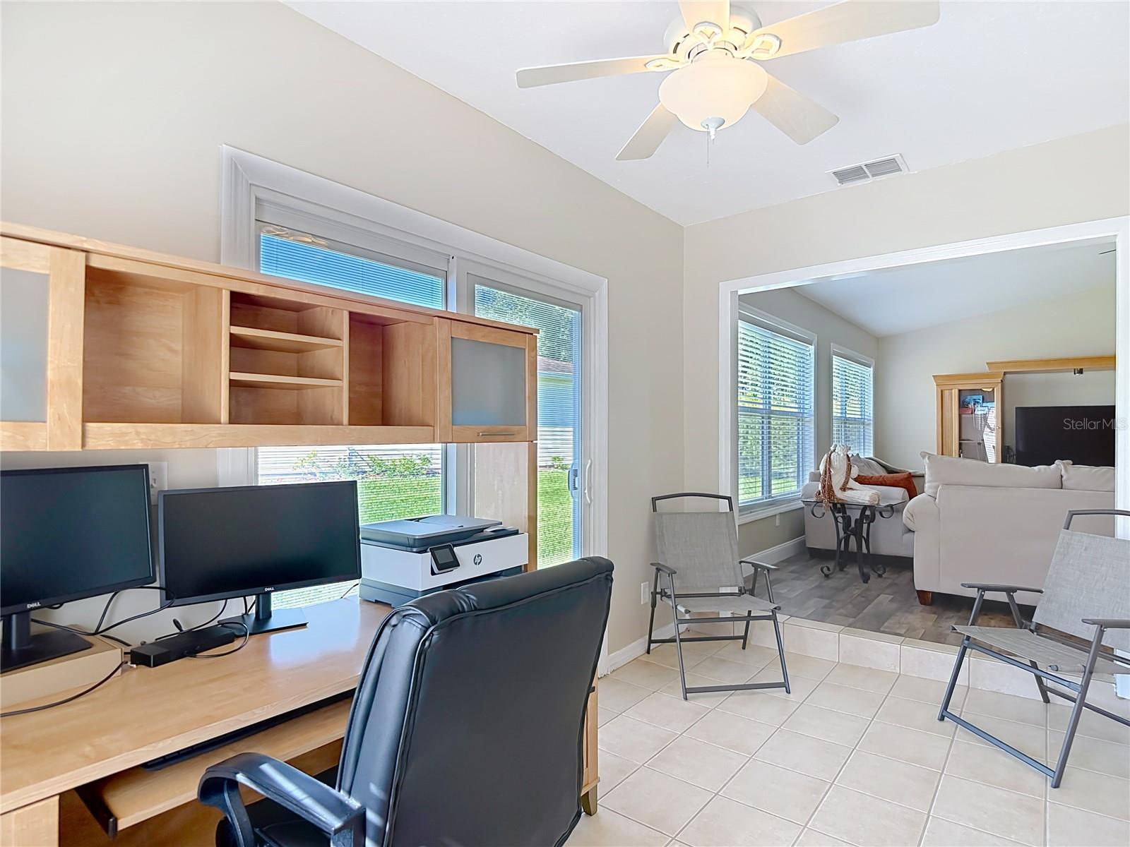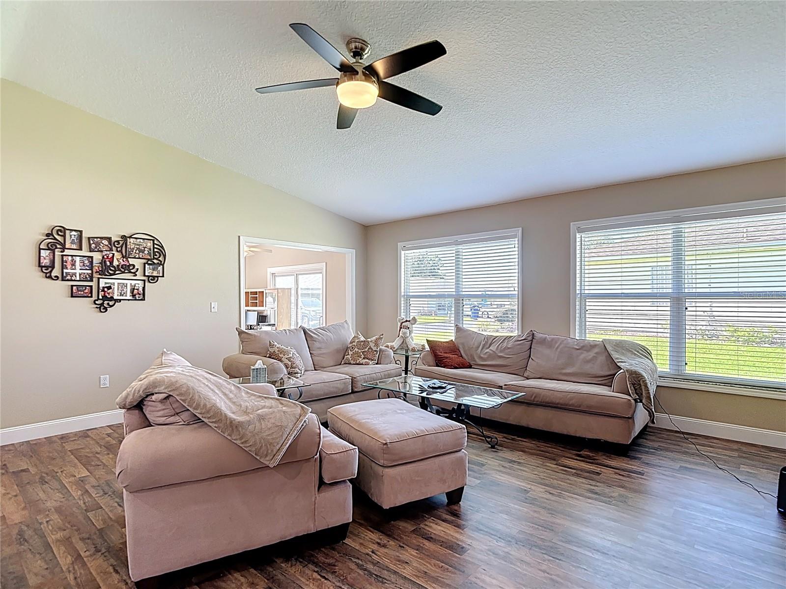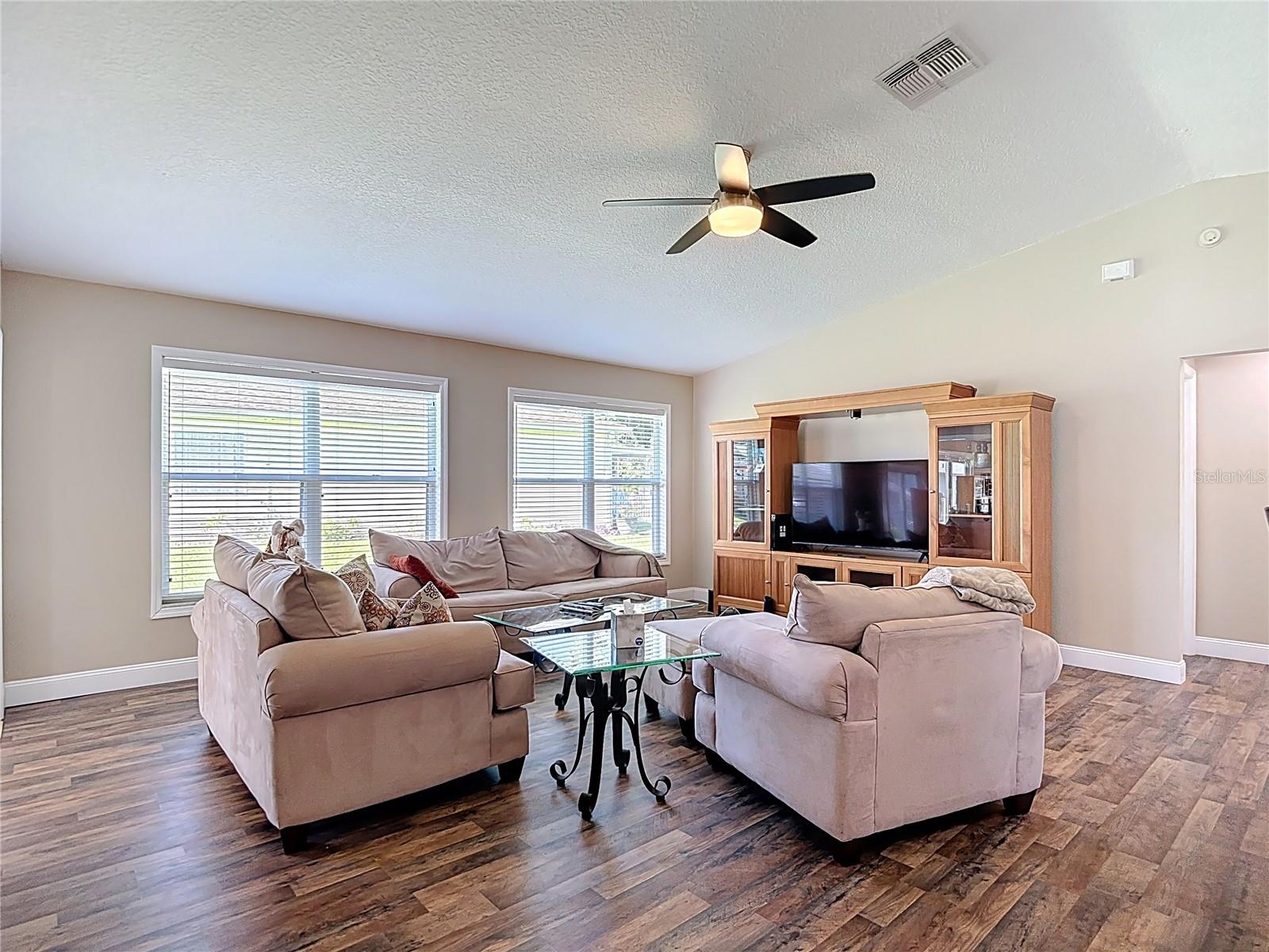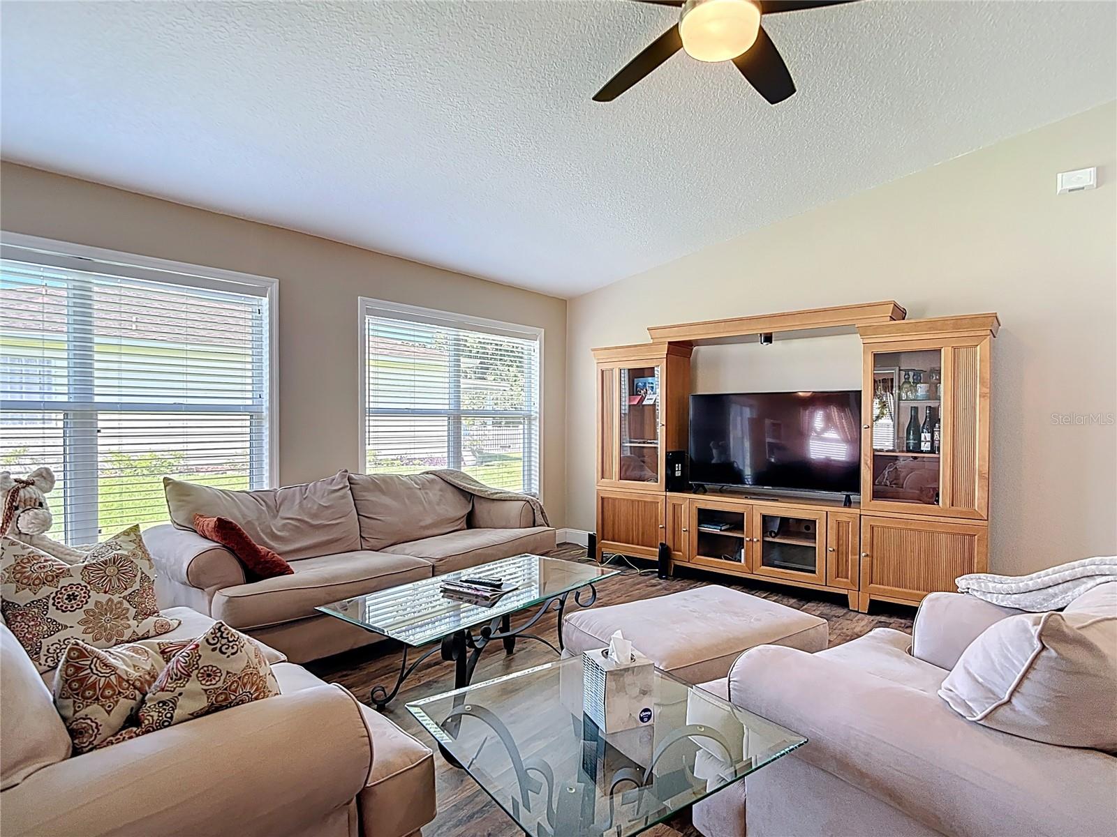 LIGHT, BRIGHT AND OPEN!! This spacious two bedroom + flex space or den office with two full bathrooms, two car garage single family home on a corner homesite is waiting for you in the sought after 55+ Golf community of Tampa Bay Golf and Country Club! Upon approaching the home, you are greeted by a cozy screened in porch, once inside your eye will be drawn to the many windows that allow natural light to pour inside as well as and the soaring ceilings which make the living area feel extra roomy. The kitchen features a sunny eat-in breakfast nook, plenty of cabinet and countertop space along with a breakfast bar overlooking the living area. The generous family room makes the perfect space for entertaining as well as giving you and your guests plenty of room to relax and enjoy company. The master suite is generous in size and features French doors into the adjoining flex space. This area is perfect for a home office, a study, an exercise room or hobby room! The master bathroom offers a walk-in closet, dual sinks with ample counter space, a linen closet and walk in shower! The secondary bedroom is located on the opposite side of the home allowing privacy between bedrooms with a full bathroom conveniently close by. You’ll love the huge indoor laundry room featuring built in cabinets, washer, dryer and laundry tub! Top this off with a whole house water filtration system and reverse osmosis at the kitchen sink! All GE stainless steel appliances included! New garage door motor 2019. New disposal 2019. Seller will install a new roof before closing with an expectable offer, Home also features gutters all around, Front storm door, new tile in all wet areas, new vinyl plank flooring with high base bords in all living area new counter tops in kitchen and both baths, new A/C 2025 and all newer plumbing fixtures thru out. Come enjoy the relaxed active adult lifestyle that Tampa Bay Golf and Country Club provides including a manned, gated entrance, beautifully landscaped community with abundant amenities such as a fitness center, tennis courts, 2 community pools and hot tub, pet parks, shuffleboard and pickle ball courts and community clubhouse! HOA Fee Includes Basic Cable. NO CDD fees! Come see your new home today!