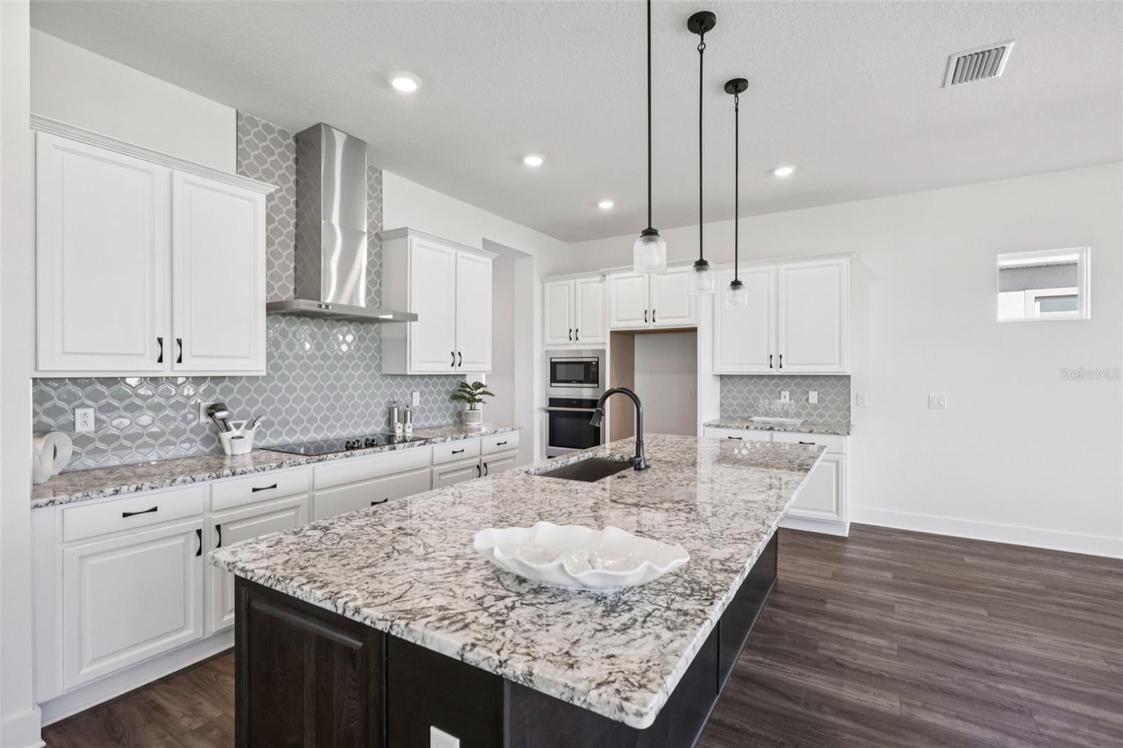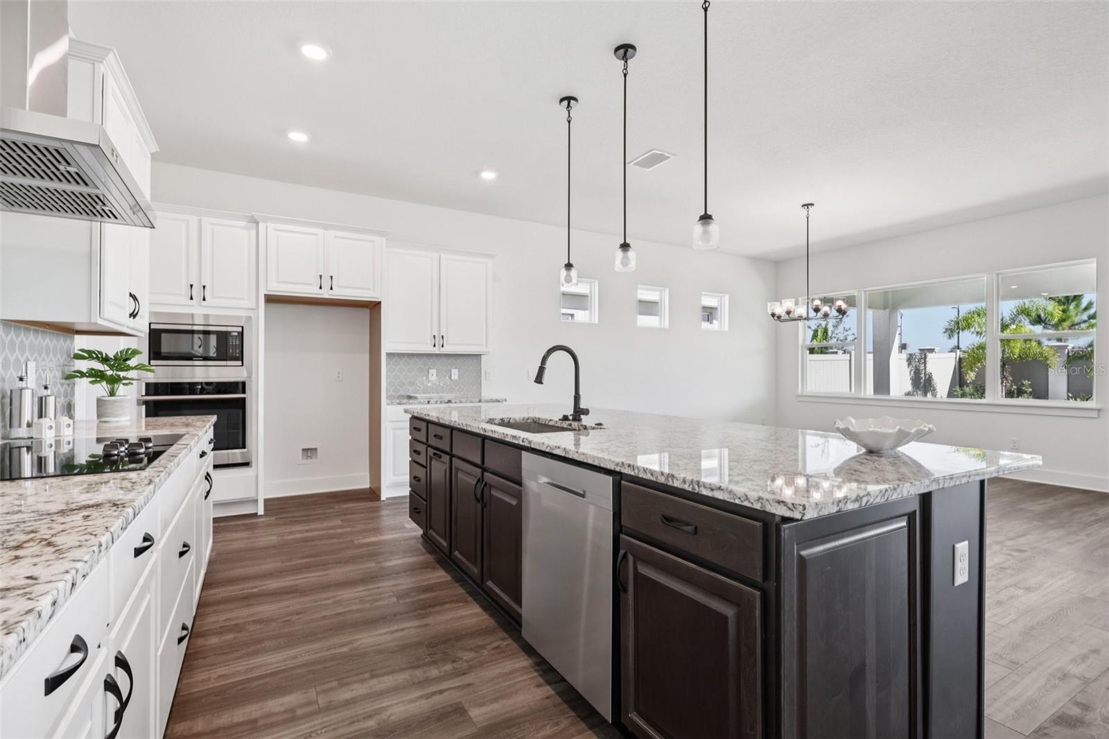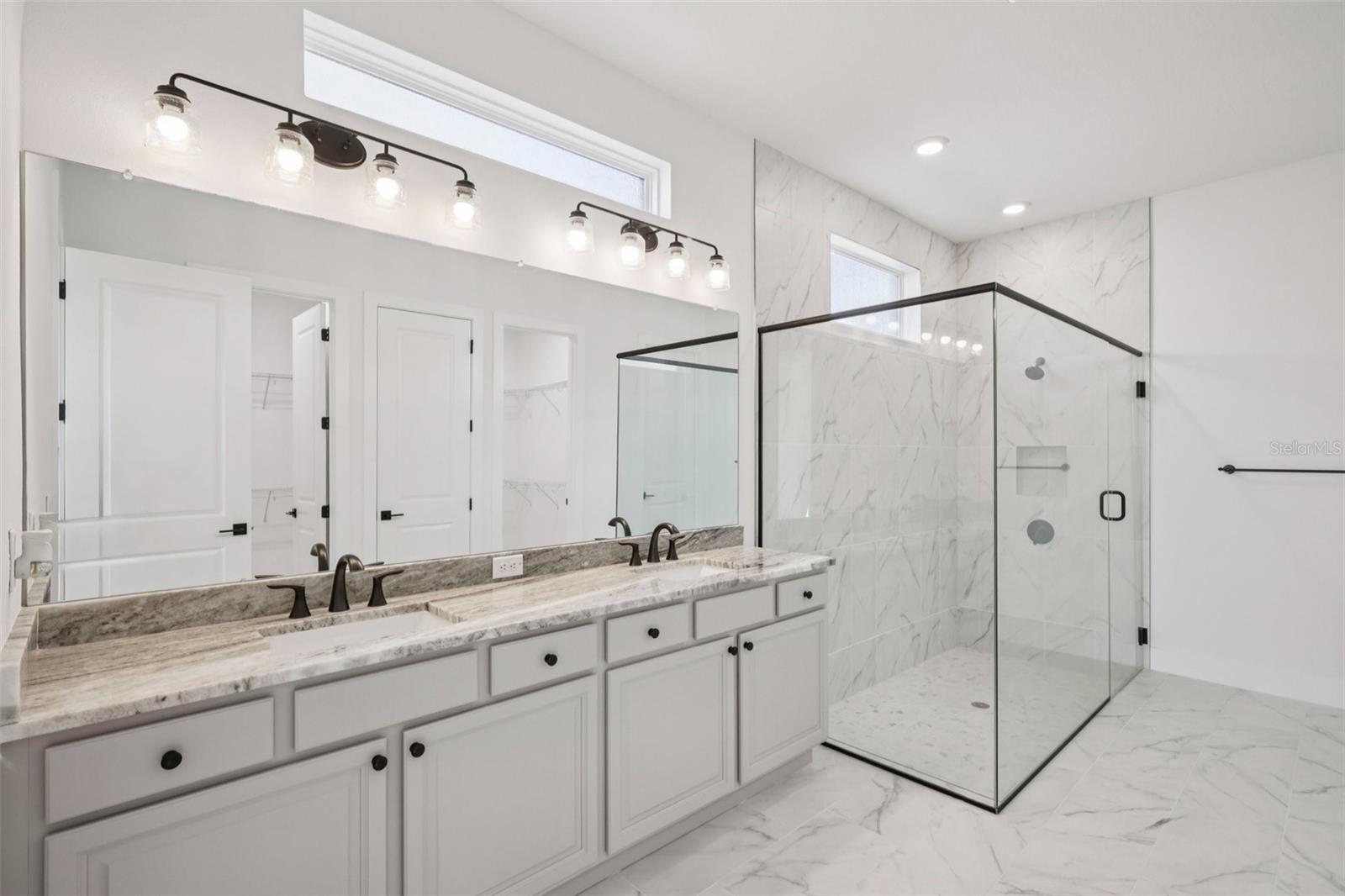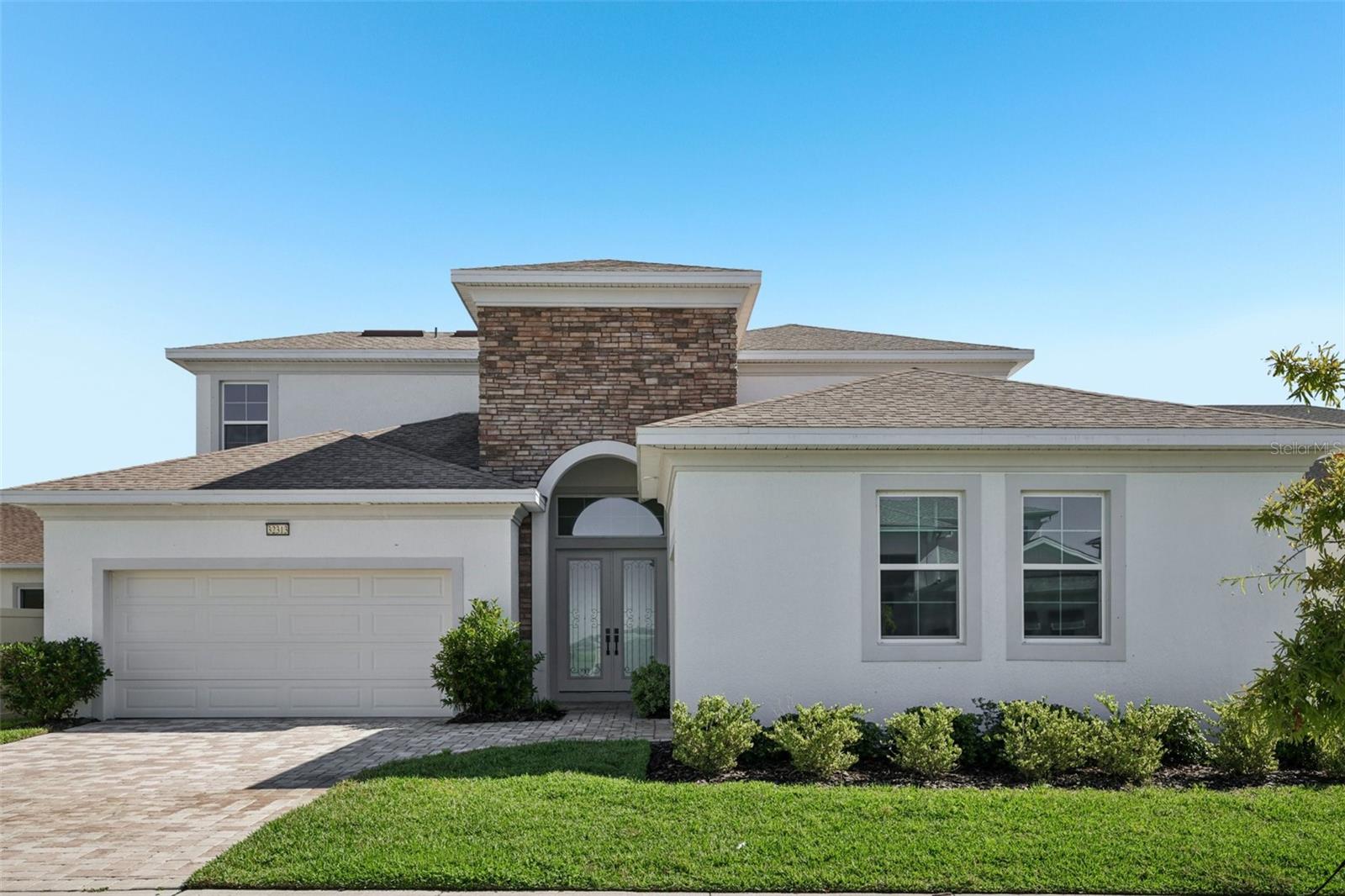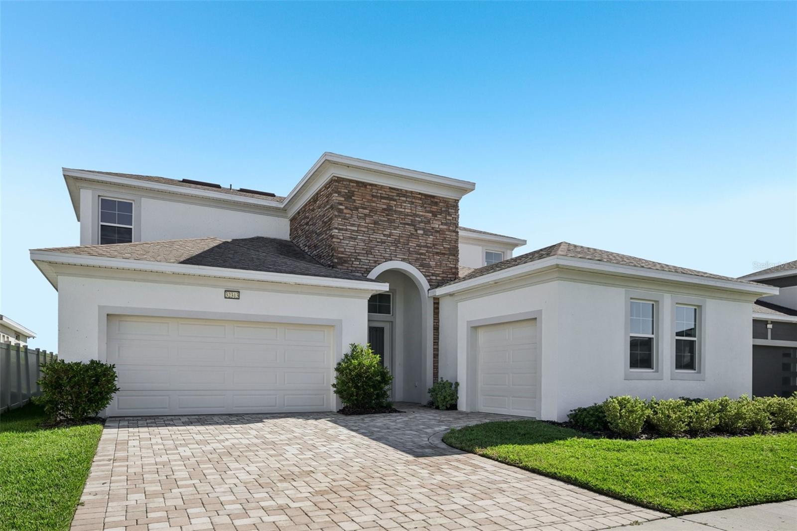 One or more photo(s) has been virtually staged. Welcome to your dream home in the desirable Mirada community! This beautifully designed Hawk floor plan offers over 3,000 sq ft of thoughtfully crafted living space, perfect for modern families and entertainers alike. Step into a grand foyer that leads to a versatile flex room—ideal for a home office, playroom, or formal sitting area—alongside a convenient powder room for guests. Enjoy the unique functionality of two separate garage entrances—a 2-car garage and a separate 1-car garage, ideal for multi-generational living or extra storage. The gourmet kitchen is the heart of the home, featuring a massive walk-in pantry, sleek finishes, and a large center island with sink that flows seamlessly into the bright dining area and expansive great room. Sliding glass doors open to a covered lanai, creating the perfect indoor-outdoor living experience. On the main level, the luxurious primary suite boasts dual walk-in closets, a spa-like ensuite bath with double vanities, and a large walk-in shower. A secondary bedroom with a private full bath is tucked behind the 1-car garage, offering privacy for guests or family members. Upstairs, you'll find two generously sized bedrooms, each with its own walk-in closet, a dual vanity bathroom, and a spacious loft area—ideal for a media room, game room, or second living space.
