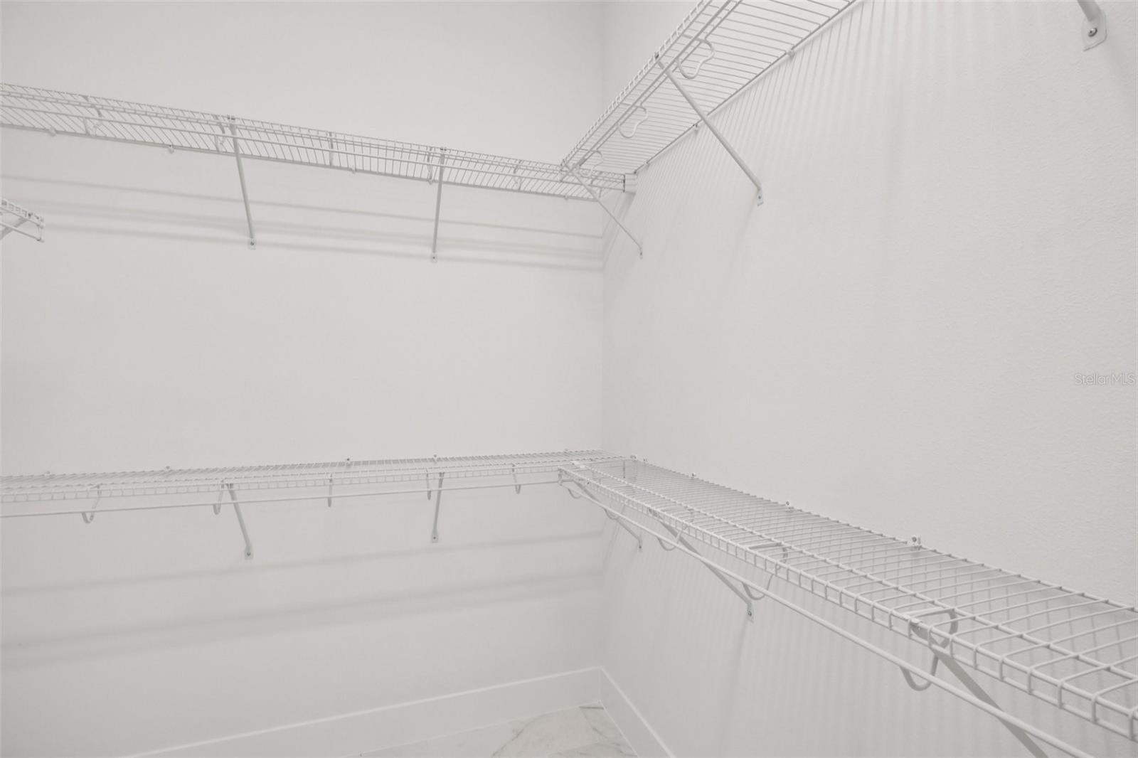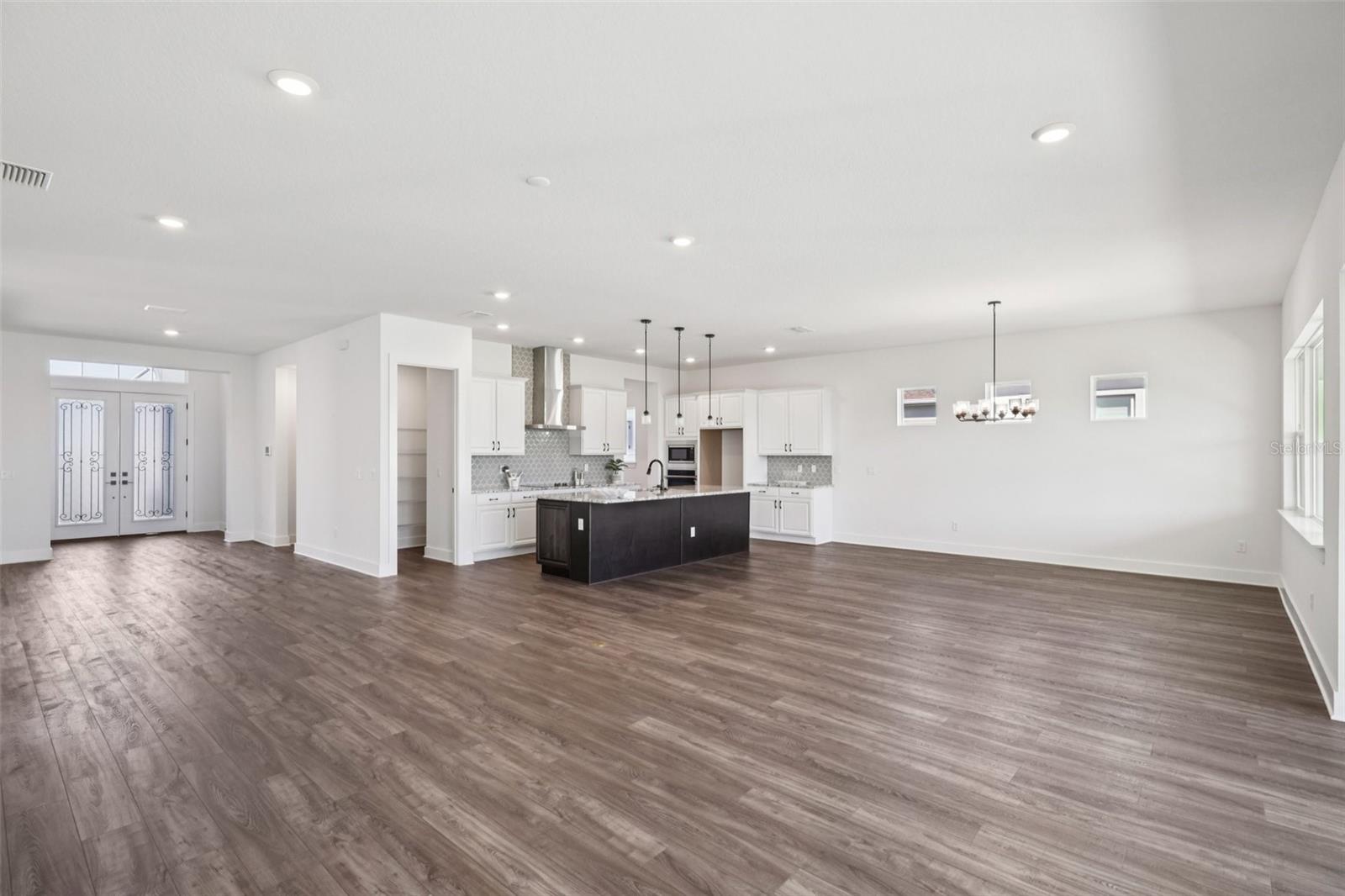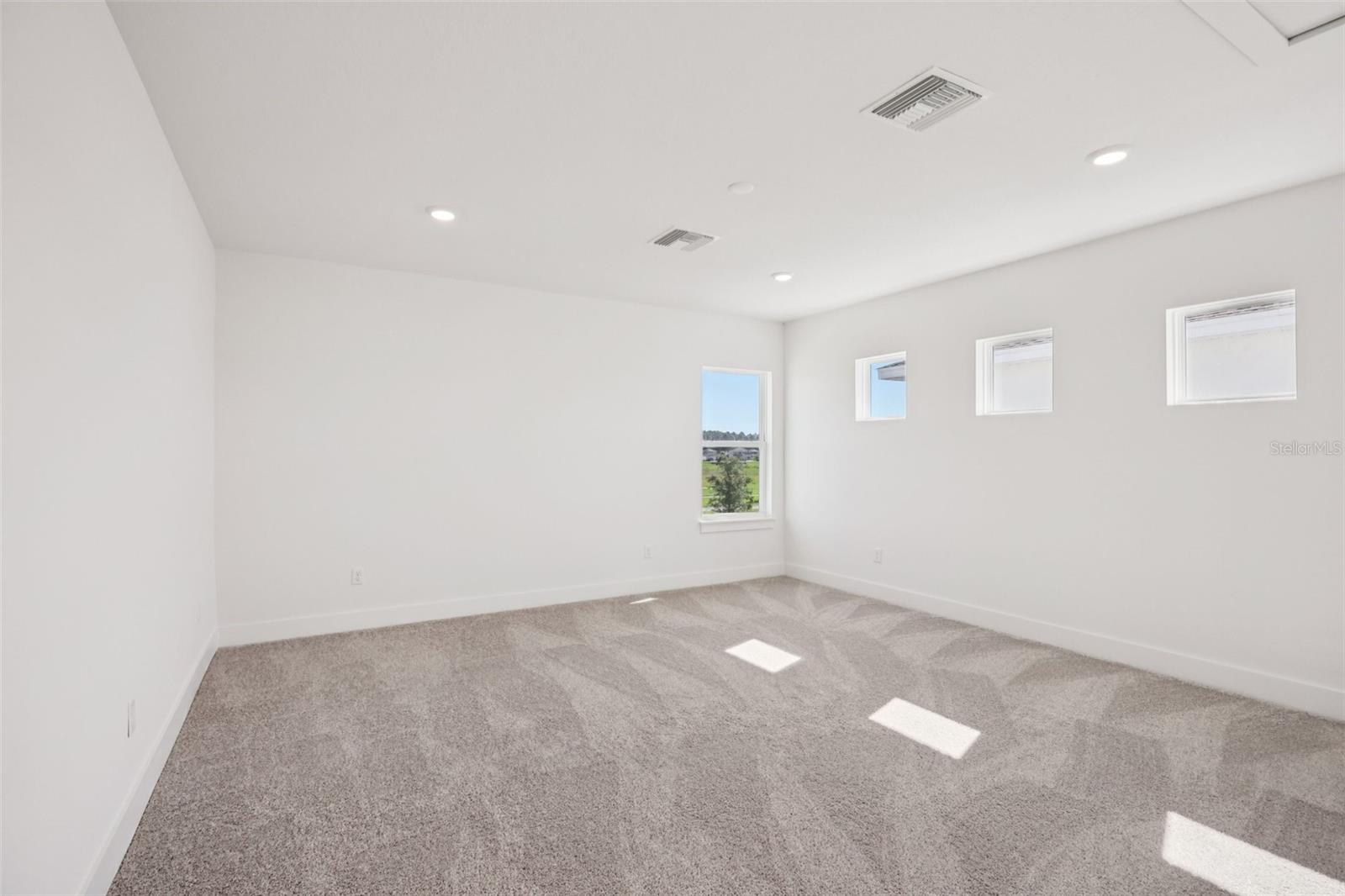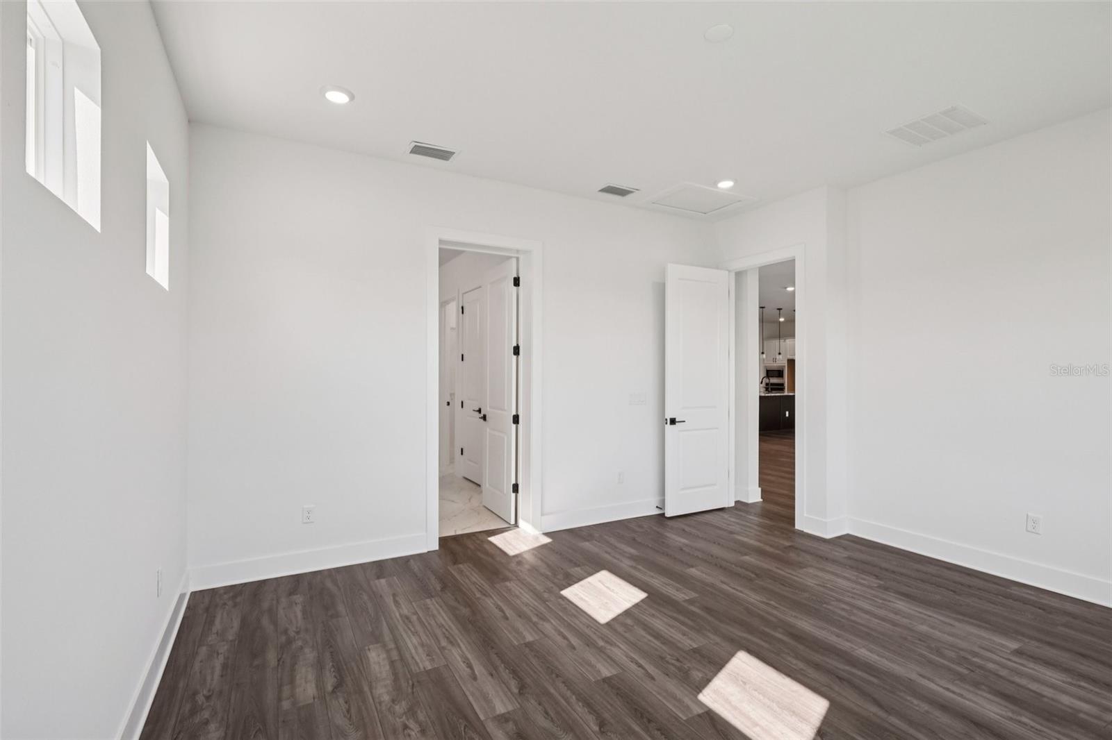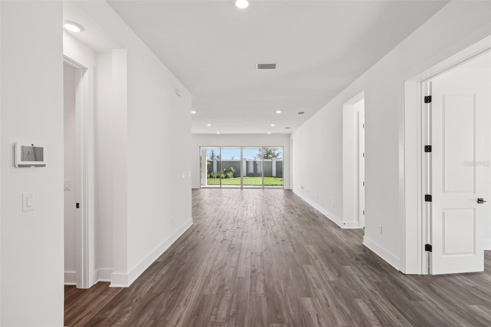 One or more photo(s) has been virtually staged. Welcome to your dream home in the desirable Mirada community! This beautifully designed Hawk floor plan offers over 3,000 sq ft of thoughtfully crafted living space, perfect for modern families and entertainers alike. Step into a grand foyer that leads to a versatile flex room—ideal for a home office, playroom, or formal sitting area—alongside a convenient powder room for guests. Enjoy the unique functionality of two separate garage entrances—a 2-car garage and a separate 1-car garage, ideal for multi-generational living or extra storage. The gourmet kitchen is the heart of the home, featuring a massive walk-in pantry, sleek finishes, and a large center island with sink that flows seamlessly into the bright dining area and expansive great room. Sliding glass doors open to a covered lanai, creating the perfect indoor-outdoor living experience. On the main level, the luxurious primary suite boasts dual walk-in closets, a spa-like ensuite bath with double vanities, and a large walk-in shower. A secondary bedroom with a private full bath is tucked behind the 1-car garage, offering privacy for guests or family members. Upstairs, you'll find two generously sized bedrooms, each with its own walk-in closet, a dual vanity bathroom, and a spacious loft area—ideal for a media room, game room, or second living space.