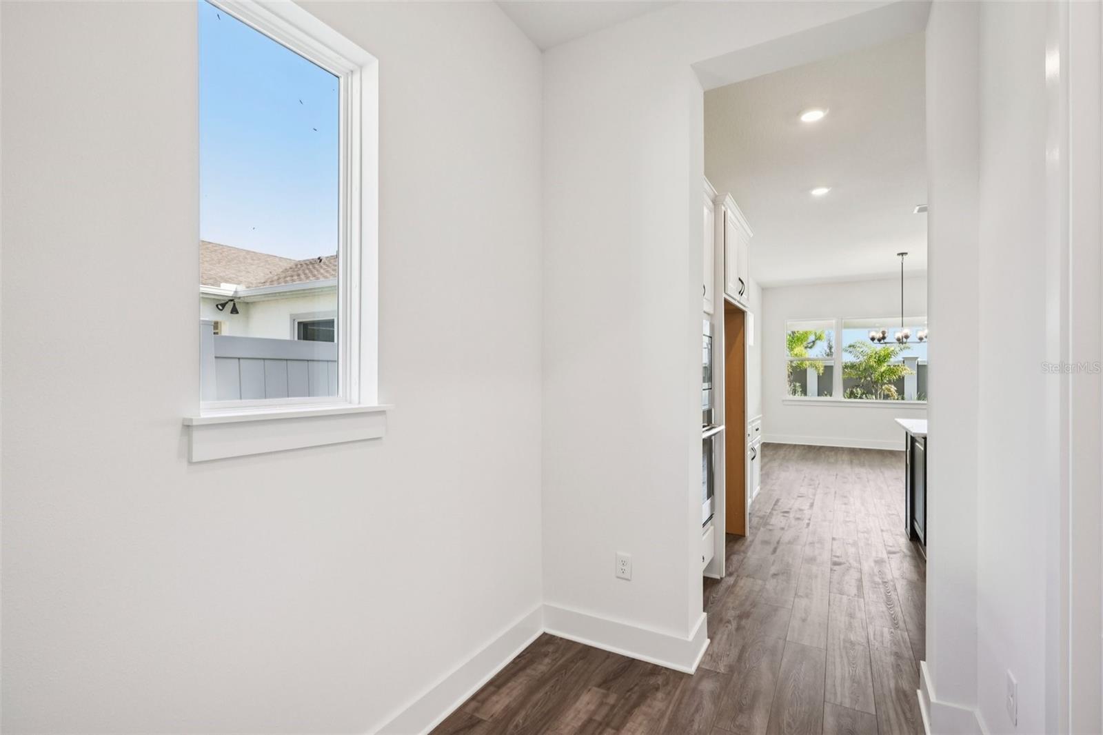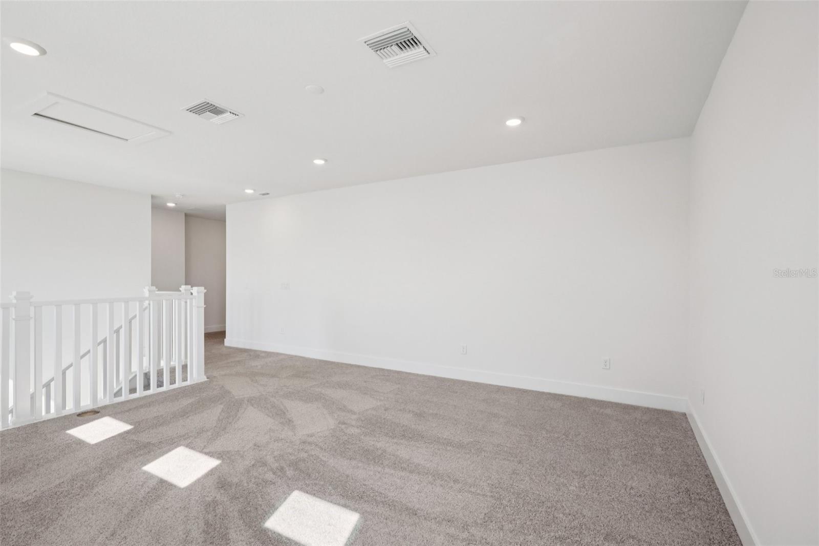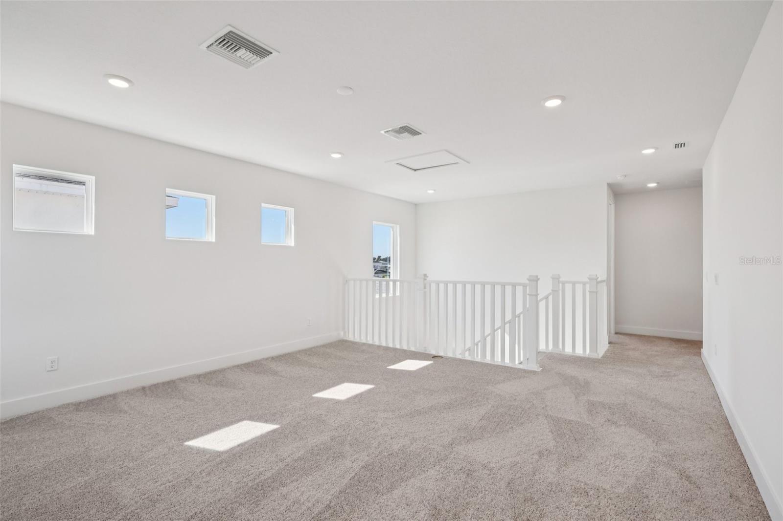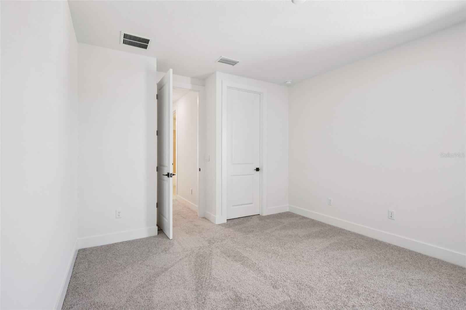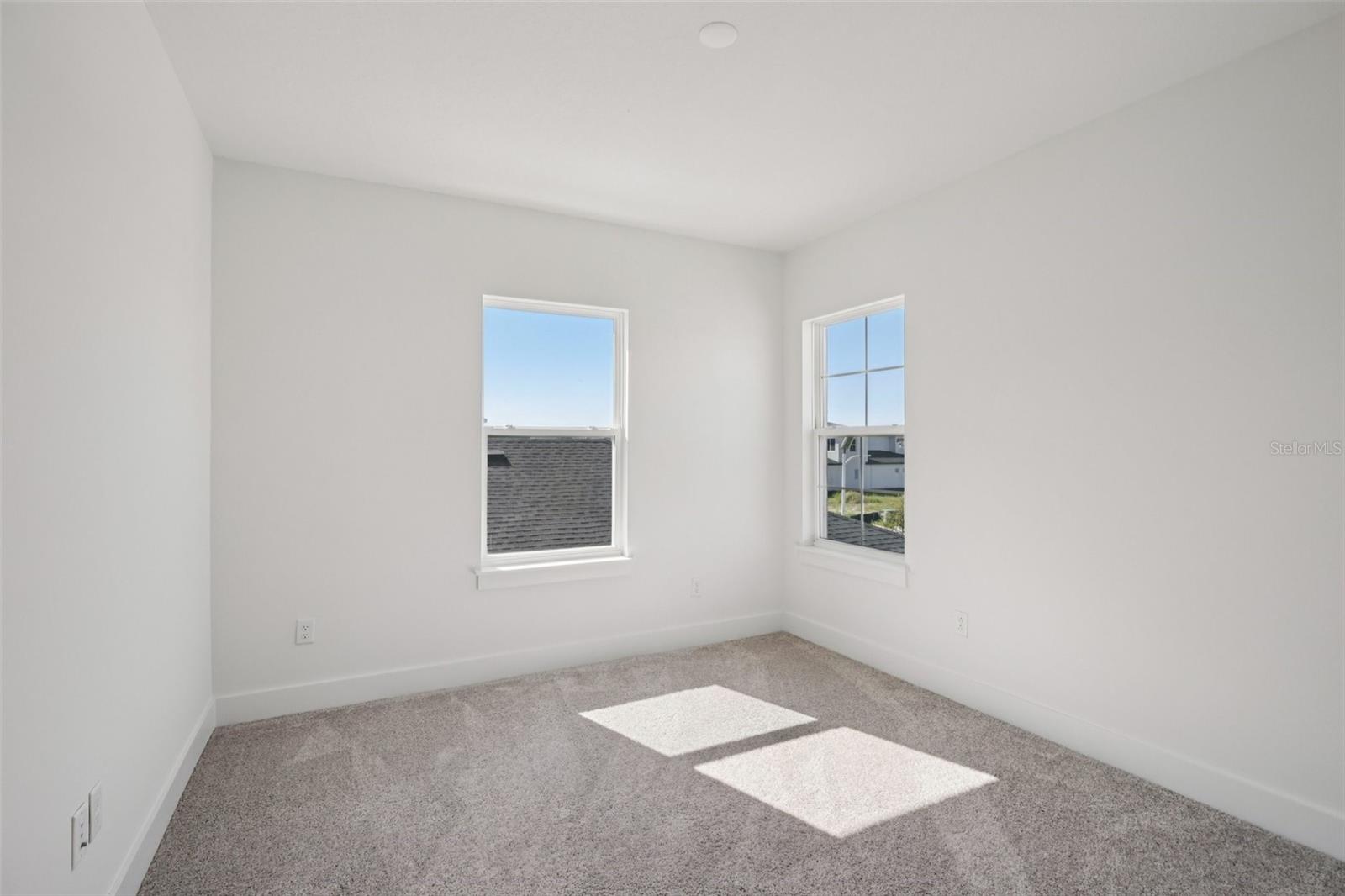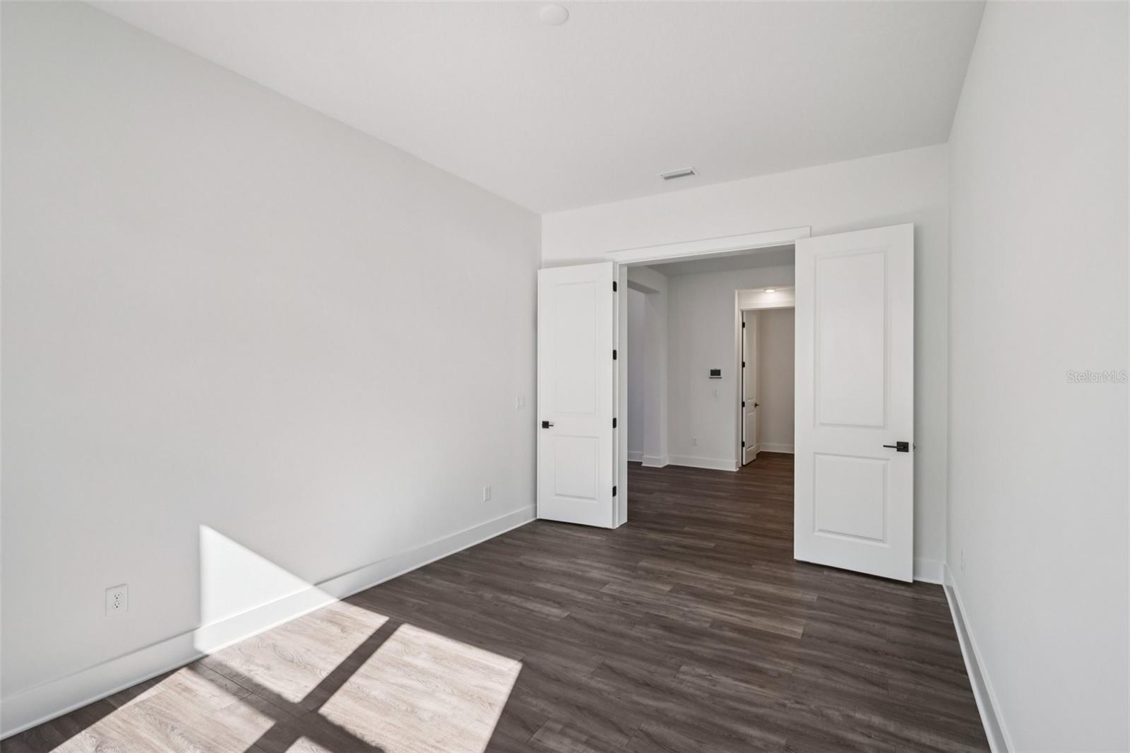 One or more photo(s) has been virtually staged. Welcome to your dream home in the desirable Mirada community! This beautifully designed Hawk floor plan offers over 3,000 sq ft of thoughtfully crafted living space, perfect for modern families and entertainers alike. Step into a grand foyer that leads to a versatile flex room—ideal for a home office, playroom, or formal sitting area—alongside a convenient powder room for guests. Enjoy the unique functionality of two separate garage entrances—a 2-car garage and a separate 1-car garage, ideal for multi-generational living or extra storage. The gourmet kitchen is the heart of the home, featuring a massive walk-in pantry, sleek finishes, and a large center island with sink that flows seamlessly into the bright dining area and expansive great room. Sliding glass doors open to a covered lanai, creating the perfect indoor-outdoor living experience. On the main level, the luxurious primary suite boasts dual walk-in closets, a spa-like ensuite bath with double vanities, and a large walk-in shower. A secondary bedroom with a private full bath is tucked behind the 1-car garage, offering privacy for guests or family members. Upstairs, you'll find two generously sized bedrooms, each with its own walk-in closet, a dual vanity bathroom, and a spacious loft area—ideal for a media room, game room, or second living space.