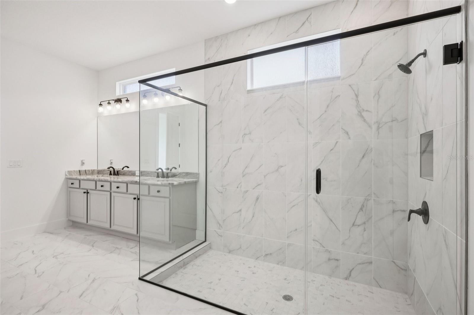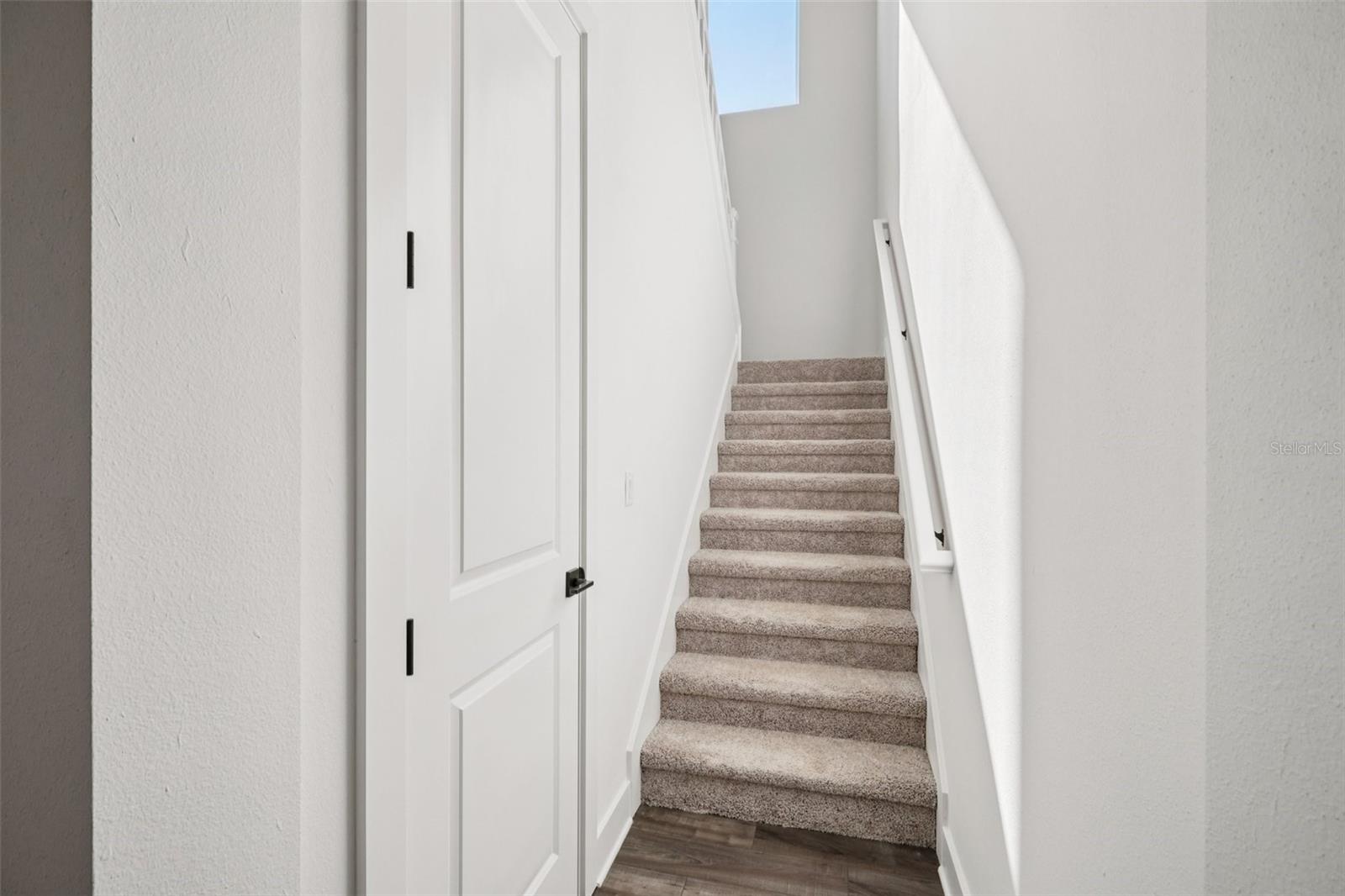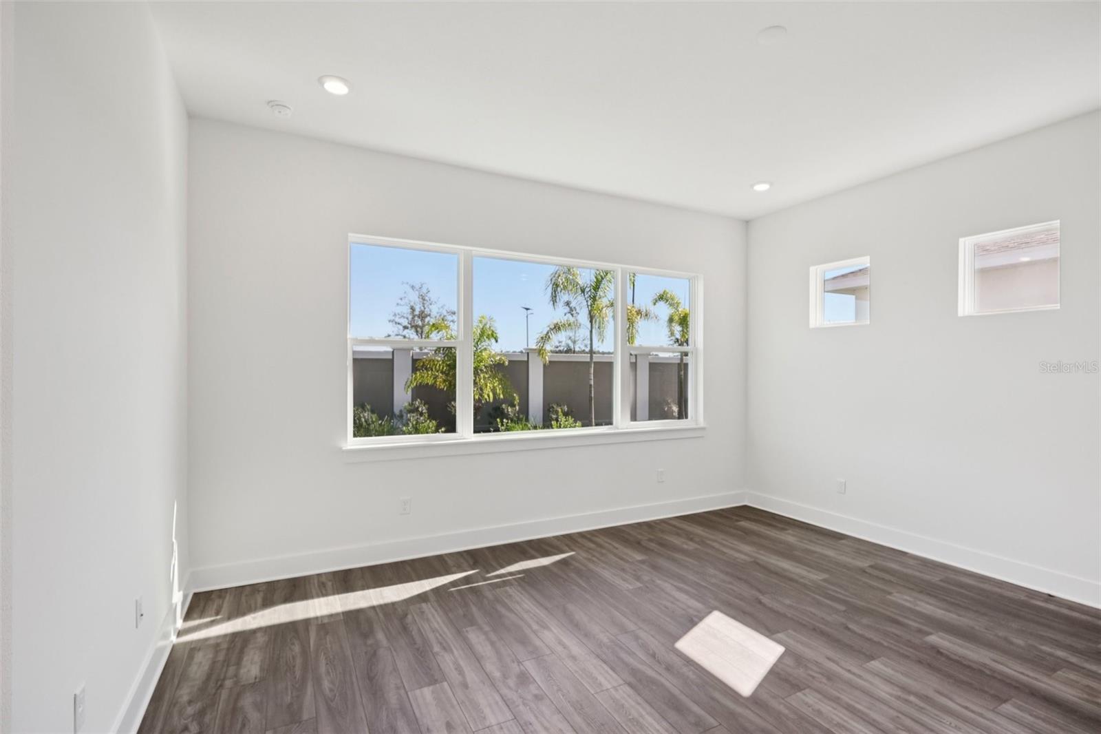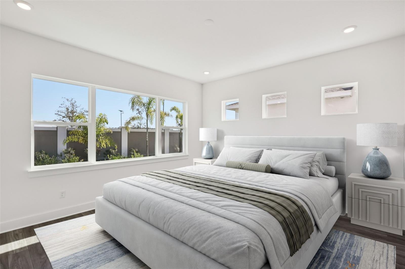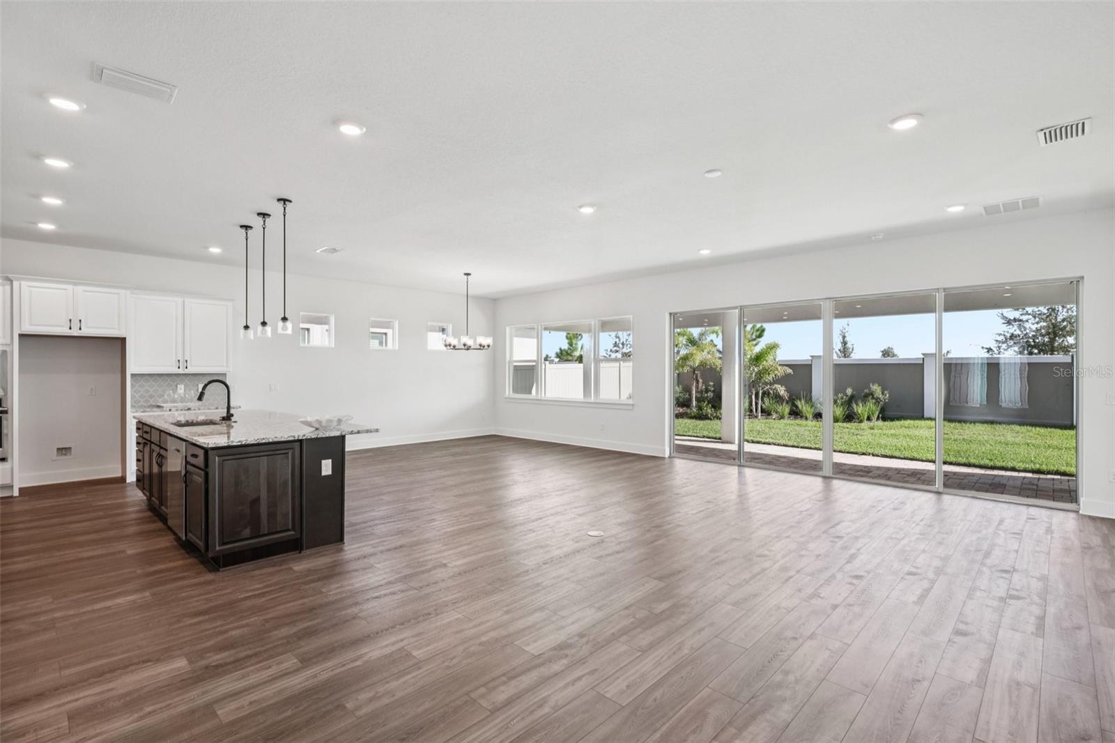 One or more photo(s) has been virtually staged. Welcome to your dream home in the desirable Mirada community! This beautifully designed Hawk floor plan offers over 3,000 sq ft of thoughtfully crafted living space, perfect for modern families and entertainers alike. Step into a grand foyer that leads to a versatile flex room—ideal for a home office, playroom, or formal sitting area—alongside a convenient powder room for guests. Enjoy the unique functionality of two separate garage entrances—a 2-car garage and a separate 1-car garage, ideal for multi-generational living or extra storage. The gourmet kitchen is the heart of the home, featuring a massive walk-in pantry, sleek finishes, and a large center island with sink that flows seamlessly into the bright dining area and expansive great room. Sliding glass doors open to a covered lanai, creating the perfect indoor-outdoor living experience. On the main level, the luxurious primary suite boasts dual walk-in closets, a spa-like ensuite bath with double vanities, and a large walk-in shower. A secondary bedroom with a private full bath is tucked behind the 1-car garage, offering privacy for guests or family members. Upstairs, you'll find two generously sized bedrooms, each with its own walk-in closet, a dual vanity bathroom, and a spacious loft area—ideal for a media room, game room, or second living space.