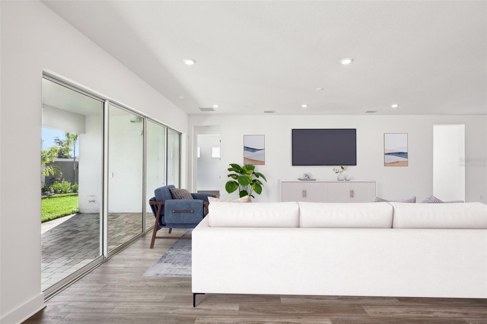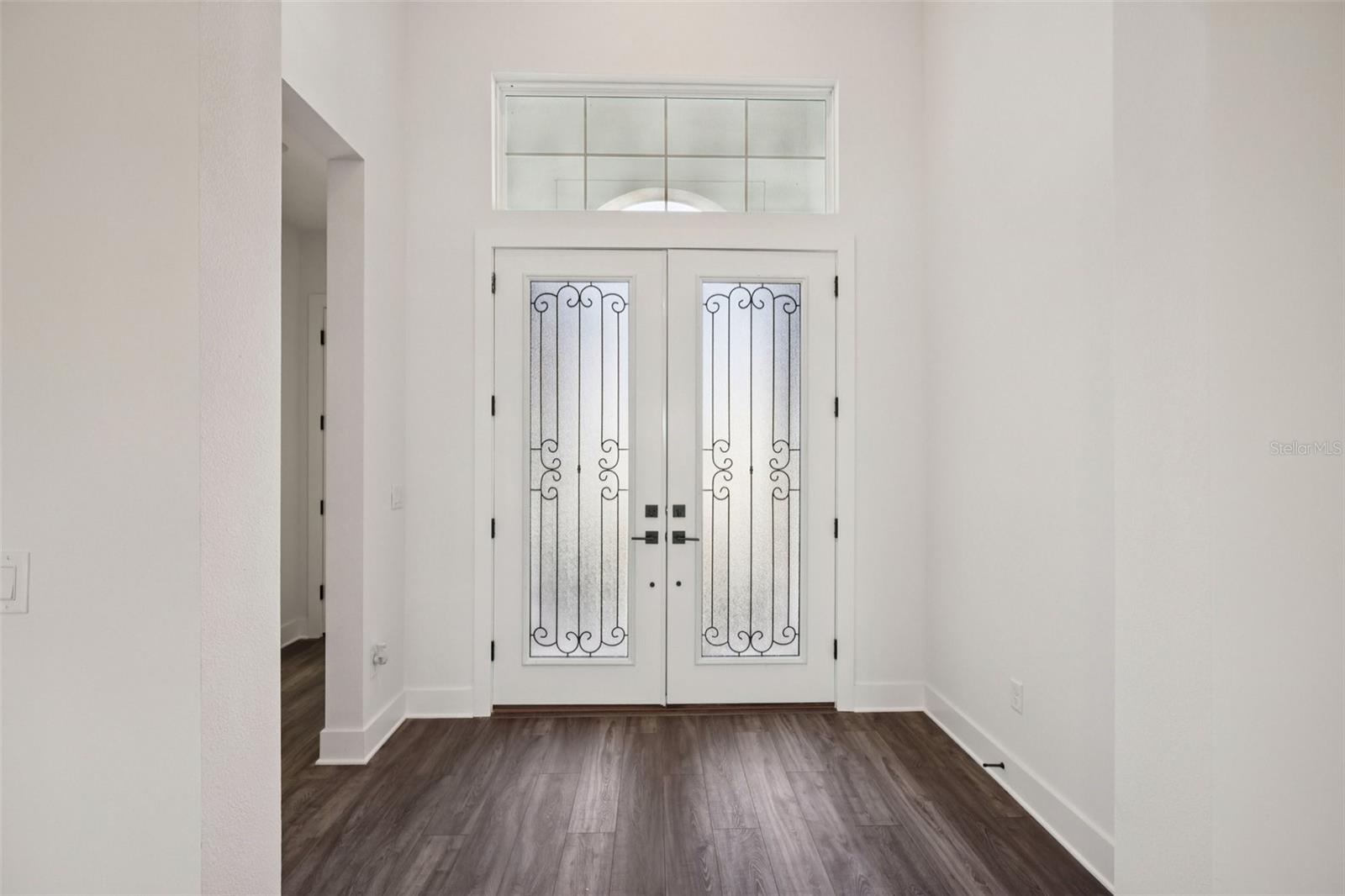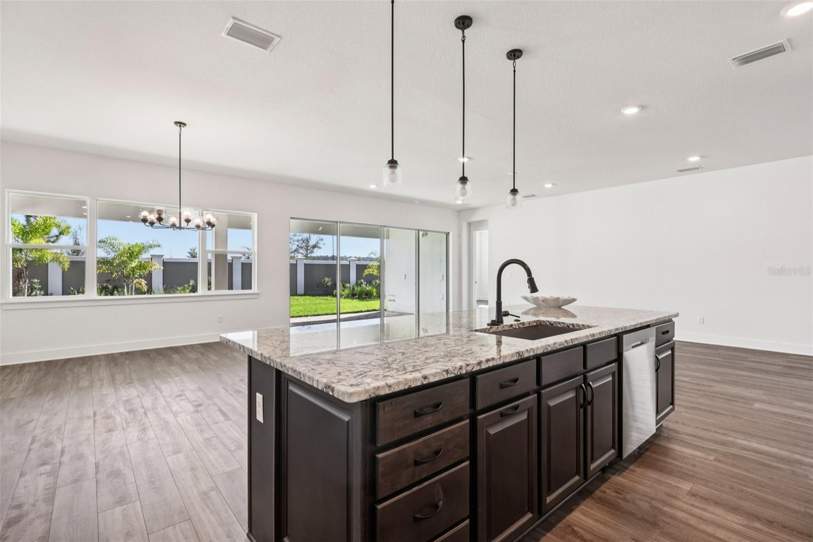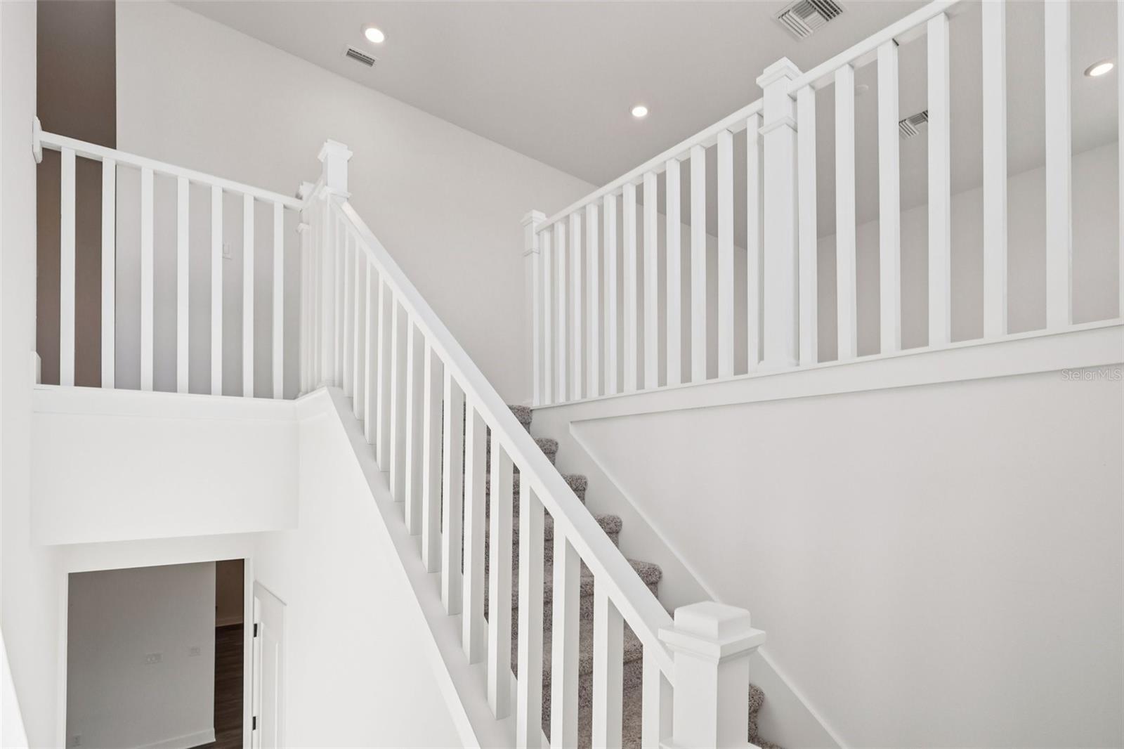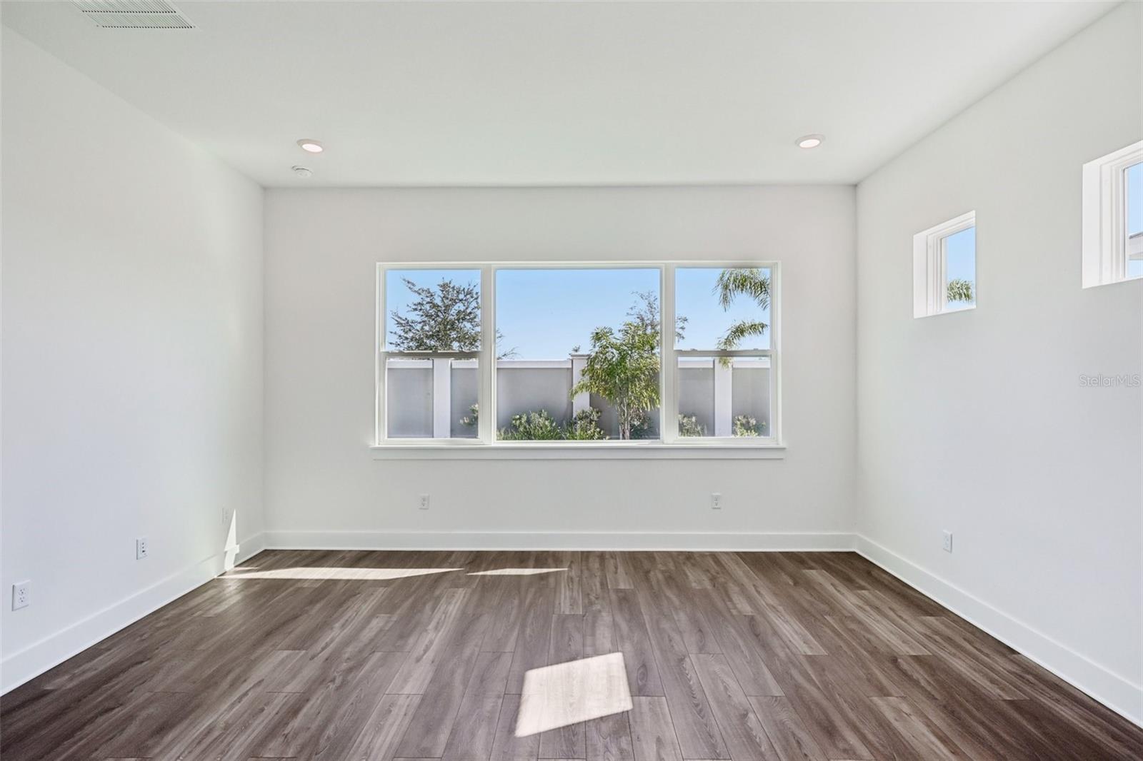 One or more photo(s) has been virtually staged. Welcome to your dream home in the desirable Mirada community! This beautifully designed Hawk floor plan offers over 3,000 sq ft of thoughtfully crafted living space, perfect for modern families and entertainers alike. Step into a grand foyer that leads to a versatile flex room—ideal for a home office, playroom, or formal sitting area—alongside a convenient powder room for guests. Enjoy the unique functionality of two separate garage entrances—a 2-car garage and a separate 1-car garage, ideal for multi-generational living or extra storage. The gourmet kitchen is the heart of the home, featuring a massive walk-in pantry, sleek finishes, and a large center island with sink that flows seamlessly into the bright dining area and expansive great room. Sliding glass doors open to a covered lanai, creating the perfect indoor-outdoor living experience. On the main level, the luxurious primary suite boasts dual walk-in closets, a spa-like ensuite bath with double vanities, and a large walk-in shower. A secondary bedroom with a private full bath is tucked behind the 1-car garage, offering privacy for guests or family members. Upstairs, you'll find two generously sized bedrooms, each with its own walk-in closet, a dual vanity bathroom, and a spacious loft area—ideal for a media room, game room, or second living space.