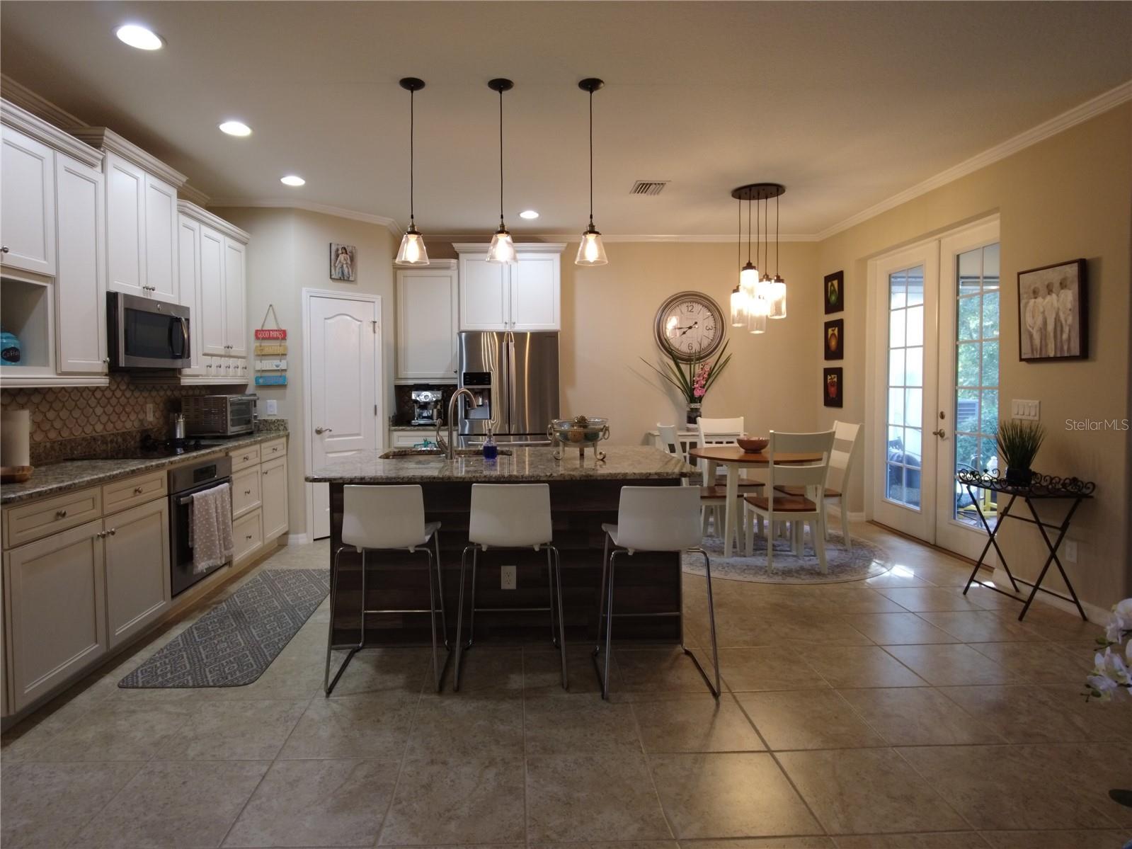 Enjoy breathtaking waterfront and conservation views from this premium lot in one of the most peaceful settings in the community! Relax on the screened paver lanai overlooking a large pond where you can watch turtles, otters, deer, and sandhill cranes in their natural habitat. This immaculate one owner K. Hovnanian home offers an open-concept layout with elegant archways, eyebrow windows, large ceramic tile floors, LED recessed lighting, and a welcoming stack-stone exterior with a custom etched-glass front door. The deluxe kitchen features granite countertops, a large island/breakfast bar, a dual-door refrigerator, and a striking backsplash, all opening to the great room and dinette with serene water views from most rooms. The owner’s suite includes a tray ceiling, spacious walk-in closet, and a stunning walk-in shower with a decorative glass listels band and raised-height commode, while the split-bedroom design ensures guest privacy. Additional highlights include energy-efficient double-pane windows, radiant barrier insulation, a 2.5-ton A/C system, ceiling fans and cable wiring in every room, a coded garage keypad, and an interior laundry room with extra storage. Located in a resort-style gated 55+ community with golf, tennis, pickleball, two pools, a fitness center, restaurant, and numerous activities and excursions. Perfectly situated just minutes from I-75, Tampa Premium Outlets, The Grove, and Wiregrass Mall, this home offers the perfect blend of tranquility, quality, and convenience. The property is also being sold fully furnished. Schedule you showing today!