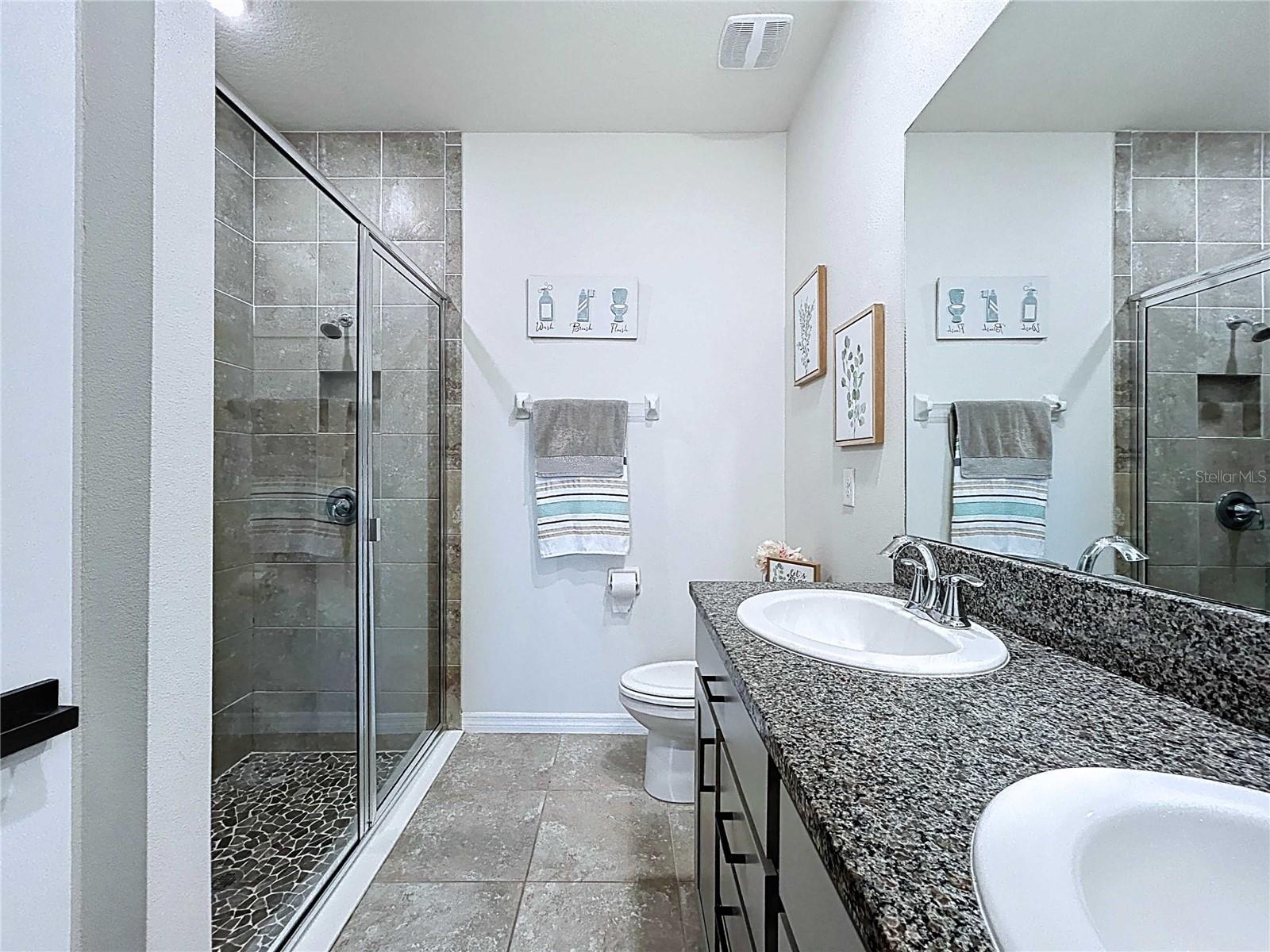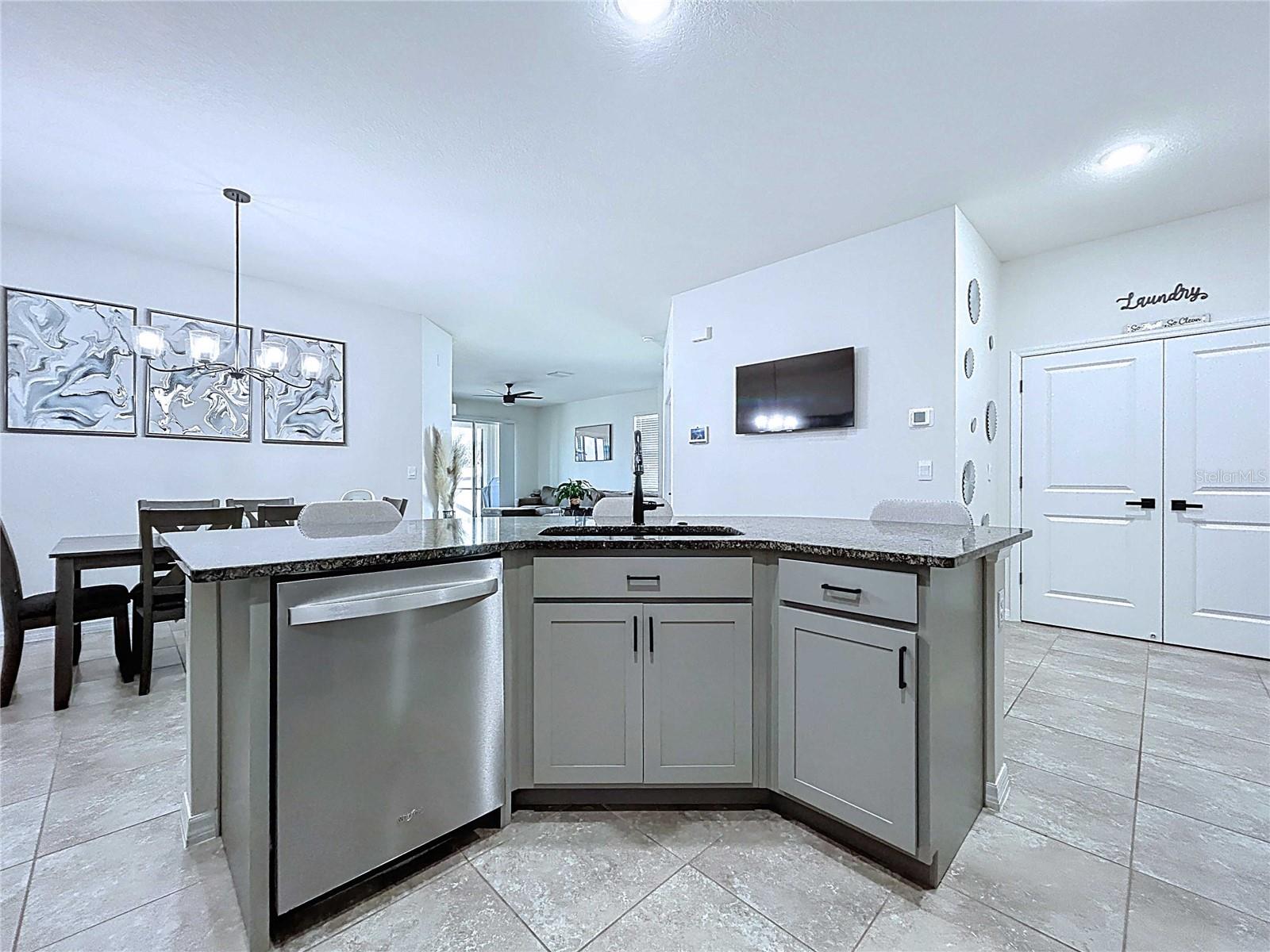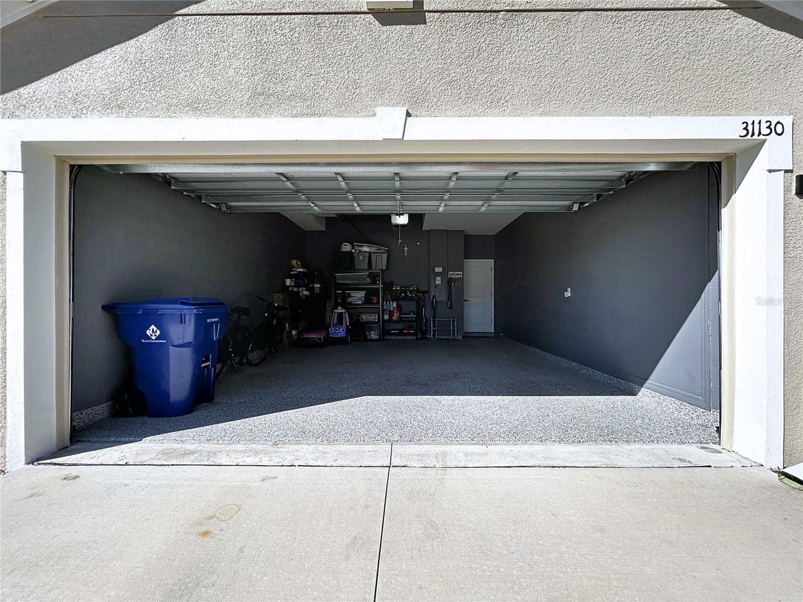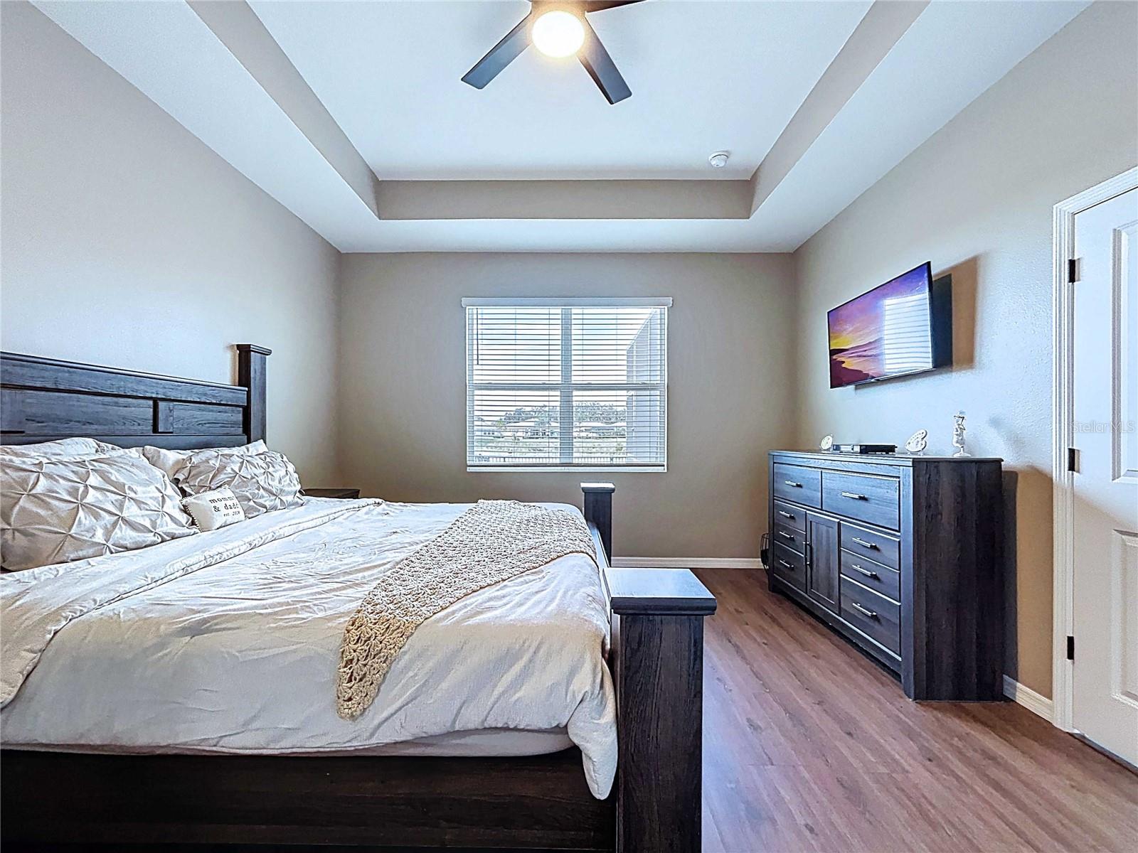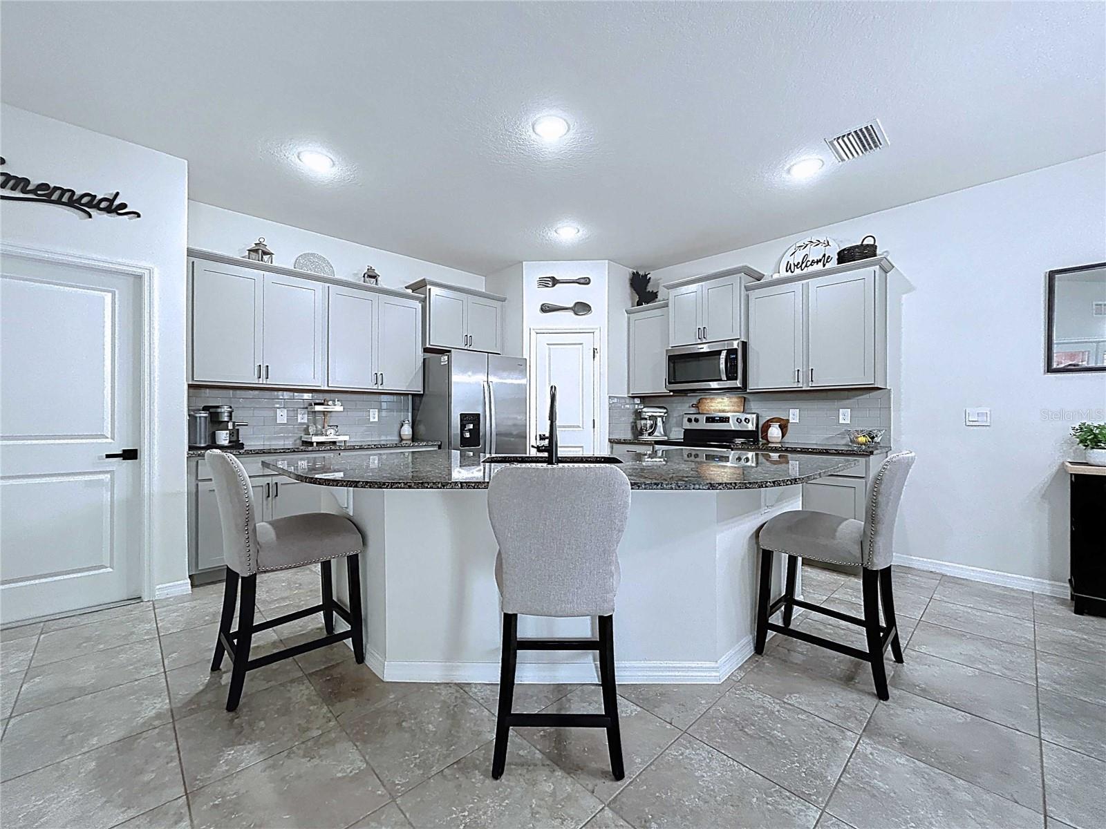 Introducing a villa like no other in the Mirada Lagoon community. Completed in 2023 and upgraded with over $50,000 in post-construction enhancements, this home blends modern finishes, a pond-view homesite, and low-maintenance living in one of Pasco County’s most active growth corridors. The interior features luxury vinyl plank and tile flooring throughout, with no carpet anywhere, and a custom feature wall with a built-in electric fireplace that anchors the great room. The kitchen includes staggered 36" cabinets with crown, granite counters, stainless steel appliances, a tile backsplash, and an open layout transitioning toward the expanded outdoor living space. Both bathrooms have been upgraded with floor-to-ceiling tile, and the primary walk-in shower now features a pebble-mosaic spa-style floor. The primary suite also includes a professionally installed closet system for optimized storage. Mechanical and functional upgrades continue with a whole-home water softener, smart-home system, and an epoxied garage floor, enhancing the attached two-car garage. Outdoors, the home impresses with an extended and fully screened lanai overlooking the pond, plus a fenced backyard with privacy side panels. A premium glass entry door further elevates curb appeal. Concrete block construction, public utilities, and underground electric add long-term practicality. Mirada delivers deed-restricted living, park space, and access to the region’s 15-acre MetroLagoon, all supported by convenient proximity to I-75, SR-52, Publix, and Wesley Chapel’s shopping corridors.