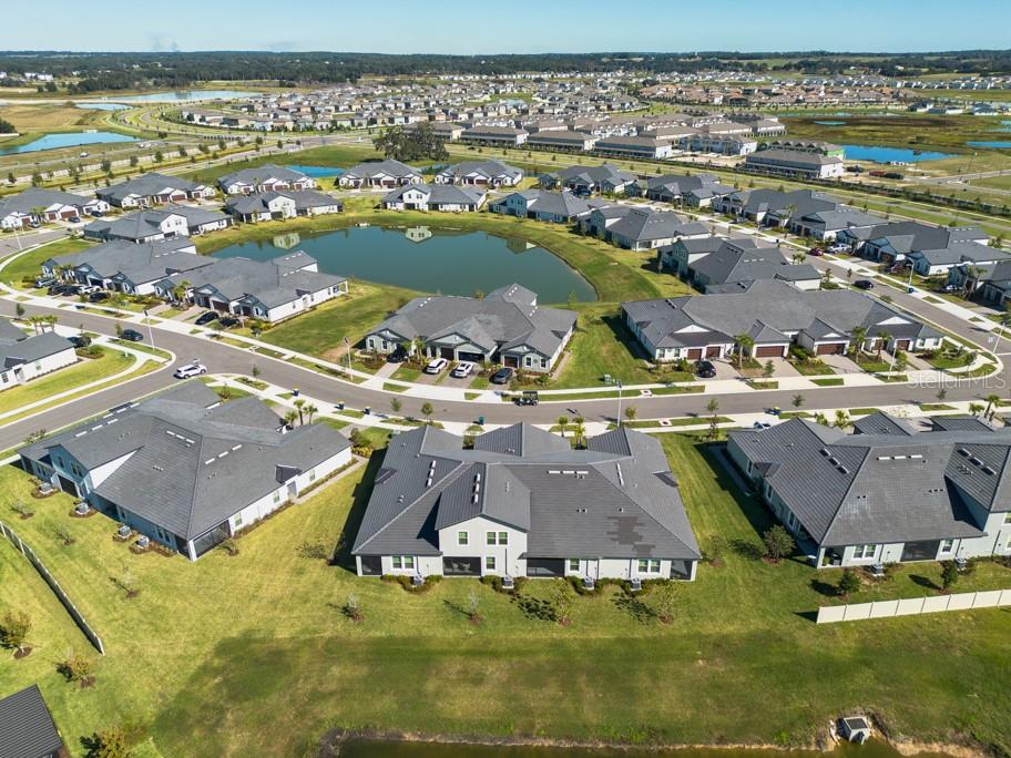 Live the resort lifestyle every day in this pristine, Pottery Barn–inspired villa perfectly situated on a peaceful pond in the sought-after Medley Active Adult community. Just steps from the clubhouse, this beautifully maintained home offers not only comfort and style but also an unmatched lifestyle experience for the active 55+ homeowner. Inside, you’ll find 2 spacious bedrooms, 2 full baths, and a 1-car garage, all designed with modern elegance and functionality in mind. The open-concept layout flows effortlessly from the bright kitchen to the inviting living and dining areas, making it ideal for entertaining or simply relaxing. Enjoy thoughtful upgrades throughout — crown molding, quartz countertops, stainless steel appliances, white shaker cabinetry, and abundant natural light that fills every corner. The kitchen stands out with 42” cabinets and a walk-in pantry, perfect for anyone who loves to cook or host. Step through sliding glass doors to the screened lanai overlooking the serene pond — the perfect spot to enjoy your morning coffee or unwind with a glass of wine at sunset. The primary suite features a private ensuite bath with a double vanity and a generous walk-in closet, offering both comfort and convenience. This low-maintenance villa lets you focus on what matters most — enjoying life! The HOA covers high-speed ULTRAFi internet, premium cable, lawn care, exterior painting, and homeowners’ structural insurance, leaving you free to enjoy your community’s exceptional amenities. At the Medley Clubhouse, you’ll discover a vibrant lifestyle filled with daily activities and events — heated resort-style pool with cabanas, a restaurant and bar, a ballroom, a billiards room, pickleball and tennis courts, bocce ball, yoga, line dancing, and more. Plus, your HOA includes membership to the 15-acre lagoon, where you can enjoy soft sandy beaches, a swim-up bar, kayaking, paddleboarding, waterslides, and community events. Invite friends and family — guest passes and discounted rates make it easy to share the fun! The location couldn’t be better. Take your golf cart to nearby favorites like Publix, Starbucks, banks, restaurants, the Farmers Market, and local shops. You’re also close to top-rated healthcare facilities such as AdventHealth, BayCare, and Florida Medical Clinic, plus shopping and entertainment at Wiregrass Mall, Tampa Premium Outlets, Krate at the Grove, Sam’s Club, Costco, and area golf courses. Easy access to I-75 and I-275 keeps everything within reach. Move in and start living the carefree Florida resort lifestyle you’ve been dreaming of — all in a location that truly has it all.