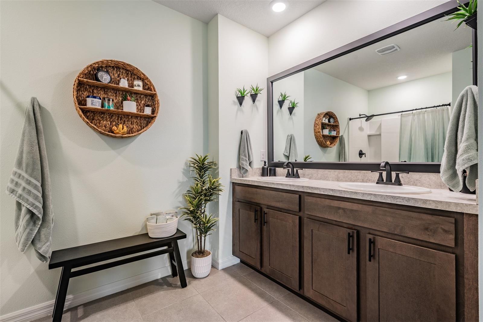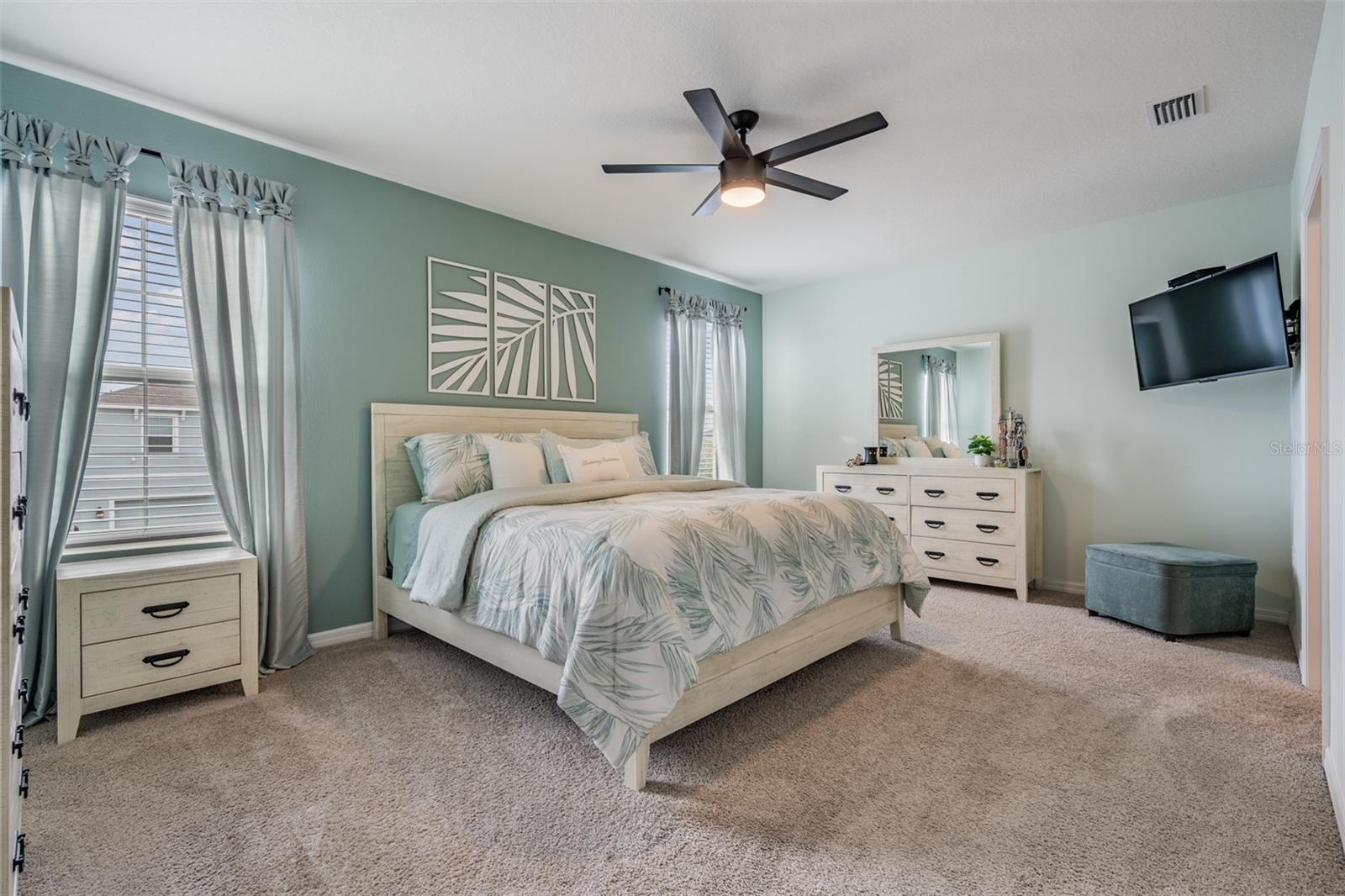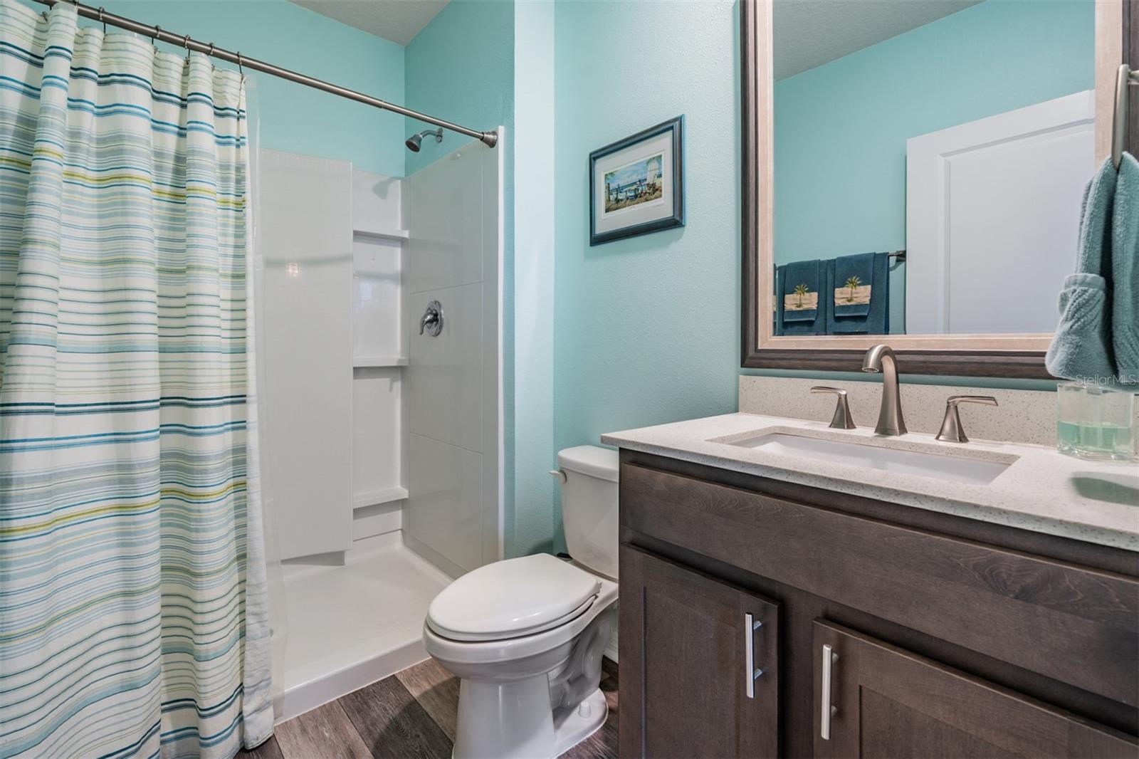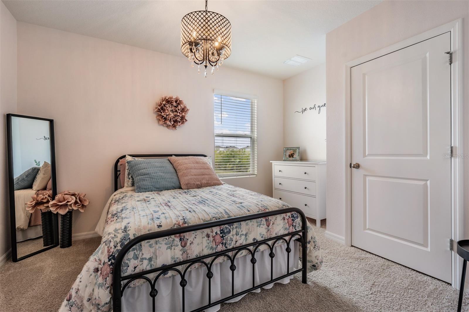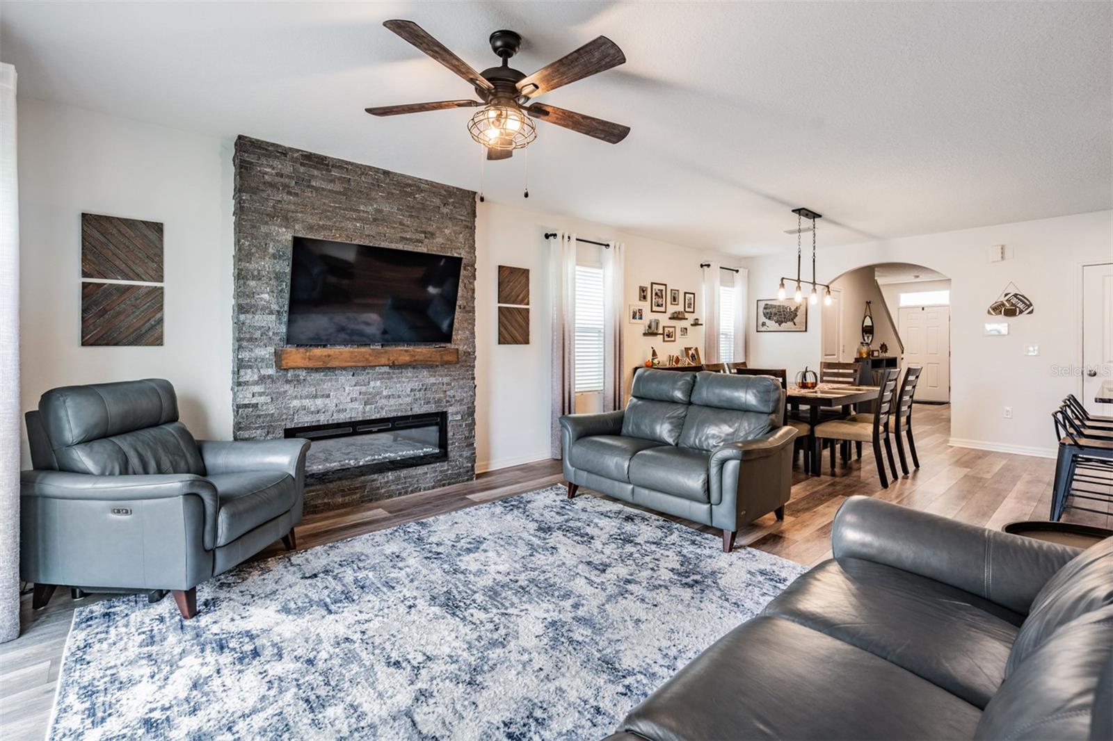 Better than new and meticulously maintained. As you step inside, your attention goes to the custom millwork and feature wall adorning the foyer. The living room, kitchen and dining are combined into a welcoming entertaining space while still keeping that cozy feel with a stunning stone fireplace. Luxury Vinyl floors are featured on the main level. Upgraded appliances and custom pantry in the kitchen is a chef's dream. This beautiful two story home features five well appointed bedrooms. Off the kitchen is a large bedroom and bathroom, perfect for the "nanny or granny". The Primary Suite and additional bedrooms are found upstairs along with spacious loft area and laundry room. Loving care is abundant in the decor and design of every room. The fenced back yard is great with lush landscaping. You're also within a sort walk to the highlight of the community, the 15 acre Lagoon. Put this one on your MUST SEE LIST!! Welcome Home