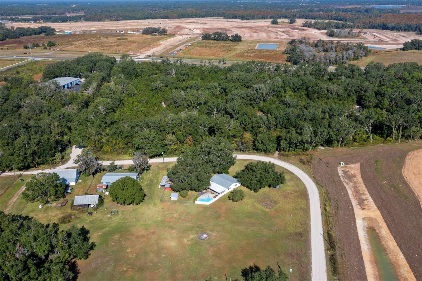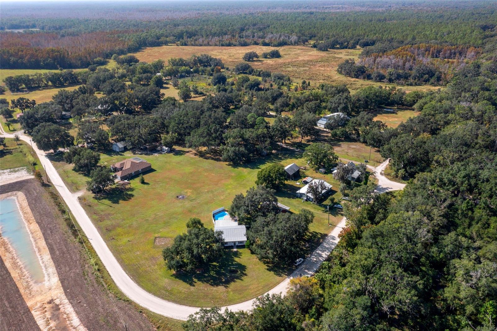 COUNTRY LIVING WITHOUT THE DRIVE! This fabulous Pool Home is nestled on 1.4 High and Dry Acres accented by scattered Oaks and conveniently located minutes from vibrant Retail and Dining, top Medical Facilities and numerous Commercial Entities in addition to countless Activity and Entertainment Venues as well as Parks and Nature Preserves! Featuring an Open Living Floor Plan, this 3 Bedroom Beauty offers loads of Natural Light and Numerous Upgrades throughout! Enter into an adaptable Flex Room - ideal as a Sitting Room, Family Room or Playroom! The spacious Great Room flows seamlessly into the Kitchen and Dining Room. The Kitchen boasts an abundance of Wood Cabinetry and Granite Counterspace, a Decorative Tile Backsplash and 2 Built-in Pantries in addition to a handy Drop Zone and a designated Coffee Station! The versatile Dining space is perfect for casual Café Dining or can accommodate a more Formal setting! The Primary Retreat includes a Walk-in Closet and an en Suite Bathroom with a Dual Vessel Vanity and a Tub/Shower combo with Tiled Surround! The oversized Secondary Bedrooms are situated to maximize privacy and include wide Built-in Closets! Recent updates include: Remodel of Kitchen and Bathrooms, Luxury Vinyl flooring throughout, replacement of AC Ductwork and Water Heater, new Lighting and Blinds throughout, Resurfacing of Pool and new Pool Pump…..and so much more! The durable Metal Roof and Double Pane Windows assist with keeping Utility Bills at a minimal! Outdoor Living is comprised of an expansive Covered Lanai overlooking the sparkling Sun-Splashed Pool and lush Green Space that is fenced for both Privacy and Safety! For the Hobbyist, there is a detached enclosed Workshop with electric service! With plenty of space for Play, Gardening and furry Two/Four-legged Friends as well as ample space to park a Boat, Trailer(s) and/or RV, this beautiful property is sure to impress!