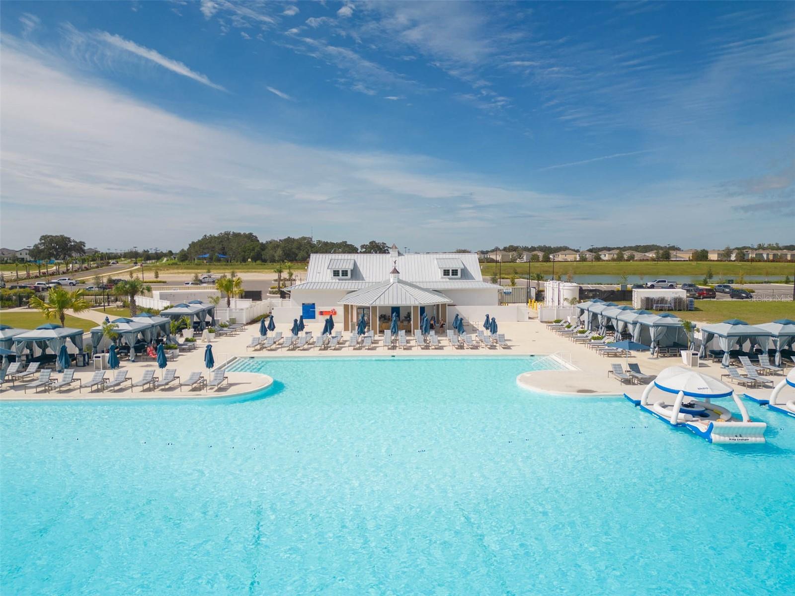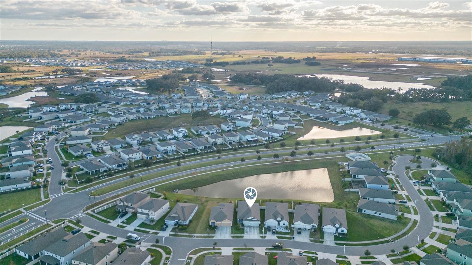 IMMACULATE, CLEAN, WELL-MAINTAINED home located in Mirada Lagoon offers a thoughtfully designed layout with 3 bedrooms, 2 bathrooms, PLUS a BONUS ROOM or possible 4TH BEDROOM situated on a relaxing premium WATERFRONT lot. Floor plan is perfectly suited for both everyday living and entertaining with an open layout spacious 9’ ceilings, GRANITE countertops in the kitchen and QUARTZ countertops in the bathrooms, enhanced interior lighting, and bright space. Enjoy serene lakefront views and breathtaking sunset scenery from the 9’x27’ screened-in lanai. Upgrades throughout the home include tile flooring throughout, fully fenced yard, an upgraded 3-car garage with epoxy coated floor and extended driveway, whole-house water filtration system, and upgraded 42” kitchen cabinetry enhanced with crown molding. The HOA provides exceptional value with access to the 15-acre man-made crystal lagoon that has a splash pad, swim up bar, and VIP lounge (additional fee), other amenities include a dog park, walking trails, golf cart trails, playground, along with ULTRA HIGH SPEED internet, cable, and multiple streaming services including Hulu, HBO Max, Disney+, ESPN+, Paramount+, and more (INCLUDED IN THE HOA FEE), delivering a resort-style lifestyle in one of the area’s most sought-after communities. It is conveniently located only 1.2 miles from grocery shopping and restaurants with a short 19-minute drive to shopping malls and big box retail stores. Easy 38 mile drive to Tampa International Airport.