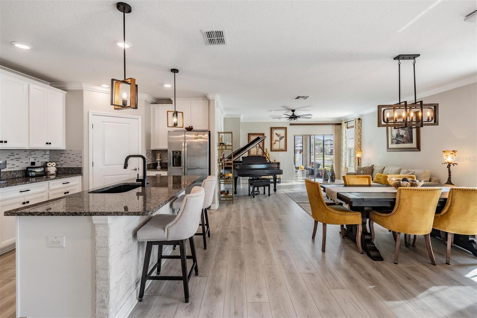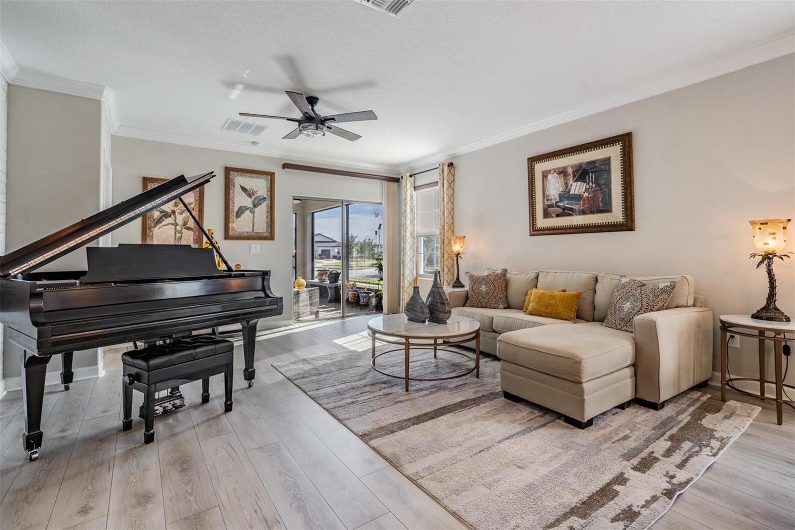 Pristine Villa in Medley Active Adult for those better than 55 years young presents an exceptional lifestyle just beyond the confines of your home. As a resident, you'll enjoy exclusive Clubhouse access with a full calendar of events daily! You will also enjoy a grill & bar, heated pool w/cabanas, ballroom, billiards room, card room, state of the art fitness center, pickleball & tennis courts, bocce ball, yoga, line dancing and private active adult events. PLUS included in your HOA is a 15-acre lagoon membership w/soft, sandy beaches including a swim-up bar, kayaking, paddleboarding, obstacle course, waterslides, corn hole games, and tons of community events! Be sure & invite friends or family to come along with you as you may gift them passes or pay a deeply discounted rate! This immaculate villa will please even the most selective buyers! Comprised of 2 spacious bedrooms, 2 full bathrooms, a den/man cave and 1 car garage. Your new home includes over 40K in upgrades, including wood look luxury vinyl flooring throughout (no carpet anywhere!) Designer walls with rounded corners, crown molding, granite countertops throughout, upgraded lighting, upgraded hardware, and upgraded kitchen sink, stainless appliances and upgraded cabinetry. Sliding glass doors lead to your pavered and screened in lanai. Great way to enjoy the beautiful weather without all the critters! As you step inside, you'll be greeted by a seamless flow of open living spaces, making it ideal for both relaxation and entertaining. Get ready to make memories that will last a lifetime! Your dream home awaits, you will be enjoying the CAREFREE FLORIDA RESORT LIFESTYLE in your new home as quickly as you are able to move in! Gorgeous curb appeal on this block villa with PLENTY OF ADDITIONAL PARKING just steps away from your villa for your convenience. Enjoy 42" Cabinets, and Walk-in Pantry in this gorgeous kitchen. Primary Suite with decorator wall and crown molding includes ensuite bath, dual sinks, upgraded hardware, trimmed mirrors, water closet and walk-in Closet to keep you organized, and ceiling fans to keep you cool in this energy efficient home. High-speed (ULTRAFI) internet, premium cable, yard maintenance & exterior painting as well as roof and homeowners insurance for the structure are maintained by the HOA. The location of this residence is equally remarkable with plenty of extra parking spots for your guests and situated in close proximity to premier shopping destinations, and an array of dining options, you'll find yourself immersed in a vibrant community that strikes a perfect balance between exclusivity and convenience. Ride your Golf Cart to the Clubhouse, Publix, restaurants, Farmers Market and more right inside the neighborhood! Close to Advent Health Hospitals, BayCare Hospital, Florida Medical Clinic, Wire Grass Mall, Tampa Premium Outlet Mall, Krate at the Grove, Sam's Club, Costco, Golf Courses & Movie Theater. Easy access to I75, 275, Tampa International Airport, Downtown Tampa and Florida's amazing beaches. CDD IS ALREADY INCLUDED IN TAX AMOUNT.