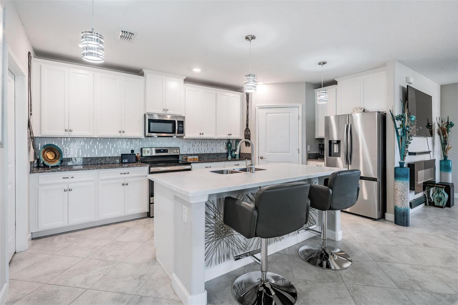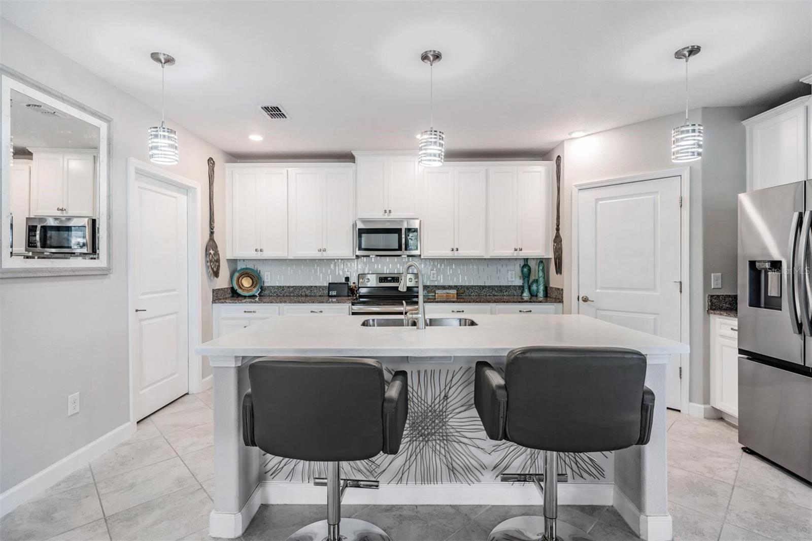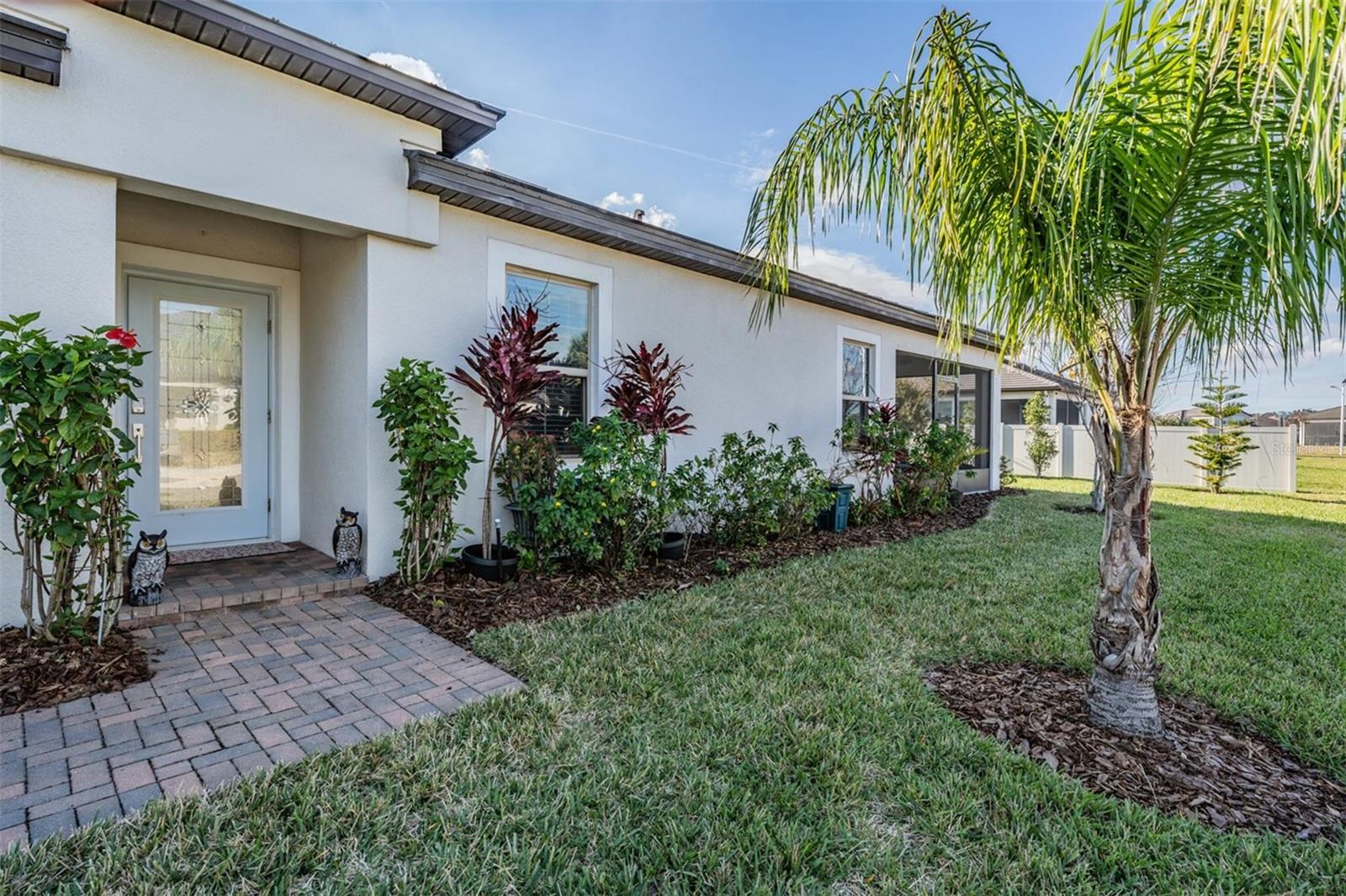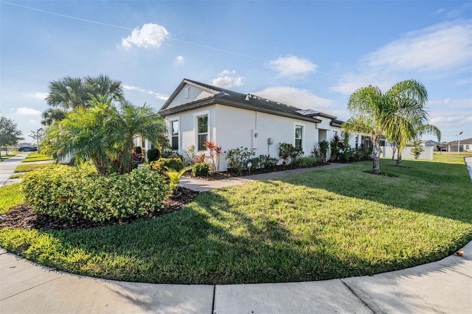 Beauiful spacious end unit villa in Medley Active Adult. For those better than 55 years young, presents an exceptional lifestyle just beyond the confines of your home. As a resident, you'll enjoy exclusive Clubhouse access with a full calendar of events daily! You will also enjoy a restaurant & bar, heated pool w/cabanas, ballroom, billiards room, card room, state of the art fitness center, pickleball & tennis courts, bocce ball, yoga, line dancing and private active adult events. PLUS included in your HOA is a 15-acre lagoon membership w/soft, sandy beaches including a swim-up bar, kayaking, paddleboarding, obstacle course, waterslides, corn hole games, and tons of community events! Be sure & invite friends or family to come along with you as you may gift them passes or pay a deeply discounted rate! This well maintained villa will please even the most selective buyers! Comprised of 2 spacious bedrooms, 2 Full Baths + an office/den, and 1 car garage. Your new home includes lots of upgrades including granite countertops with quartz island, plenty of upgraded lighting, stainless appliances and white cabinetry. Sliding glass doors lead to your fully screened lanai with a wonderful unobstructed view of your highly upgraded lush landscaping. Great spot to sit and relax and enjoy a cup of coffee or glass of wine! As you step inside, you'll be greeted by a seamless flow of open living spaces, making it ideal for both relaxation and entertaining. Get ready to make memories that will last a lifetime! Your dream home awaits; you will be enjoying the CAREFREE FLORIDA RESORT LIFESTYLE in your new home as quickly as you are able to move in! Gorgeous curb appeal on this block villa! Enjoy 42" Cabinets, and Walk-in Pantry in this gorgeous kitchen. Primary Suite with luxury vinyl flooring includes ensuite bath, soaking tub inside shower, dual sinks, grab bar for safety, private water closet, granite counter tops, walk-in Closet to keep you organized, and upgraded ceiling fans to keep you cool. A HUGE PLUS IS THERE IS PLENTY OF PARKING JUST STEPS AWAY! Pavered driveway with pavered walk way all the way to the front door! High-speed (ULTRAFI) internet, premium cable, yard maintenance & exterior painting and homeowners' insurance for structure are covered by HOA. The location of this residence is equally remarkable, situated in close proximity to premier shopping destinations, and an array of dining options, you'll find yourself immersed in a vibrant community that strikes a perfect balance between exclusivity and convenience. Ride your Golf Cart to the Clubhouse, Publix, restaurants, Farmers Market, Chick-fil-A, Banks, Starbucks, Nail Shops, and more! Close to Advent Health Hospitals, BayCare Hospital, Florida Medical Clinic, Wire Grass Mall, Tampa Premium Outlet Mall, Krate at the Grove, Sam's Club, Costco, Golf Courses & Movie Theater. Easy access to I75, 275, Tampa International Airport, Downtown Tampa, and Florida's amazing beaches. CDD IS ALREADY INCLUDED IN TAXES.