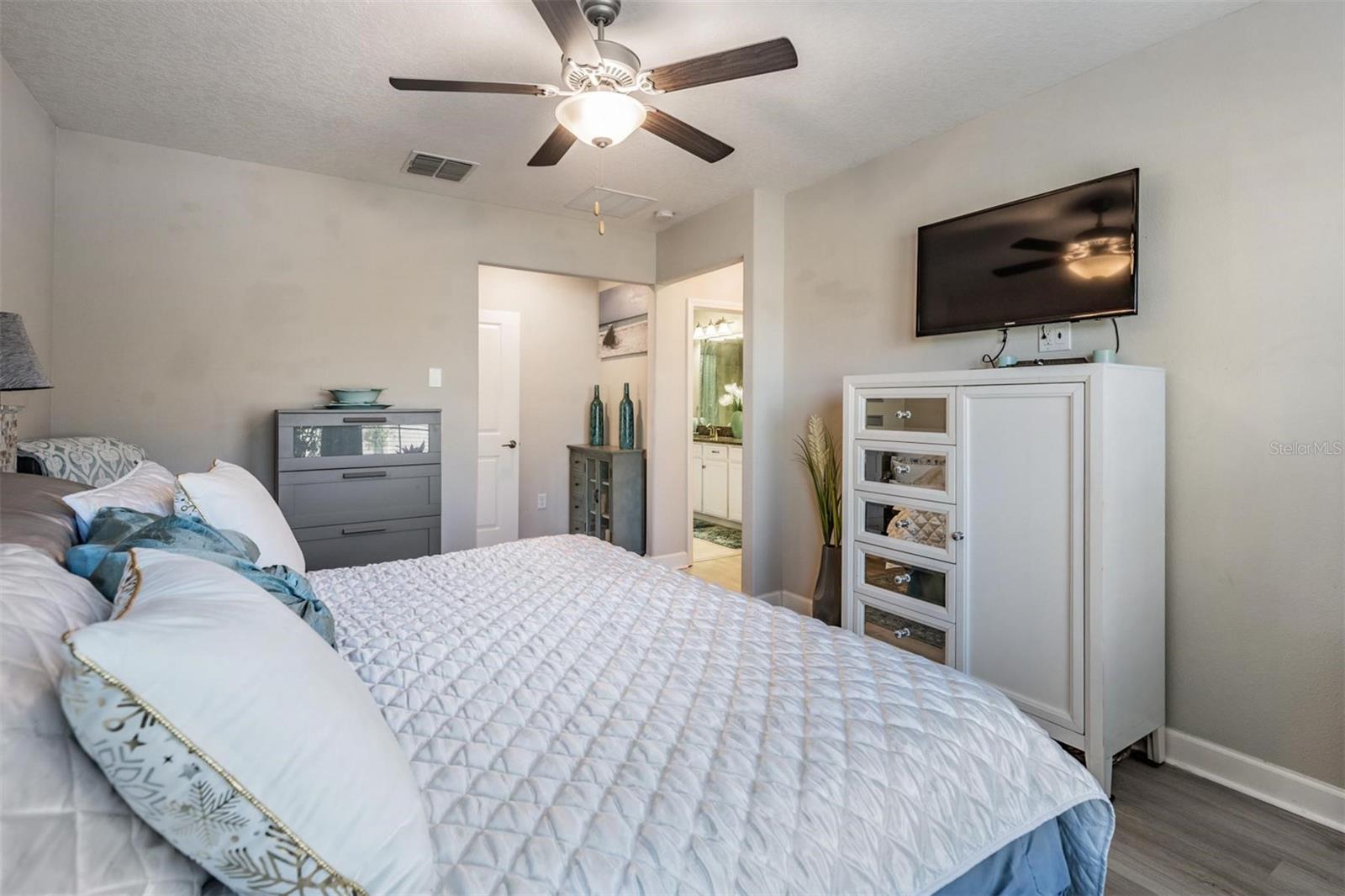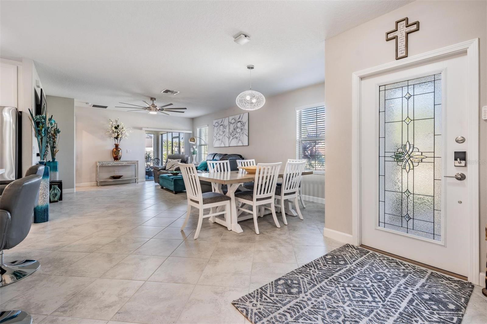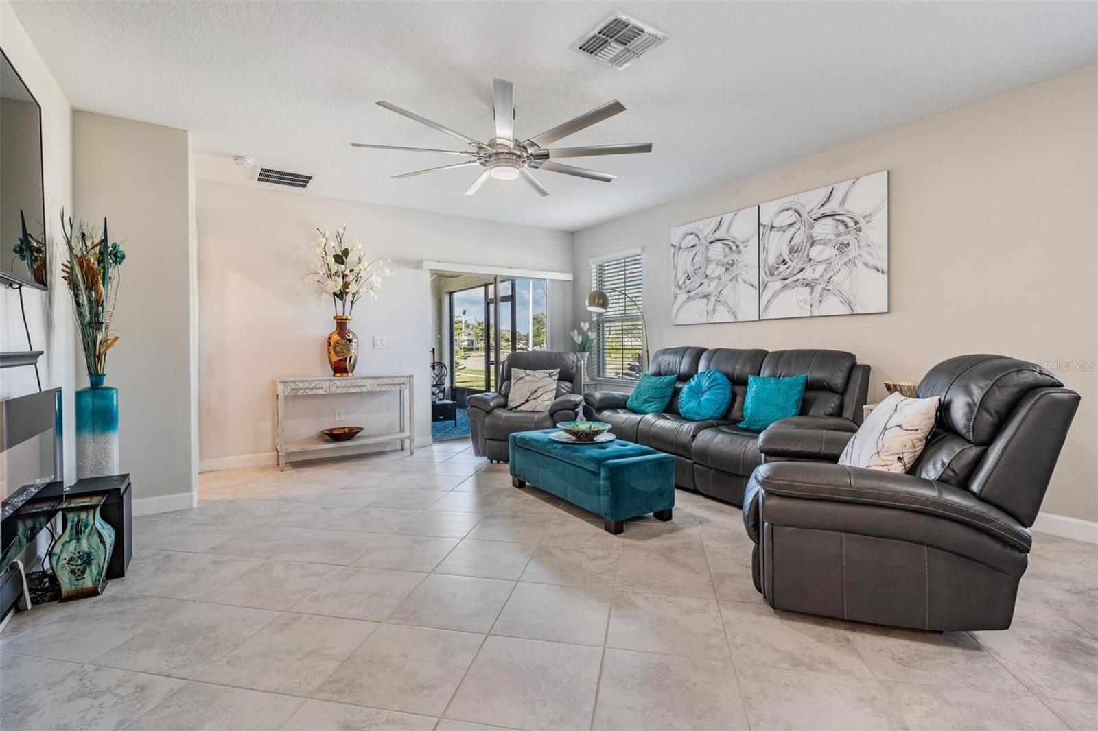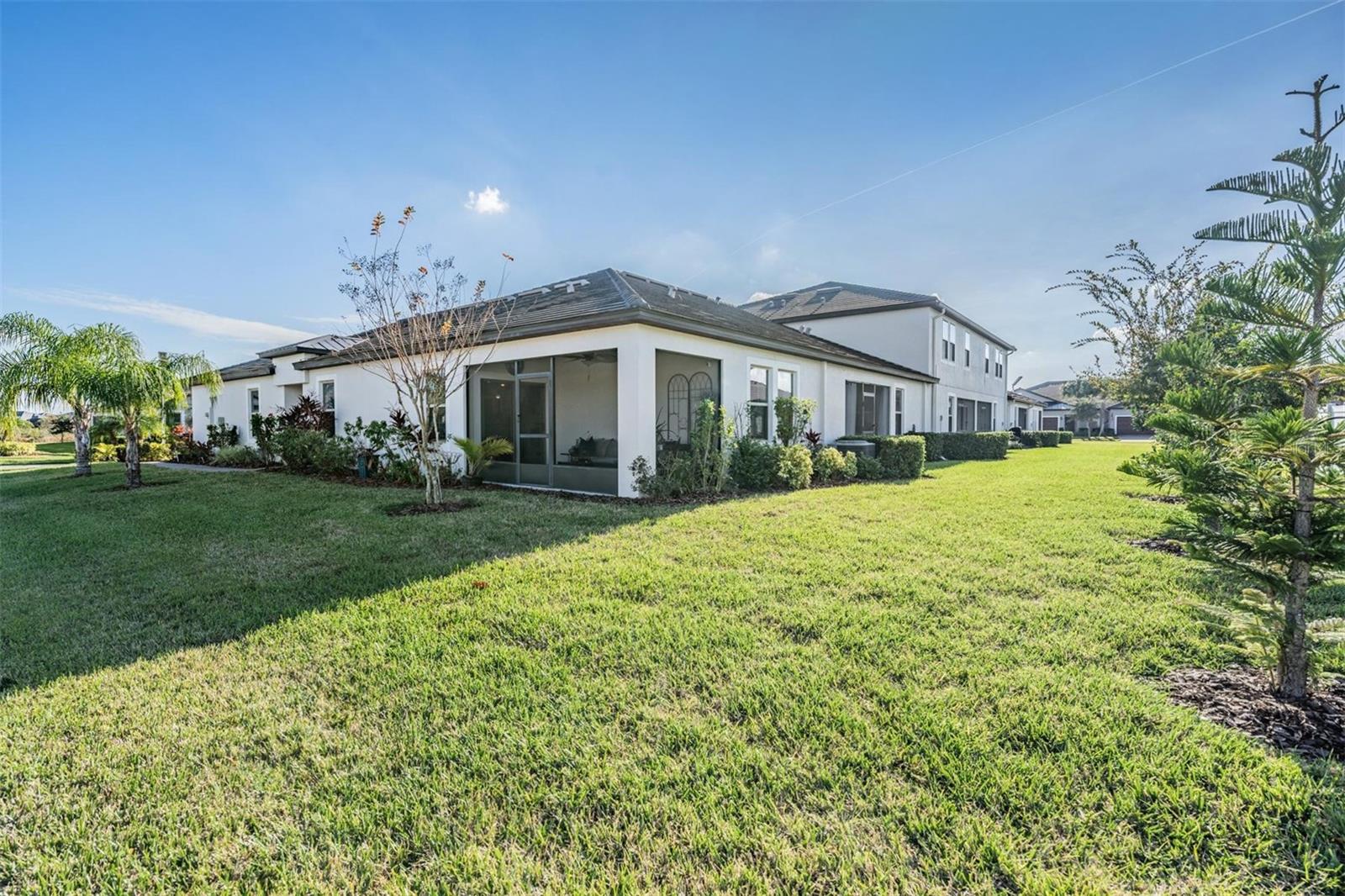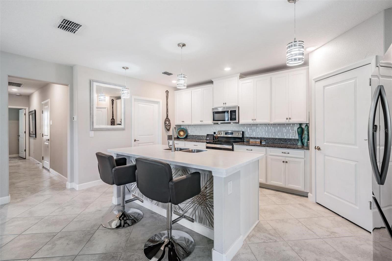 Beauiful spacious end unit villa in Medley Active Adult. For those better than 55 years young, presents an exceptional lifestyle just beyond the confines of your home. As a resident, you'll enjoy exclusive Clubhouse access with a full calendar of events daily! You will also enjoy a restaurant & bar, heated pool w/cabanas, ballroom, billiards room, card room, state of the art fitness center, pickleball & tennis courts, bocce ball, yoga, line dancing and private active adult events. PLUS included in your HOA is a 15-acre lagoon membership w/soft, sandy beaches including a swim-up bar, kayaking, paddleboarding, obstacle course, waterslides, corn hole games, and tons of community events! Be sure & invite friends or family to come along with you as you may gift them passes or pay a deeply discounted rate! This well maintained villa will please even the most selective buyers! Comprised of 2 spacious bedrooms, 2 Full Baths + an office/den, and 1 car garage. Your new home includes lots of upgrades including granite countertops with quartz island, plenty of upgraded lighting, stainless appliances and white cabinetry. Sliding glass doors lead to your fully screened lanai with a wonderful unobstructed view of your highly upgraded lush landscaping. Great spot to sit and relax and enjoy a cup of coffee or glass of wine! As you step inside, you'll be greeted by a seamless flow of open living spaces, making it ideal for both relaxation and entertaining. Get ready to make memories that will last a lifetime! Your dream home awaits; you will be enjoying the CAREFREE FLORIDA RESORT LIFESTYLE in your new home as quickly as you are able to move in! Gorgeous curb appeal on this block villa! Enjoy 42" Cabinets, and Walk-in Pantry in this gorgeous kitchen. Primary Suite with luxury vinyl flooring includes ensuite bath, soaking tub inside shower, dual sinks, grab bar for safety, private water closet, granite counter tops, walk-in Closet to keep you organized, and upgraded ceiling fans to keep you cool. A HUGE PLUS IS THERE IS PLENTY OF PARKING JUST STEPS AWAY! Pavered driveway with pavered walk way all the way to the front door! High-speed (ULTRAFI) internet, premium cable, yard maintenance & exterior painting and homeowners' insurance for structure are covered by HOA. The location of this residence is equally remarkable, situated in close proximity to premier shopping destinations, and an array of dining options, you'll find yourself immersed in a vibrant community that strikes a perfect balance between exclusivity and convenience. Ride your Golf Cart to the Clubhouse, Publix, restaurants, Farmers Market, Chick-fil-A, Banks, Starbucks, Nail Shops, and more! Close to Advent Health Hospitals, BayCare Hospital, Florida Medical Clinic, Wire Grass Mall, Tampa Premium Outlet Mall, Krate at the Grove, Sam's Club, Costco, Golf Courses & Movie Theater. Easy access to I75, 275, Tampa International Airport, Downtown Tampa, and Florida's amazing beaches. CDD IS ALREADY INCLUDED IN TAXES.