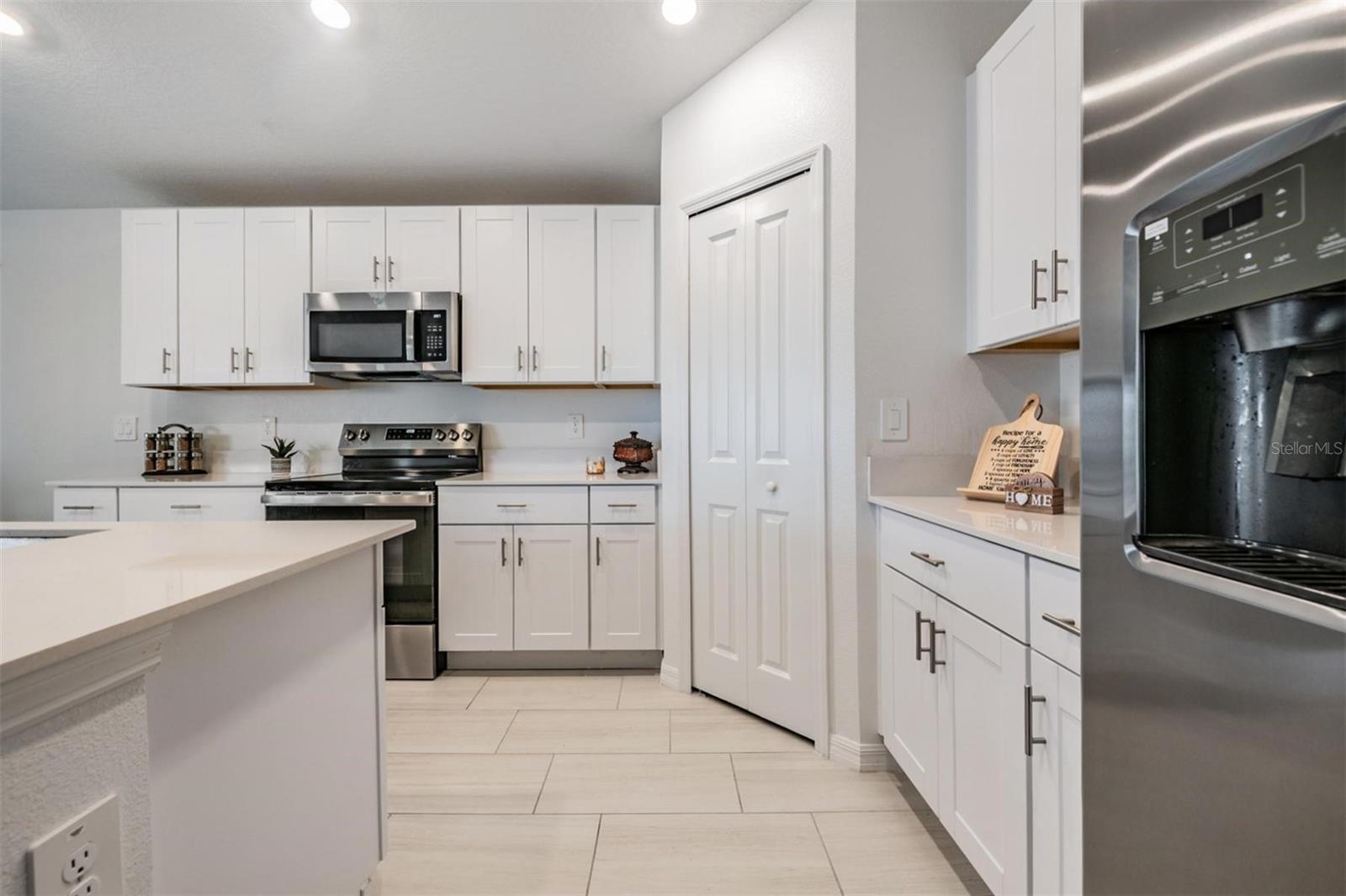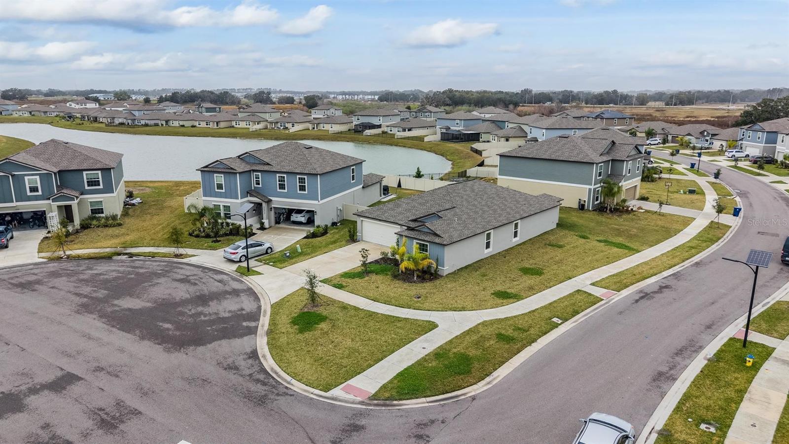 Better Than New: 2024 Corner Cul-De-Sac Home with Lagoon Access! Discover the perfect blend of modern luxury and tranquil living in this pristine, single-story home built in 2024. Ideally situated on a premium corner cul-de-sac lot, this residence sits directly across from a massive open green space—perfect for impromptu family picnics, sports, or simply enjoying the view. Step inside to a light, bright, and airy open floorplan designed for seamless entertaining. The heart of the home is the gourmet kitchen, showcasing stunning quartz countertops, stainless steel GE appliances, a walk-in pantry, and a sprawling center island that overlooks the spacious family and dining rooms. Upgraded tile flooring flows through the living areas, complemented by a crisp, neutral palette ready for your personal touch. Privacy is paramount in this split floorplan. The serene owner’s suite is tucked away from the three secondary bedrooms and features a spa-inspired bathroom with dual vanities, a large walk-in closet, and a tranquil atmosphere. This home is truly move-in ready, boasting thousands in upgrades you won’t get with a builder basic: upgraded laundry room cabinets, stylish blinds on all windows, ceiling fans in every room, and a full Smart Home security package (cameras, keyless entry, and ADT system). Outside, relax on your covered lanai and enjoy the Florida breeze, or utilize the large two-car garage to create a home-gym or chill pad. The Mirada Lifestyle: Living here means exclusive access to the nation’s largest man-made Lagoon. Enjoy a year-round beach lifestyle with swimming, kayaking, paddleboarding, and a splash zone, plus resident-exclusive events. Connected by multi-modal nature trails and featuring playgrounds and dog parks, Mirada offers a resort feel just minutes from I-75, connecting you fast to Downtown Tampa.