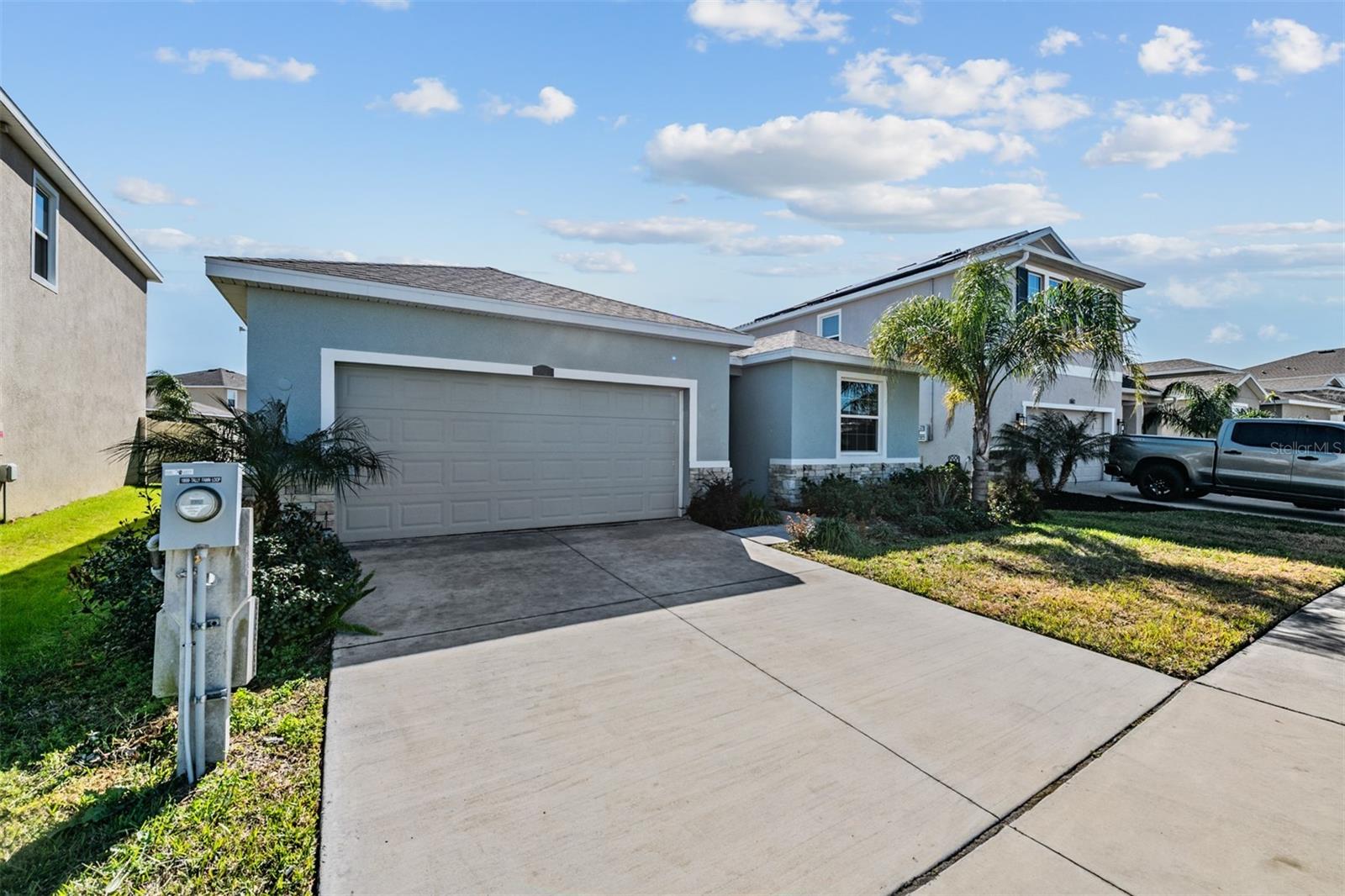 Welcome to Mirada in San Antonio, Florida and experience resort-style living in this "Better than New" 2022 D.R. Horton LANTANA floor plan, offering just over 2,000 square feet. All–concrete block home features 4 spacious bedrooms, 2.5 baths and a 2-car garage, with soaring 9’4” ceilings and a bright open-concept design situated on a beautiful pond-view lot. Great Curb appeal with stone accents and hip roof for insurance discount! From the moment you enter, you’re greeted by a wide, light-filled foyer and hallway that flows into an expansive great room—perfect for both entertaining and relaxed living. The chef’s kitchen, with crown-molded 42-inch solid wood cabinets, stunning granite countertops, stainless-steel appliances, a large island and a walk-in pantry where cooking is a pleasure. Sliding glass doors lead to your generous 9x20 covered lanai, ideal for enjoying Florida living year-round. The primary suite at the rear, features a tray ceiling, abundant natural light, dual walk-in closets, a spa-inspired bath with garden tub, separate walk-in shower, dual granite vanities and a private water closet. Three additional bedrooms are located on separate wings offering flexible space for family, guests, or a home office. Additional upgrades include 20-inch tile in all main living areas, carpeted bedrooms, recessed lighting, rocker switches, smart home technology, double-pane energy-efficient windows, coded front door entry, garage door opener, and an upgraded LG washer and dryer. Mirada is a one-of-a-kind, family-friendly community built around Metro Lagoons’ massive 15-acre crystal-clear lagoon—the largest in the country—complete with sandy beaches, swimming, kayaking, paddleboarding, on-water obstacle courses, and swim-up bars. Residents also enjoy a resort-style pool, tennis and pickleball courts, dog parks, bocce ball, event lawns, scenic walking and biking trails, with sidewalks throughout. Built on the Connected City infrastructure, Mirada offers some of the fastest Wi-Fi speeds in the nation. Located just North of Tampa with easy access to major highways to Tampa, Orlando, Ocala, Wesley Chapel Premium outlet malls and Wiregrass Mall, the Grove, Krate, pop stroke, minature golf, dueling pianos or Historic Dade City! OR STAY HOME and enjoy a Serne and True “RESORT STYLE VACATION” lifestyle... this community has it all! CALL TODAY!