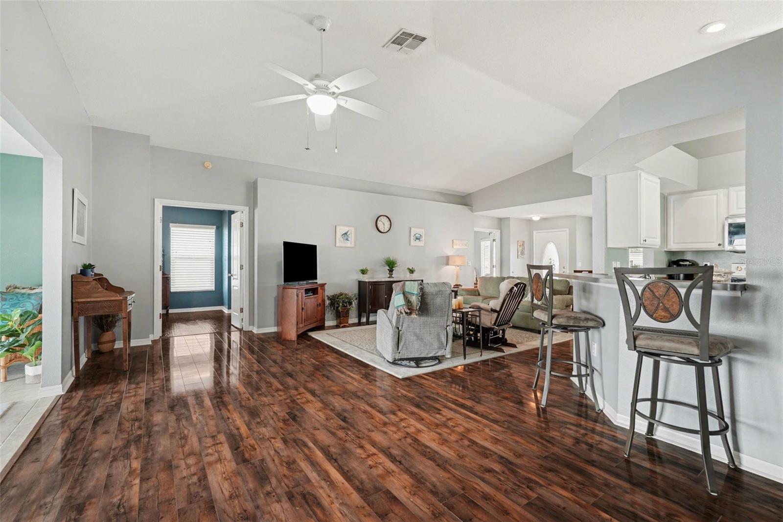 Experience relaxed Florida living in this well-maintained, mostly furnished, 2-bedroom plus den home located in the highly sought-after 55+ community of Tampa Bay Golf & Country Club. Major updates include a 2016 roof, hurricane-resistant windows installed in 2019, a 2017 air conditioner with UV light added in 2023, and a water conditioning system installed in 2022 (just add salt). Engineered hardwood floors flow through the main living and dining areas, creating a warm and inviting feel, while wet areas like the kitchen, baths, and Florida room have tile floors. The interior was freshly painted in 2021 and features updated blinds installed in 2020. The kitchen and laundry area include a newer dryer that matches the washing machine. Additional exterior improvements include a hurricane shutter on the back sliding door installed in 2020 and an extended driveway that provides extra parking space. The screened rear enclosure offers a comfortable outdoor area to relax and enjoy the Florida weather. Residents enjoy the amenities of Tampa Bay Golf & Country Club, where golf is available through optional memberships or on a pay-as-you-play basis. The community clubhouse offers a pro shop, card and game rooms, a library, and a spacious ballroom that hosts a variety of social gatherings and events. The on-site Champion’s Restaurant and Pub serves lunch and dinner, with outdoor lanai seating that provides a great place to take in the evening sunsets. Additional community amenities include a fitness center, tennis and pickleball courts, shuffleboard, corn hole, a heated resort-style pool with a large deck for lounging, and two dog parks conveniently located within the neighborhood. HOA fees include cable and internet service. Optional lawn care service is available for $210 per quarter, or owners may arrange their own lawn maintenance.
