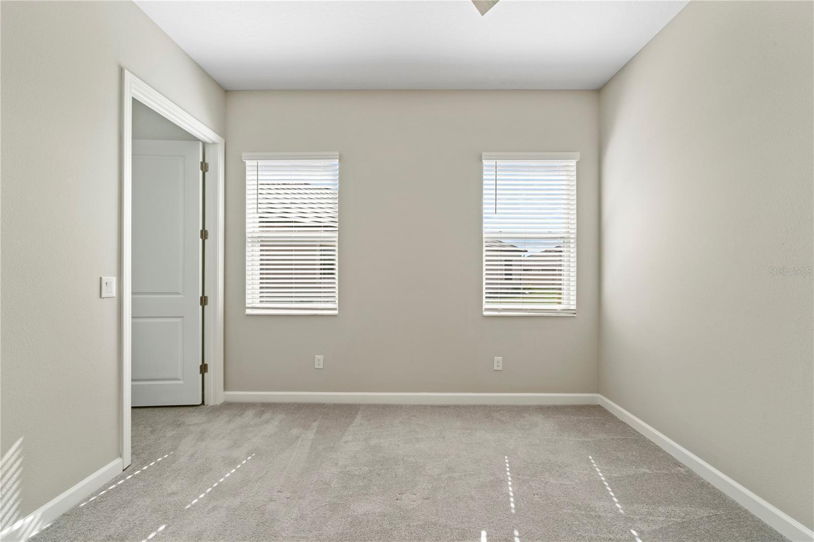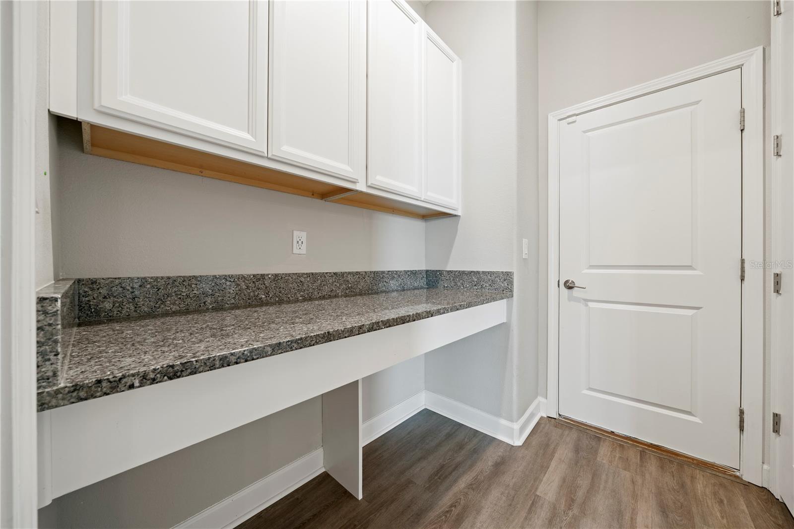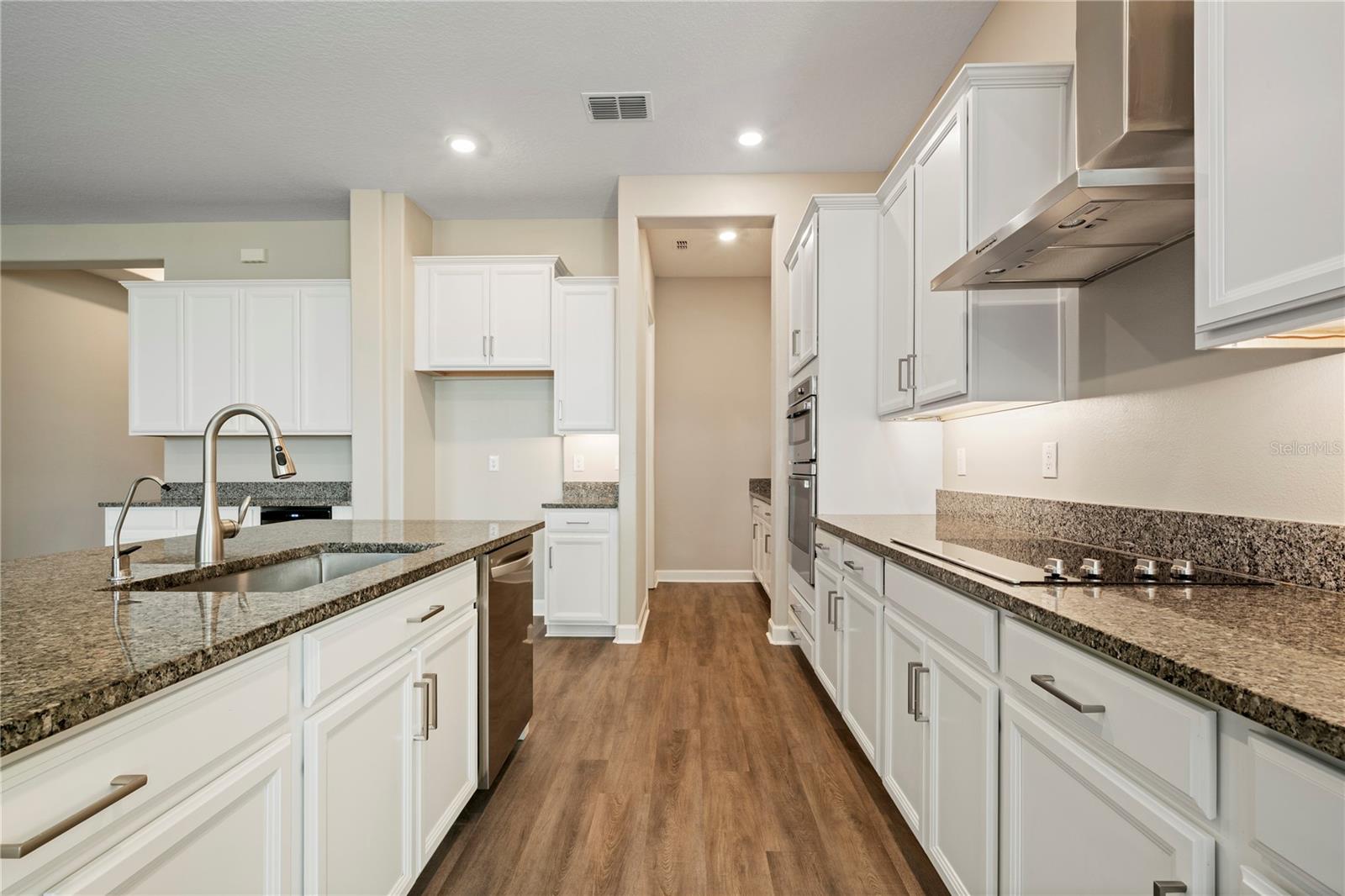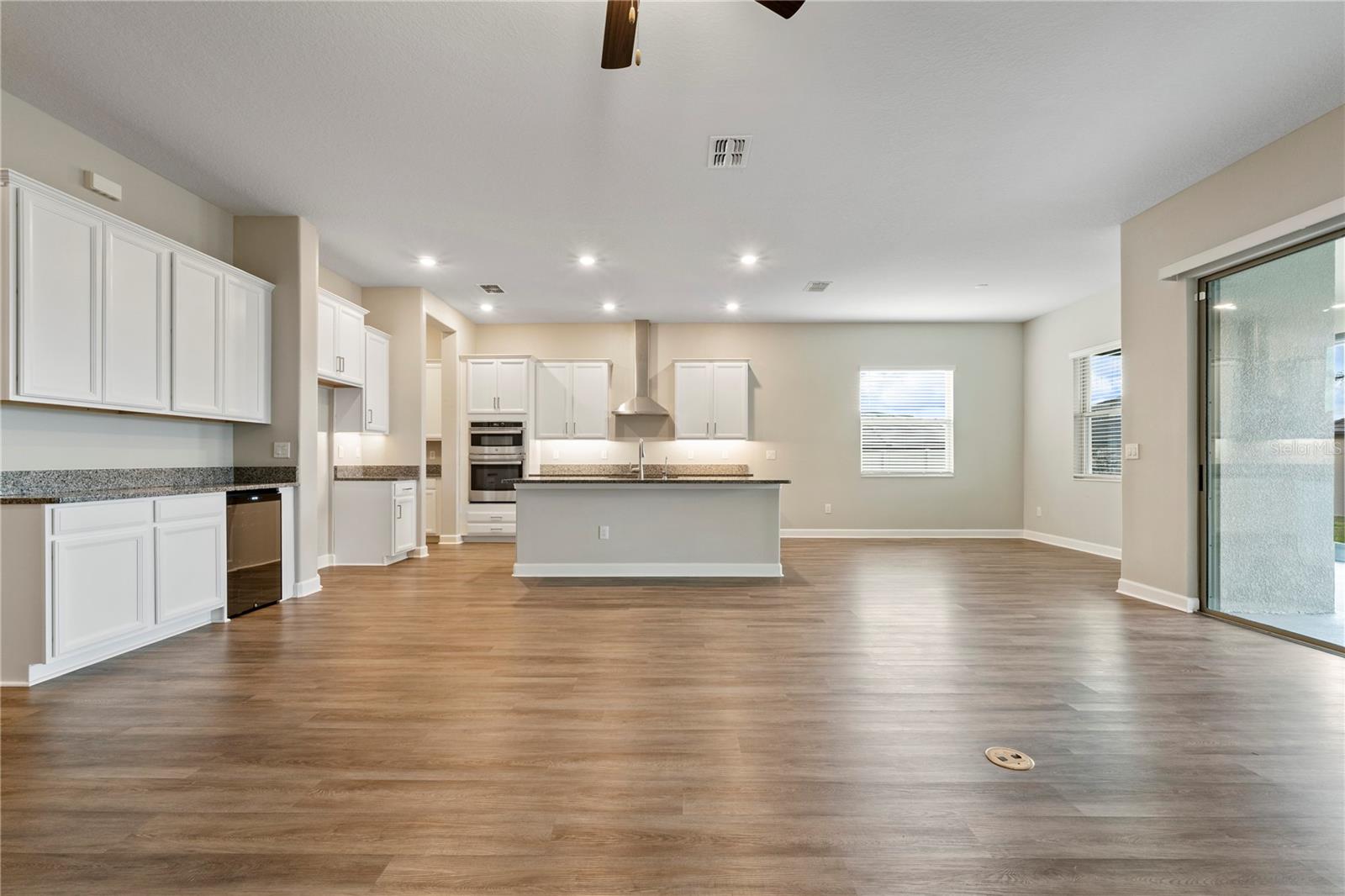 Experience maintenance-free living at its finest in the 55+ gated Medley section of the Mirada Lagoon community. This meticulously maintained “Halos” model offers 3 bedrooms, 2.5 baths, a versatile flex room, and 2,350 square feet of beautifully designed living space, delivering exceptional comfort and value in one of the area’s most sought-after active adult communities. From the moment you arrive, the home impresses with outstanding curb appeal, highlighted by tropical landscaping, a brick paver driveway and walkway, and a welcoming covered front porch, all accented by a durable concrete flat tile roof. Step inside to an elegant foyer with 10-foot tray ceilings that naturally separates the private guest wing featuring two bedrooms and a full bath from the main living areas. The home showcases 7-inch wide plank brown vinyl flooring in the main living spaces, 8-foot interior doors throughout, plush carpeting in the bedrooms and flex room, and granite countertops throughout the home for a cohesive upscale finish. The split-bedroom layout provides privacy for the expansive owner’s suite, complete with a luxurious bath featuring dual sink areas, separate mirrors, and a spacious walk-in closet. The state-of-the-art kitchen opens to the great room and features abundant cabinetry, granite counters, under-cabinet lighting, a large center island breakfast bar, a Butler’s pantry, and a walk-in pantry, along with a bright café dining area overlooking the backyard. The great room includes a built-in dry bar with upper and lower cabinets, Granite countertop, and a wine refrigerator, perfect for entertaining. It opens to the screened rear lanai with retractable sun shades, where you can enjoy beautiful Florida sunsets overlooking the fully fenced backyard. A flex room located near the lanai and primary suite is ideal for a home office, den, or guest retreat. Additional highlights include a laundry room with custom cabinetry, a two-and-a-half-car garage with a separate golf cart garage door, and stairs leading to a second-floor storage room for excellent organization. This move-in-ready home also features energy-efficient systems, including a Carrier 16 SEER air conditioning system. Residents of Medley at Mirada enjoy true maintenance-free living, with services including complete lawn care (mowing, mulching, trimming, blowing, fertilizing, and insect control) plus scheduled exterior painting every seven years. The resort-style Medley community offers exclusive amenities, including a clubhouse, beach-entry pool, pickleball courts, fitness center, ballroom with banquet facilities, and a full calendar of planned classes, activities, events, and excursions. Conveniently located north of Tampa just off a major highway, the community provides easy access to Wesley Chapel, Ocala, Orlando, Lakeland, major airports, and Florida’s beautiful beaches—schedule your private showing today and discover why Medley at Mirada is truly the place to be.