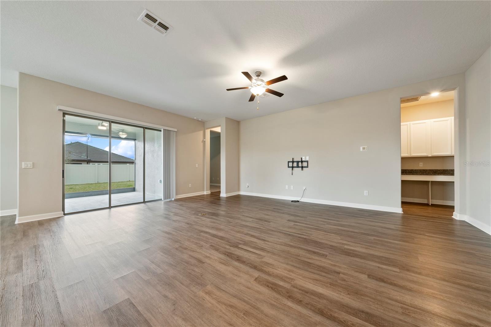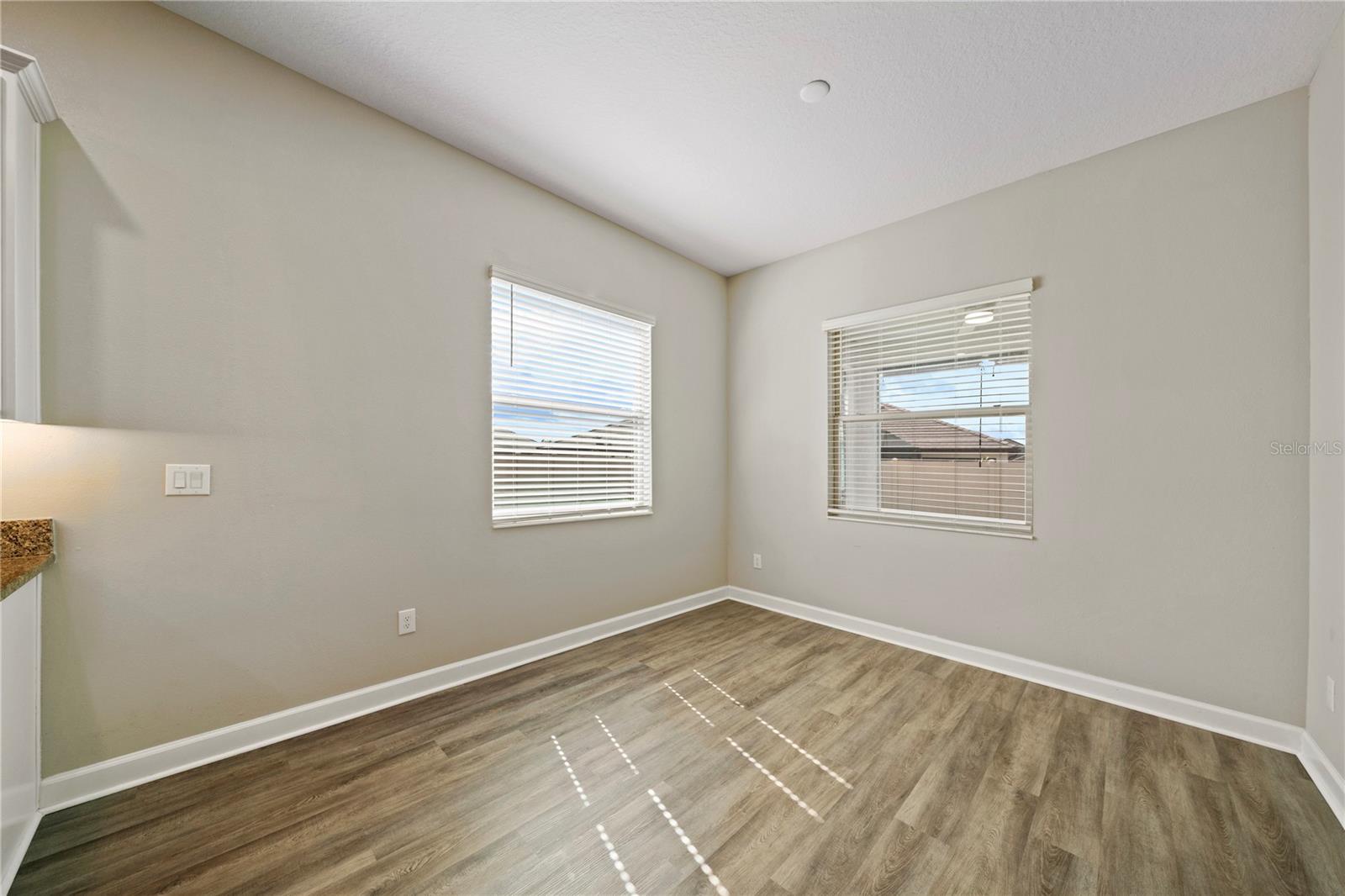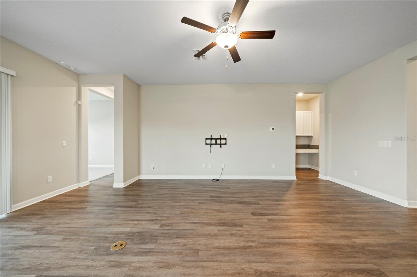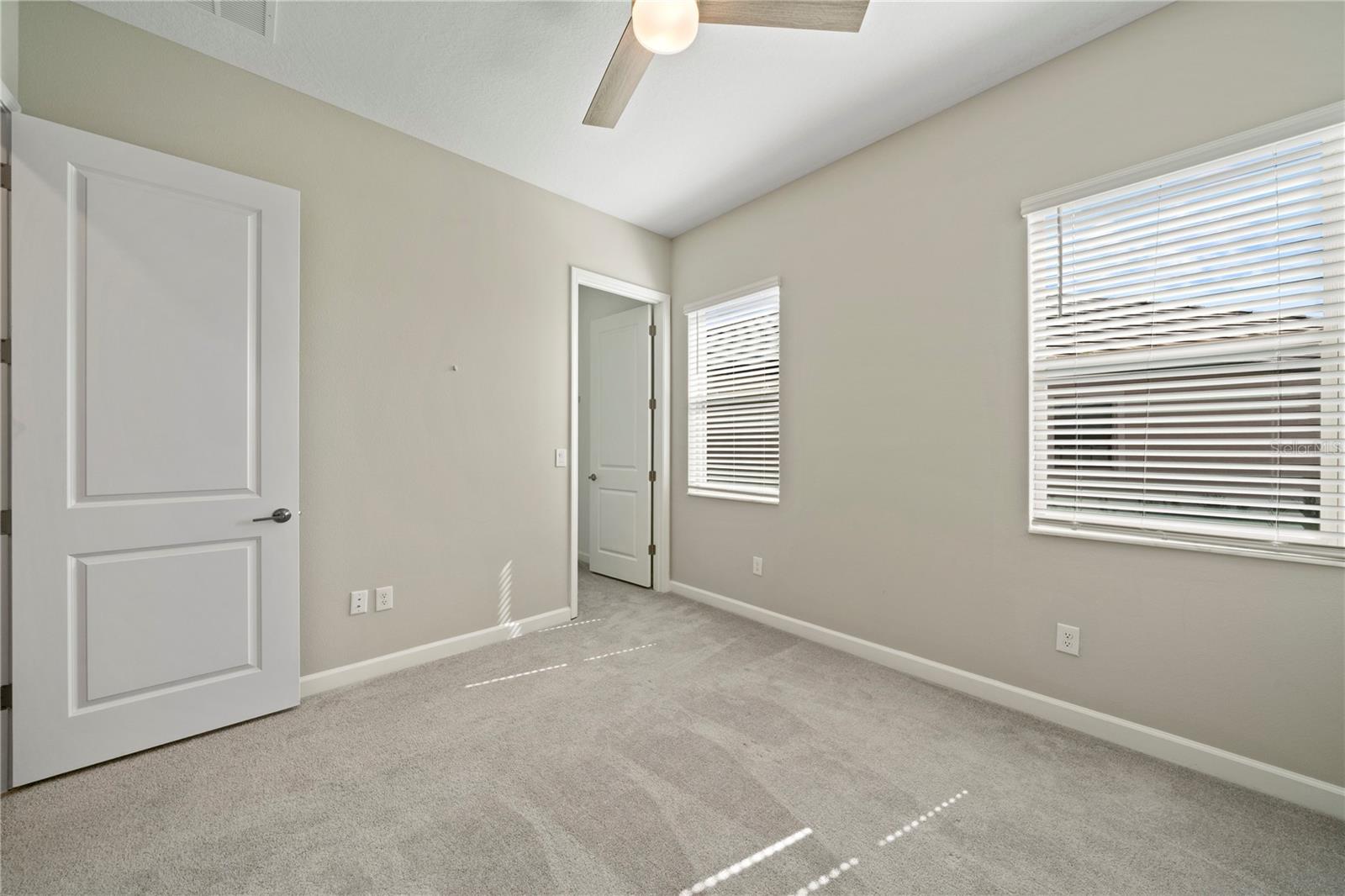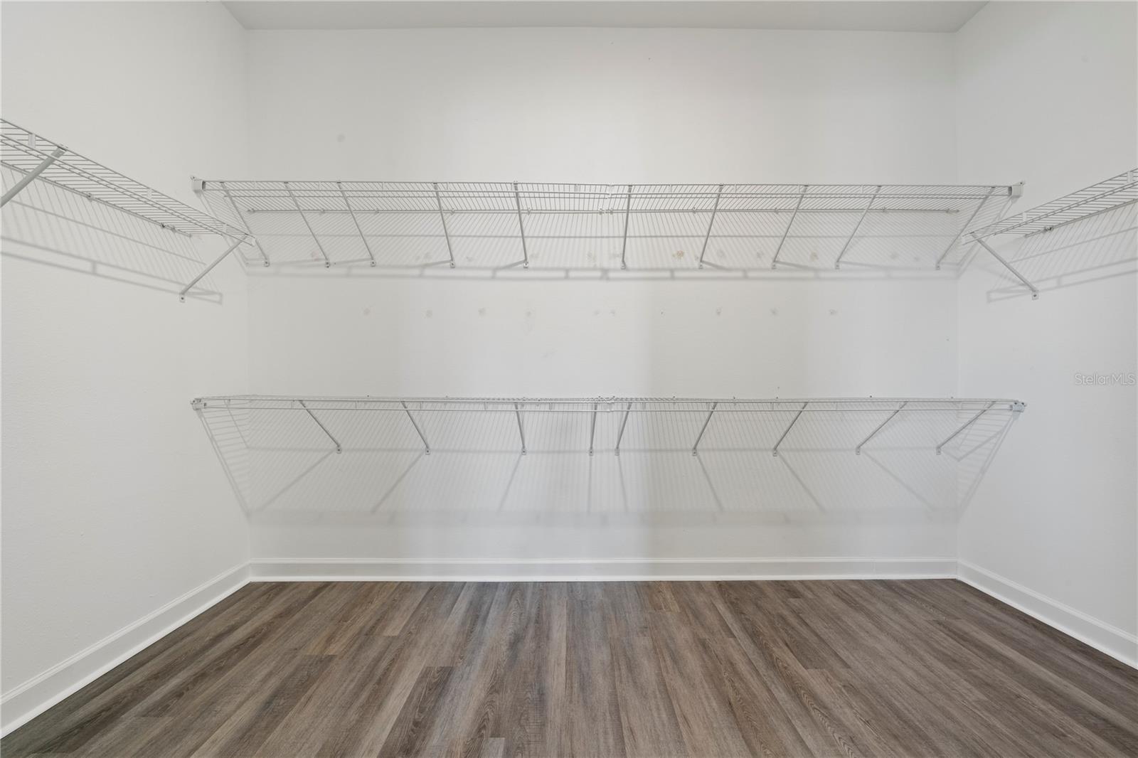 Experience maintenance-free living at its finest in the 55+ gated Medley section of the Mirada Lagoon community. This meticulously maintained “Halos” model offers 3 bedrooms, 2.5 baths, a versatile flex room, and 2,350 square feet of beautifully designed living space, delivering exceptional comfort and value in one of the area’s most sought-after active adult communities. From the moment you arrive, the home impresses with outstanding curb appeal, highlighted by tropical landscaping, a brick paver driveway and walkway, and a welcoming covered front porch, all accented by a durable concrete flat tile roof. Step inside to an elegant foyer with 10-foot tray ceilings that naturally separates the private guest wing featuring two bedrooms and a full bath from the main living areas. The home showcases 7-inch wide plank brown vinyl flooring in the main living spaces, 8-foot interior doors throughout, plush carpeting in the bedrooms and flex room, and granite countertops throughout the home for a cohesive upscale finish. The split-bedroom layout provides privacy for the expansive owner’s suite, complete with a luxurious bath featuring dual sink areas, separate mirrors, and a spacious walk-in closet. The state-of-the-art kitchen opens to the great room and features abundant cabinetry, granite counters, under-cabinet lighting, a large center island breakfast bar, a Butler’s pantry, and a walk-in pantry, along with a bright café dining area overlooking the backyard. The great room includes a built-in dry bar with upper and lower cabinets, Granite countertop, and a wine refrigerator, perfect for entertaining. It opens to the screened rear lanai with retractable sun shades, where you can enjoy beautiful Florida sunsets overlooking the fully fenced backyard. A flex room located near the lanai and primary suite is ideal for a home office, den, or guest retreat. Additional highlights include a laundry room with custom cabinetry, a two-and-a-half-car garage with a separate golf cart garage door, and stairs leading to a second-floor storage room for excellent organization. This move-in-ready home also features energy-efficient systems, including a Carrier 16 SEER air conditioning system. Residents of Medley at Mirada enjoy true maintenance-free living, with services including complete lawn care (mowing, mulching, trimming, blowing, fertilizing, and insect control) plus scheduled exterior painting every seven years. The resort-style Medley community offers exclusive amenities, including a clubhouse, beach-entry pool, pickleball courts, fitness center, ballroom with banquet facilities, and a full calendar of planned classes, activities, events, and excursions. Conveniently located north of Tampa just off a major highway, the community provides easy access to Wesley Chapel, Ocala, Orlando, Lakeland, major airports, and Florida’s beautiful beaches—schedule your private showing today and discover why Medley at Mirada is truly the place to be.