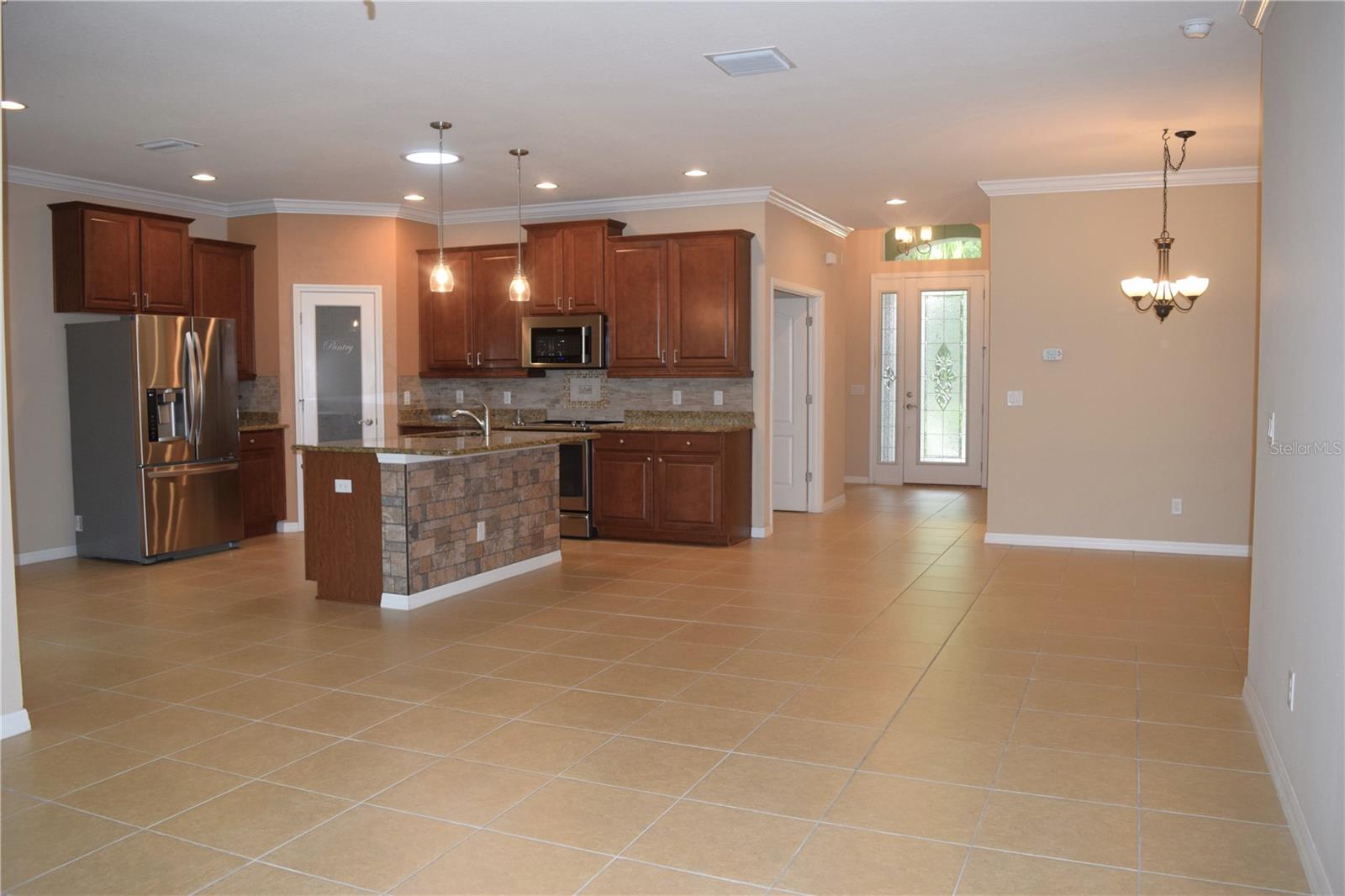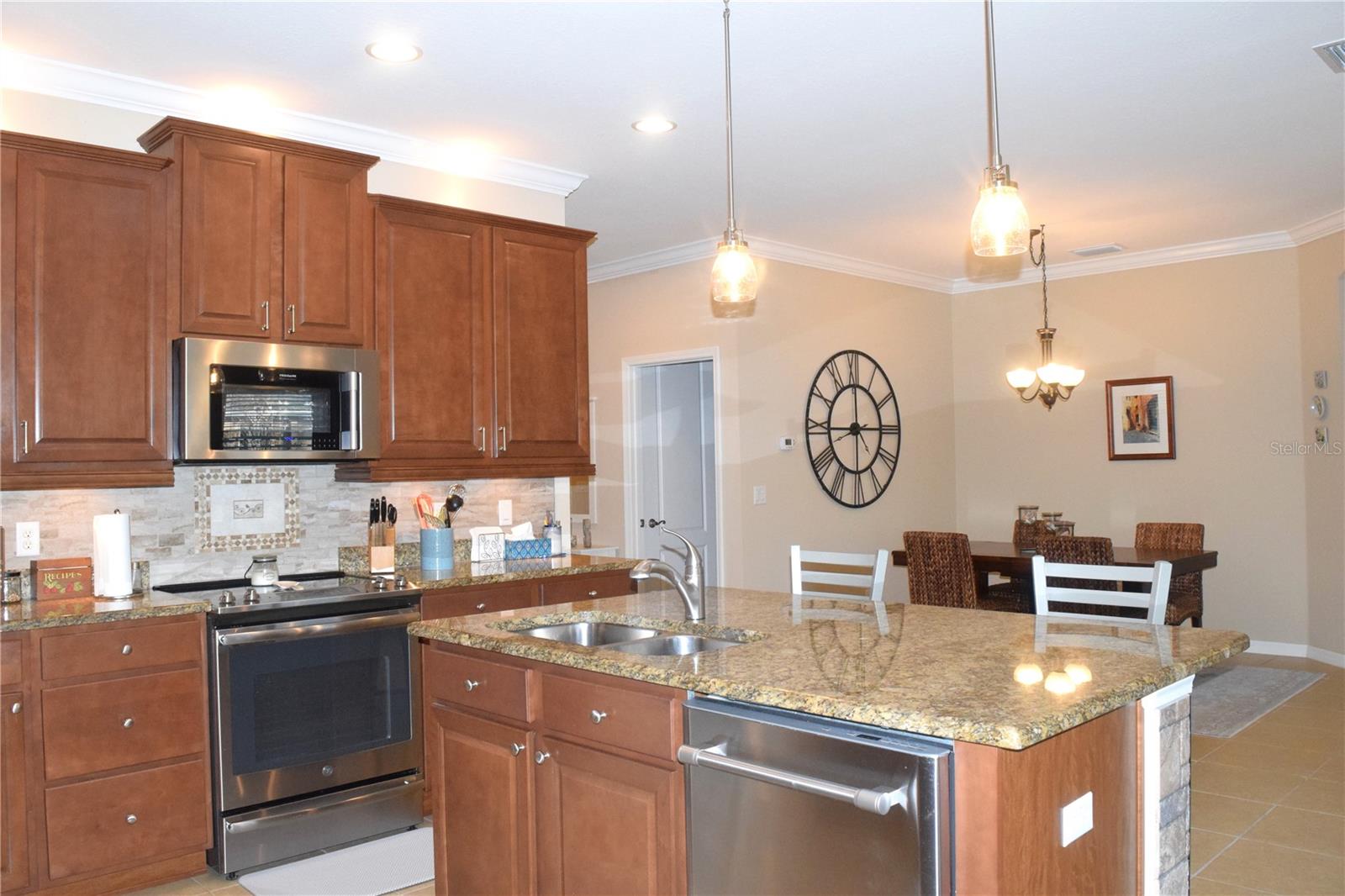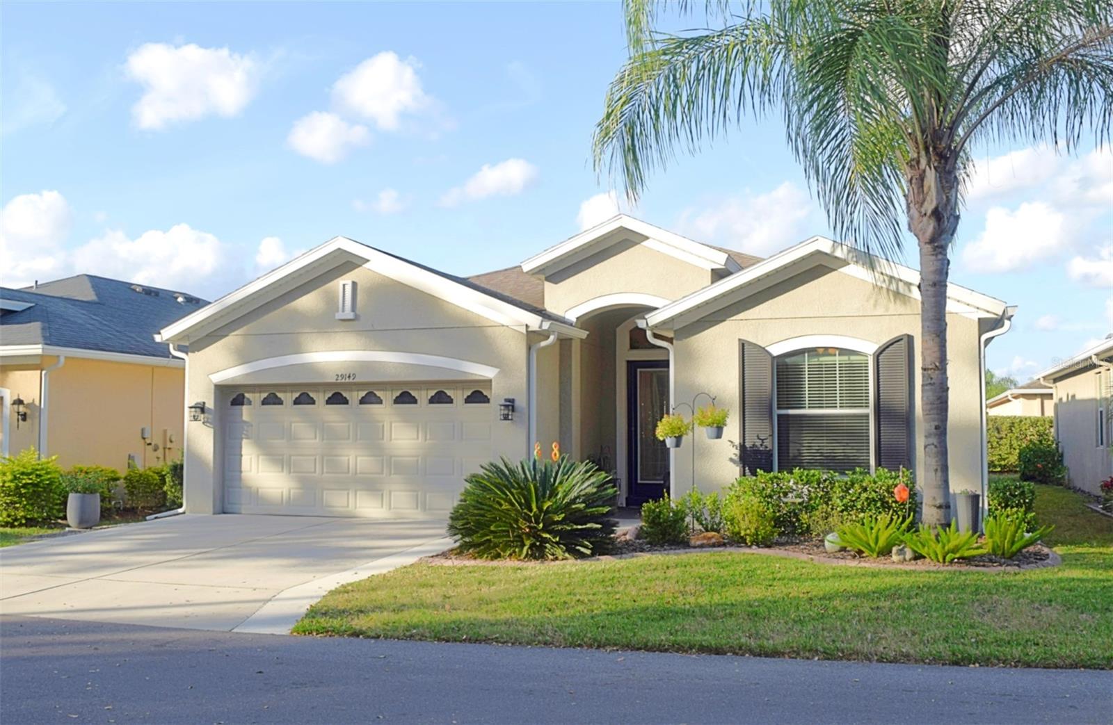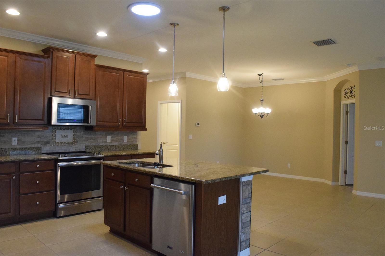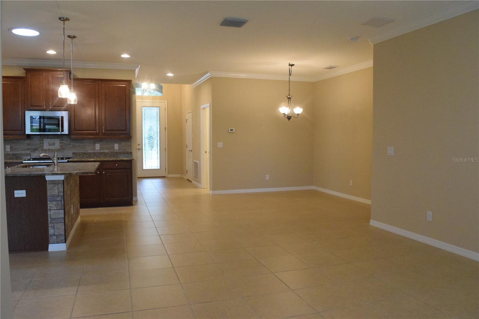 Welcome to your ideal move-in ready home! This well-kept residence offers a seamless blend of comfort and style. The interior boasts tile flooring throughout, creating a sleek and low-maintenance environment. Step into the kitchen, a culinary haven featuring granite counters, a corner closet pantry, stainless steel appliances, and a stunning tile backsplash that adds a touch of elegance. The master bathroom is a retreat with a counter-height granite dual sink vanity, a tiled walk-in shower with a bench, a separate water closet, and a spacious walk-in closet. Guests can have their own hall leading to the guest bedroom and second bath complete with a counter-height granite vanity and a tiled shower with a tub. The den, featuring double doors and a small closet, can serve as an additional bedroom or a flexible space to suit your needs. Experience outdoor relaxation on the private screened lanai, leading to a brick paver patio - an ideal spot for grilling and entertaining. The 2-car garage includes overhead storage shelves, and the extended driveway on both sides adds convenience. Enjoy the perks of a 55+ community with the HOA covering cable, internet, lawn care, and access to a range of amenities, including swimming pools, fitness center, clubhouses, and more. Don't miss the chance to call this meticulously maintained property your home!