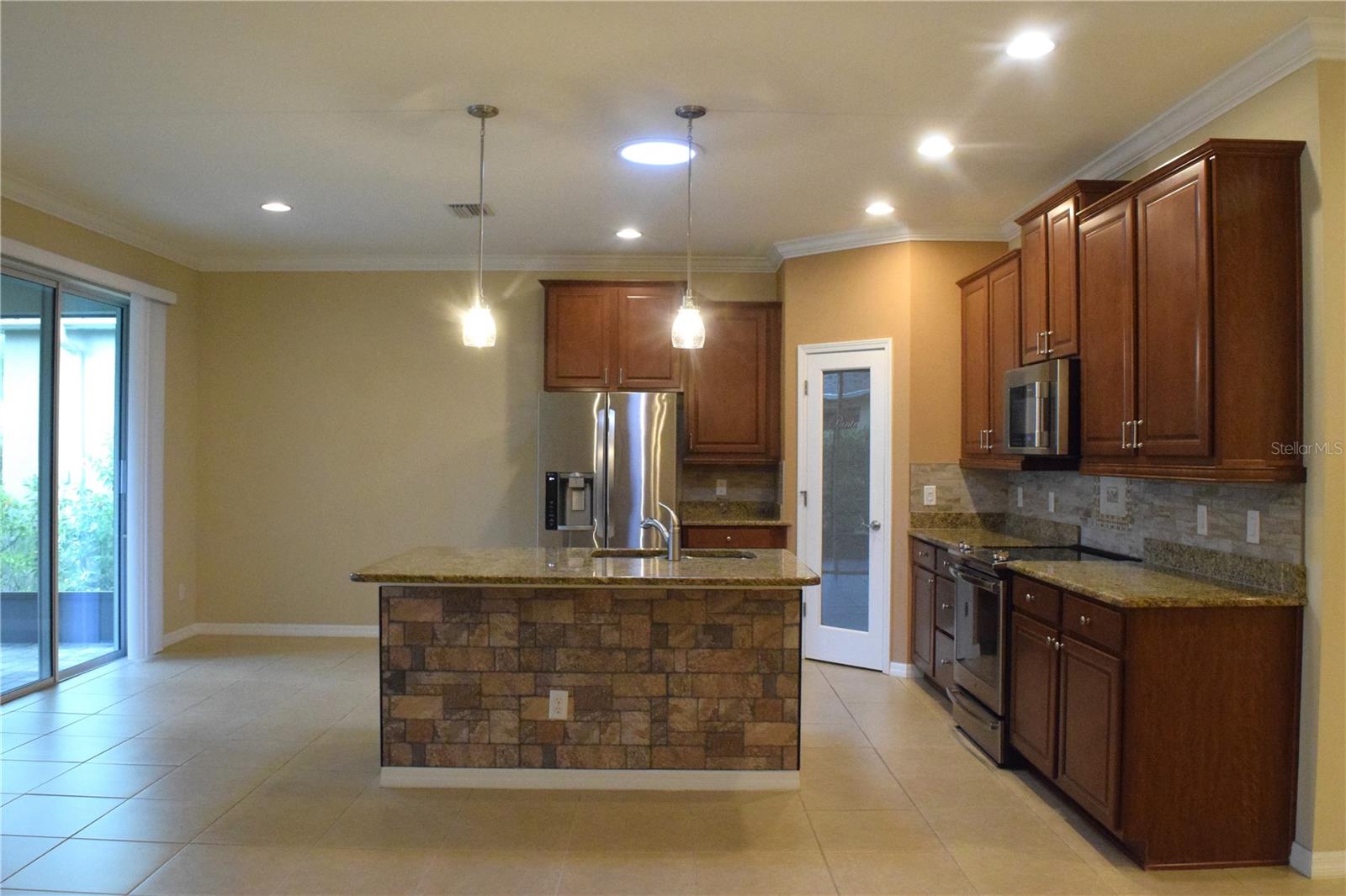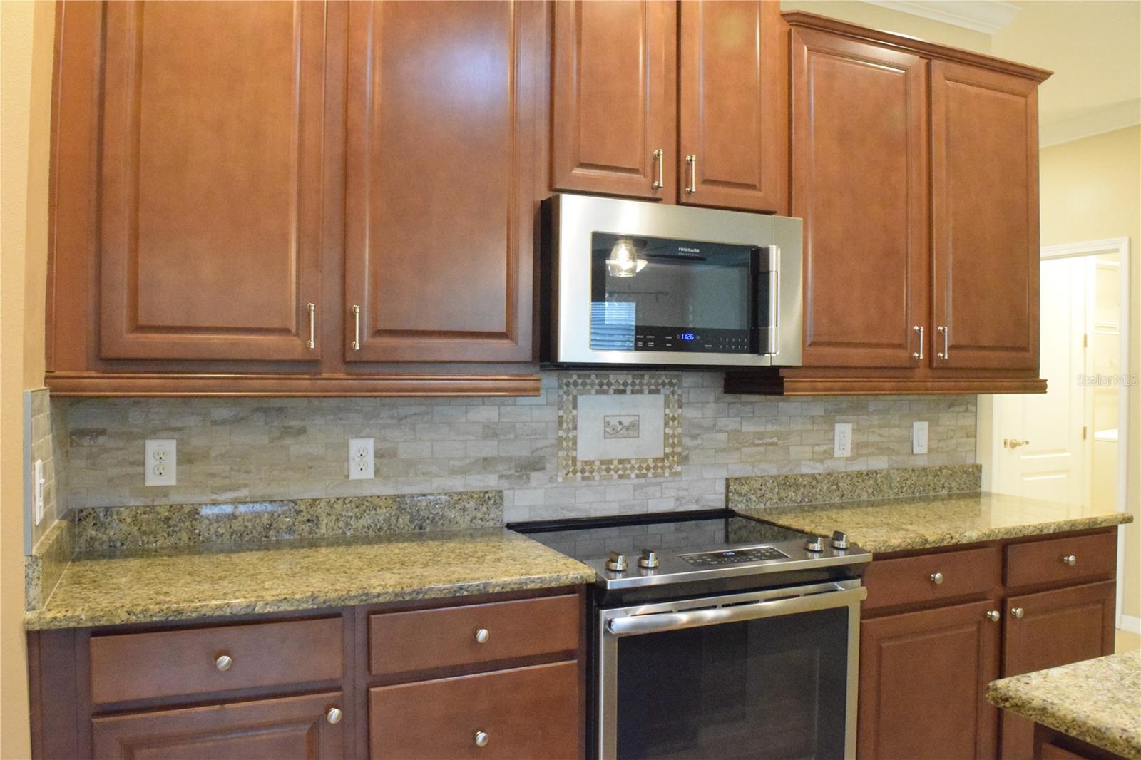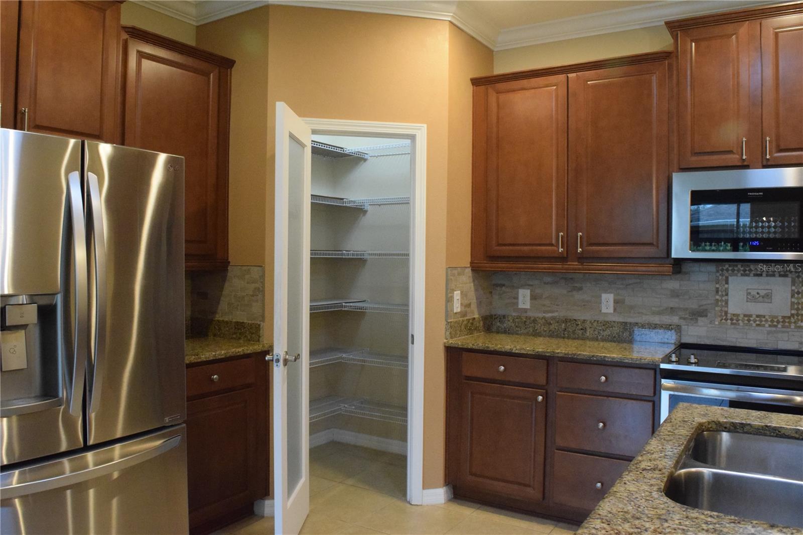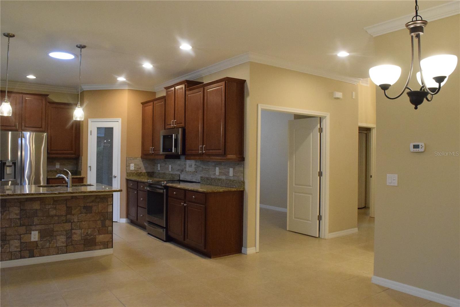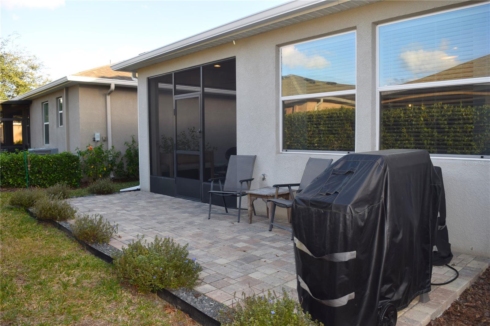 Welcome to your ideal move-in ready home! This well-kept residence offers a seamless blend of comfort and style. The interior boasts tile flooring throughout, creating a sleek and low-maintenance environment. Step into the kitchen, a culinary haven featuring granite counters, a corner closet pantry, stainless steel appliances, and a stunning tile backsplash that adds a touch of elegance. The master bathroom is a retreat with a counter-height granite dual sink vanity, a tiled walk-in shower with a bench, a separate water closet, and a spacious walk-in closet. Guests can have their own hall leading to the guest bedroom and second bath complete with a counter-height granite vanity and a tiled shower with a tub. The den, featuring double doors and a small closet, can serve as an additional bedroom or a flexible space to suit your needs. Experience outdoor relaxation on the private screened lanai, leading to a brick paver patio - an ideal spot for grilling and entertaining. The 2-car garage includes overhead storage shelves, and the extended driveway on both sides adds convenience. Enjoy the perks of a 55+ community with the HOA covering cable, internet, lawn care, and access to a range of amenities, including swimming pools, fitness center, clubhouses, and more. Don't miss the chance to call this meticulously maintained property your home!