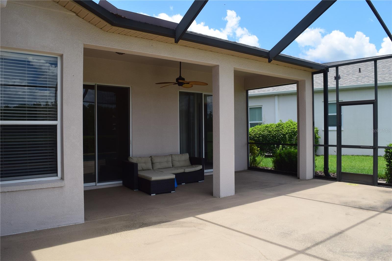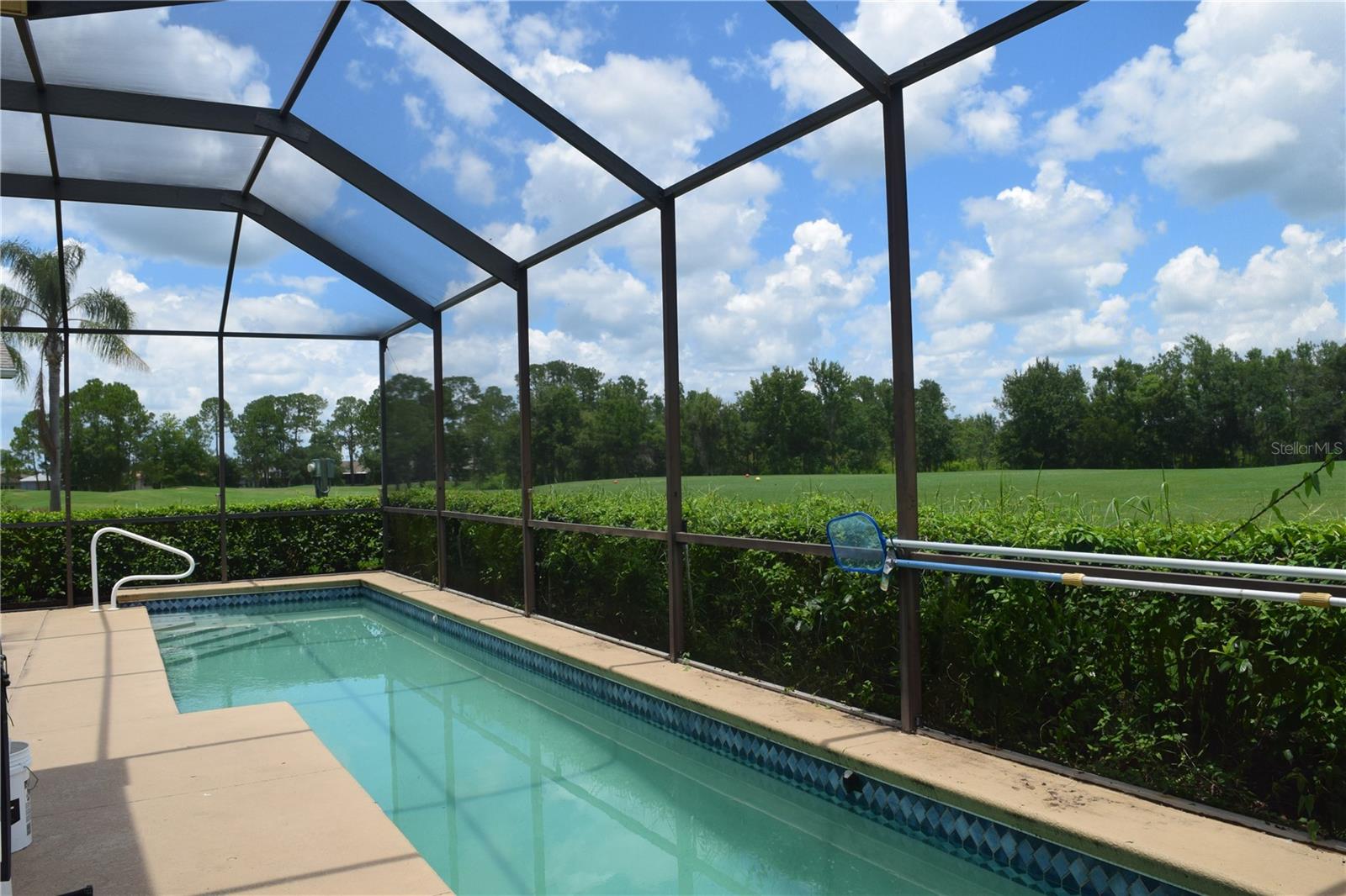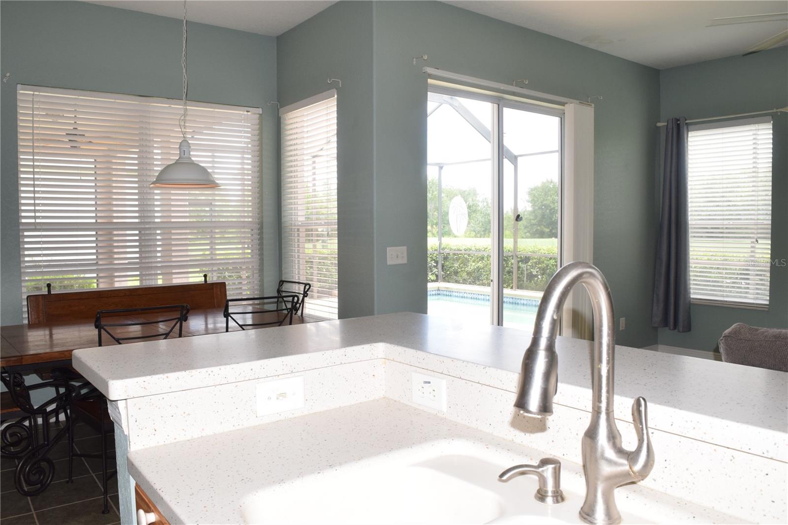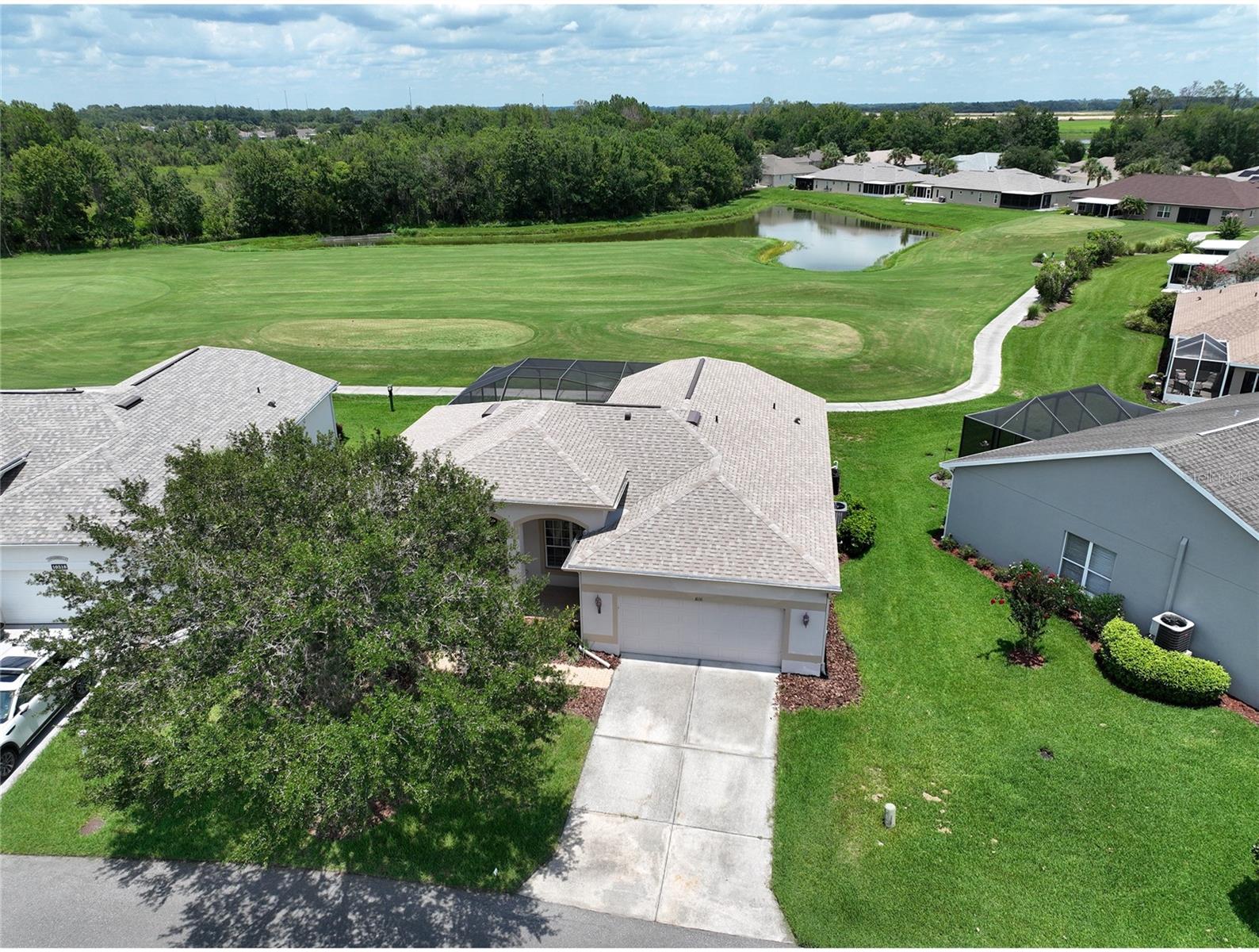 This Pool Home offers picturesque golf course views and features 3 bedrooms, 2 baths, and a 2-car garage. Enter through the expansive front porch into the inviting living/dining room combo, with access to the screened lanai and pool area. The open kitchen includes a sit-in dinette, perfect for engaging with family in the adjoining family room. The primary suite boasts split dual sinks, a garden tub, a separate walk-in shower, and two large closets. A split floorplan ensures privacy for guests. The laundry room provides additional storage space that can double as a pantry. Roof was replaced in 2022, A/C in 2024, Water Heater 2022, and House Exterior Painted in 2023. HOA fees cover cable, internet, lawn care, and provide access to a wide array of amenities. The community features an on-site championship golf course, an executive course, two swimming pools, a fitness center, and a restaurant/pub. Furniture is optional with the sale of the home. Come view this home today!