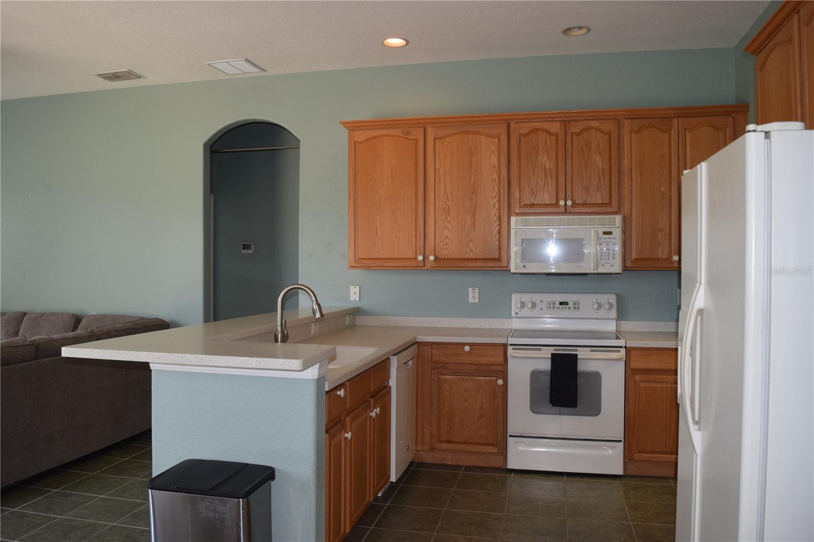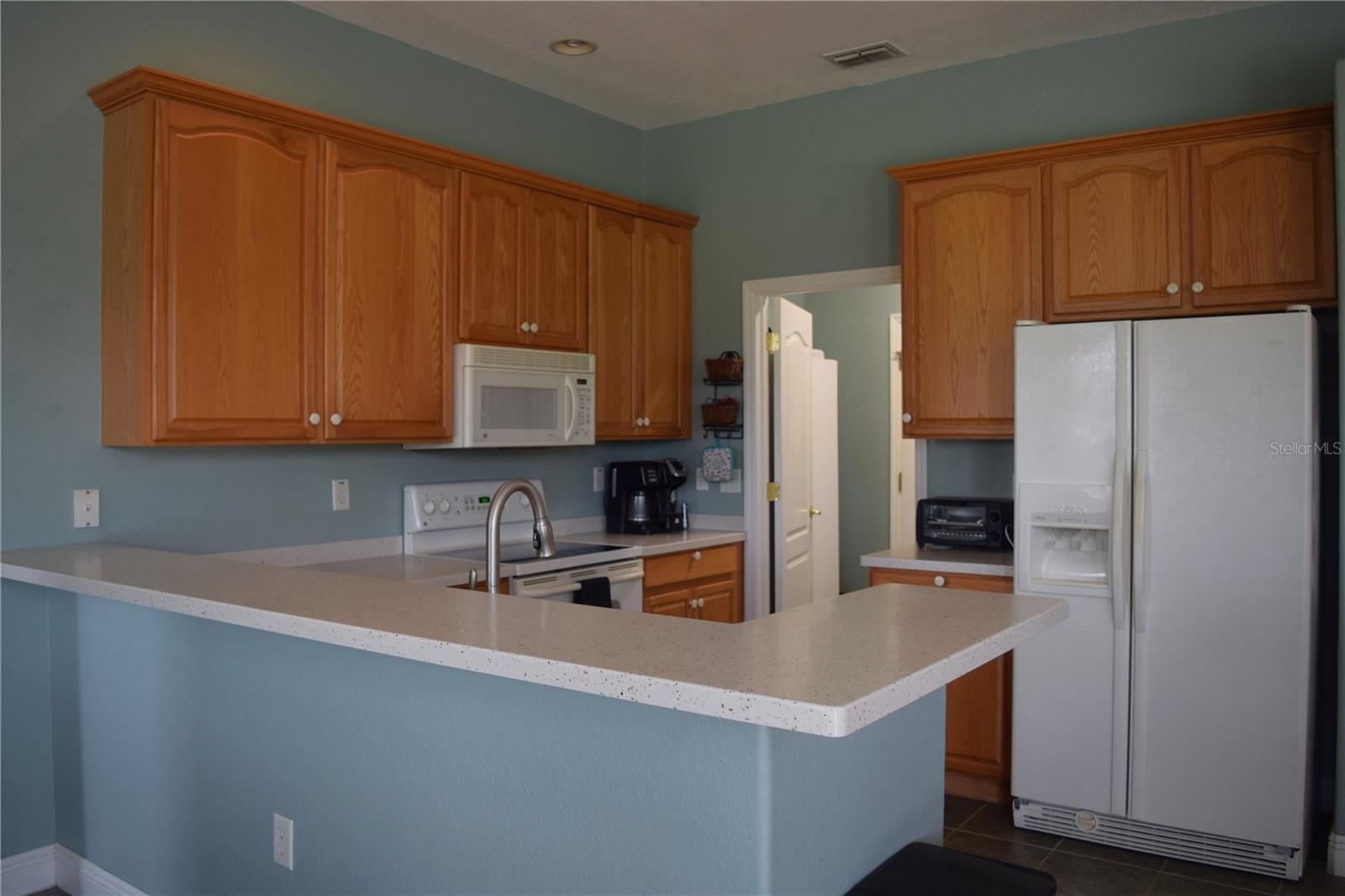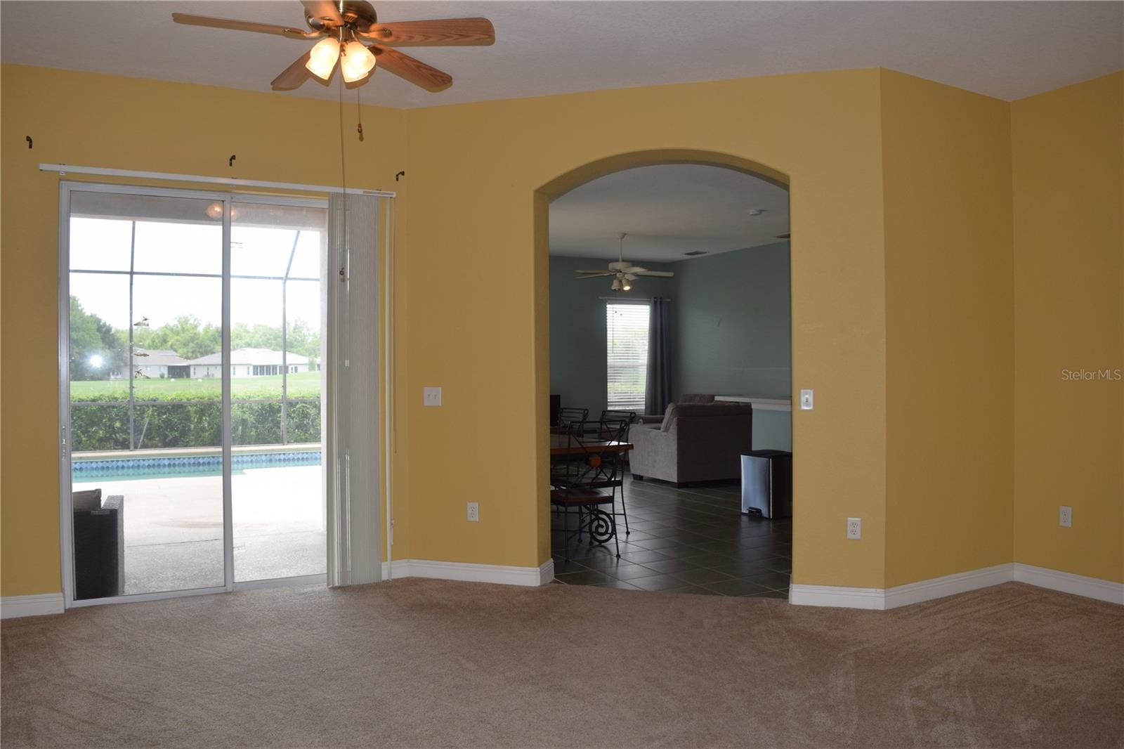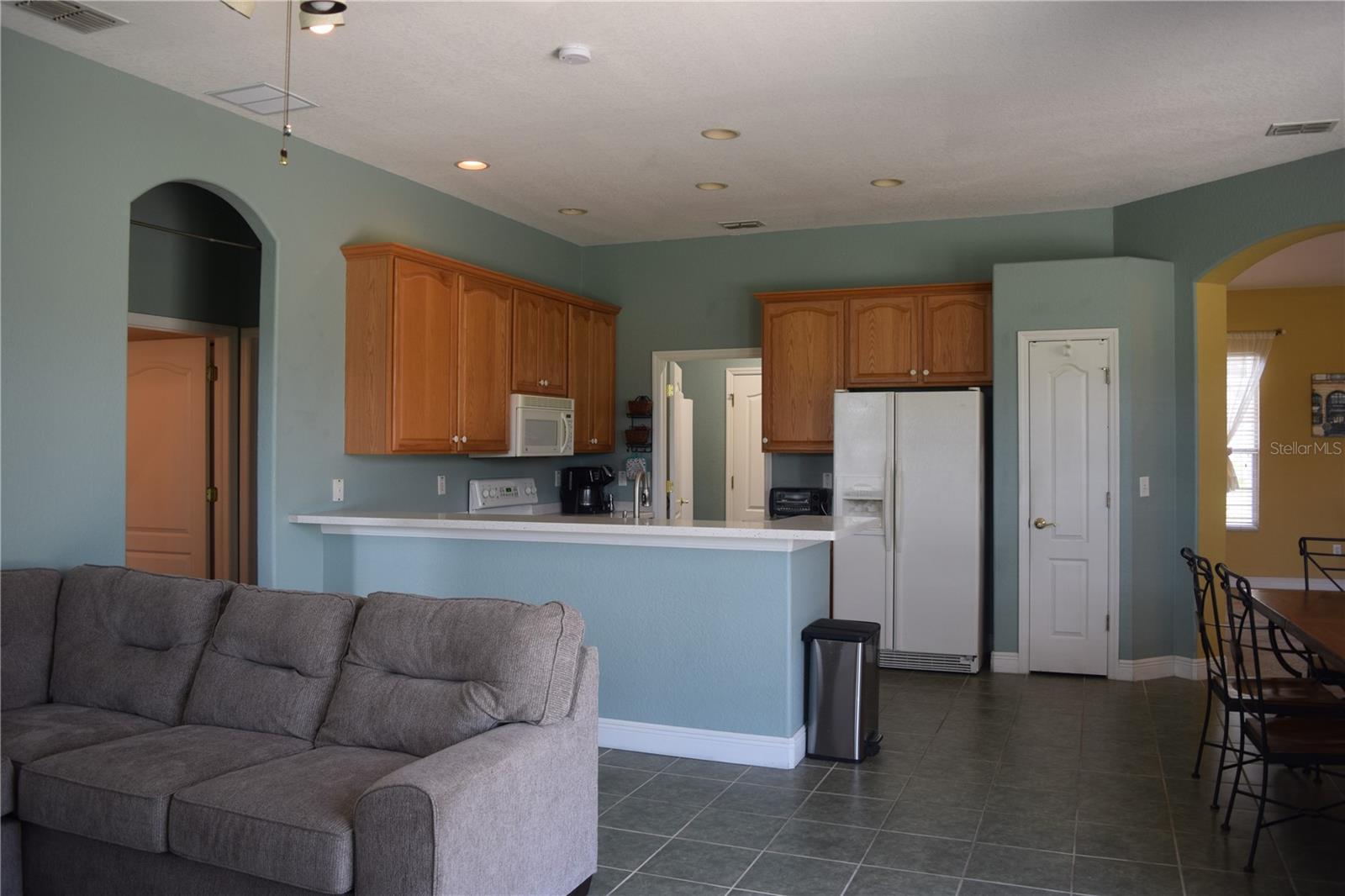 This Pool Home offers picturesque golf course views and features 3 bedrooms, 2 baths, and a 2-car garage. Enter through the expansive front porch into the inviting living/dining room combo, with access to the screened lanai and pool area. The open kitchen includes a sit-in dinette, perfect for engaging with family in the adjoining family room. The primary suite boasts split dual sinks, a garden tub, a separate walk-in shower, and two large closets. A split floorplan ensures privacy for guests. The laundry room provides additional storage space that can double as a pantry. Roof was replaced in 2022, A/C in 2024, Water Heater 2022, and House Exterior Painted in 2023. HOA fees cover cable, internet, lawn care, and provide access to a wide array of amenities. The community features an on-site championship golf course, an executive course, two swimming pools, a fitness center, and a restaurant/pub. Furniture is optional with the sale of the home. Come view this home today!