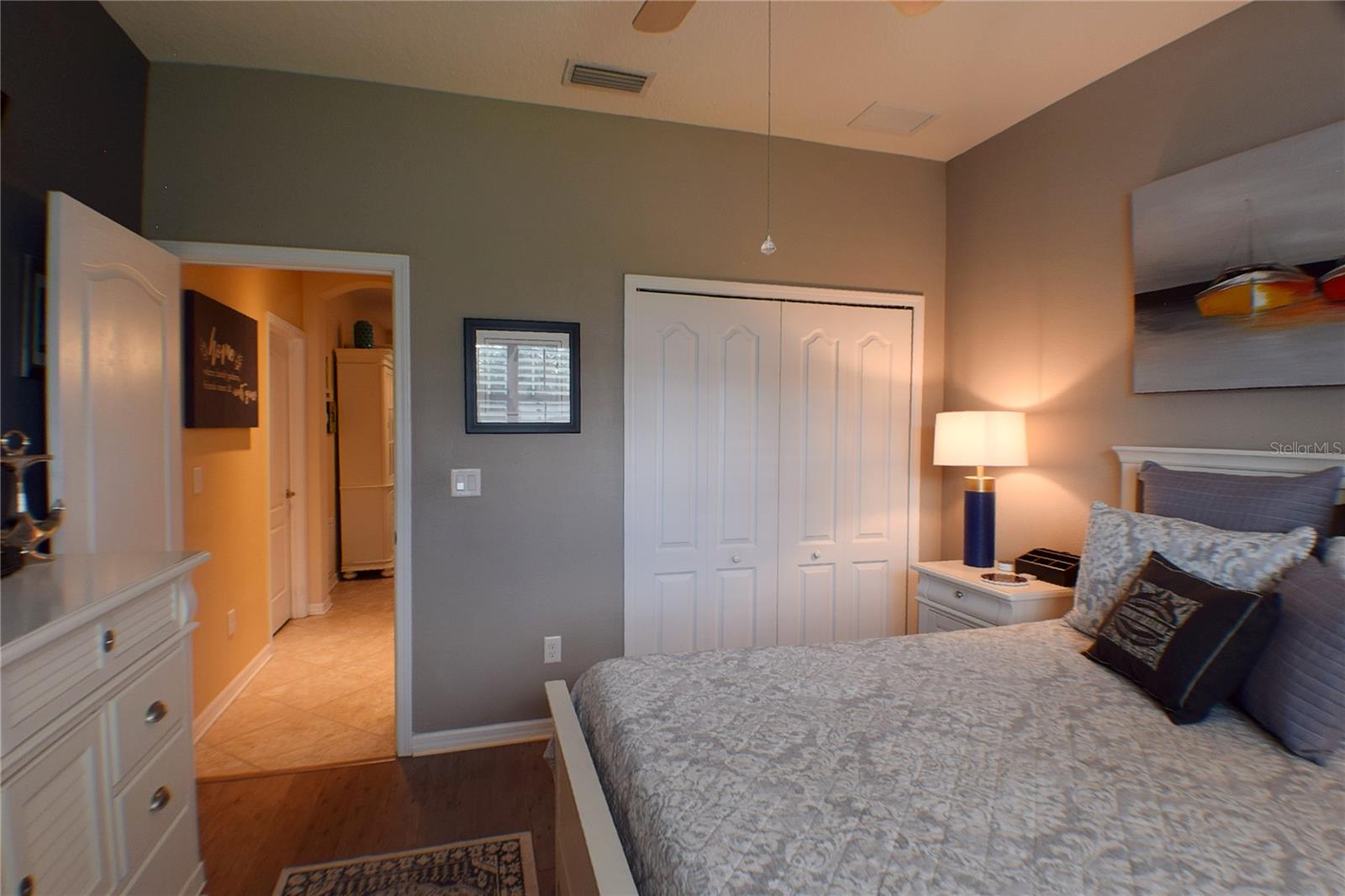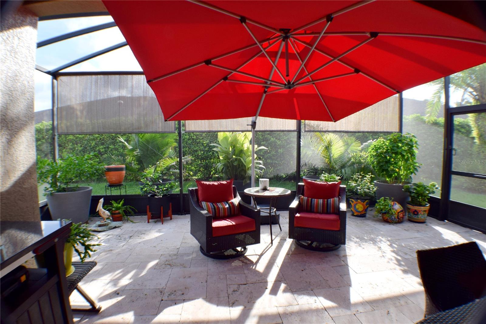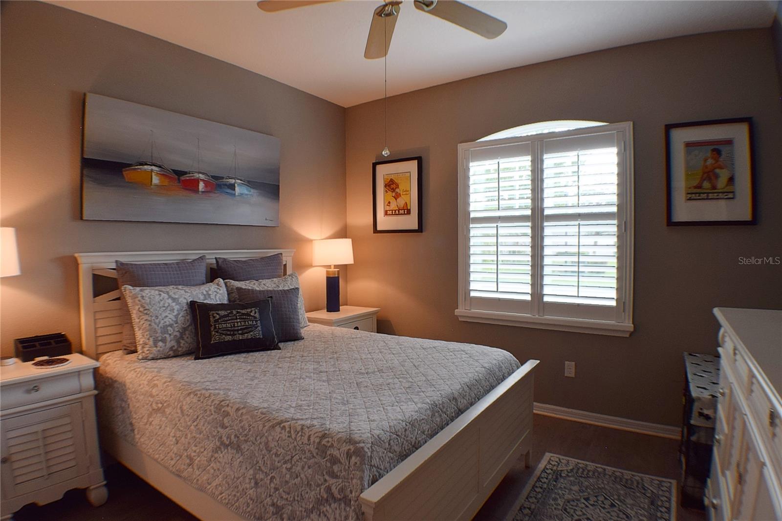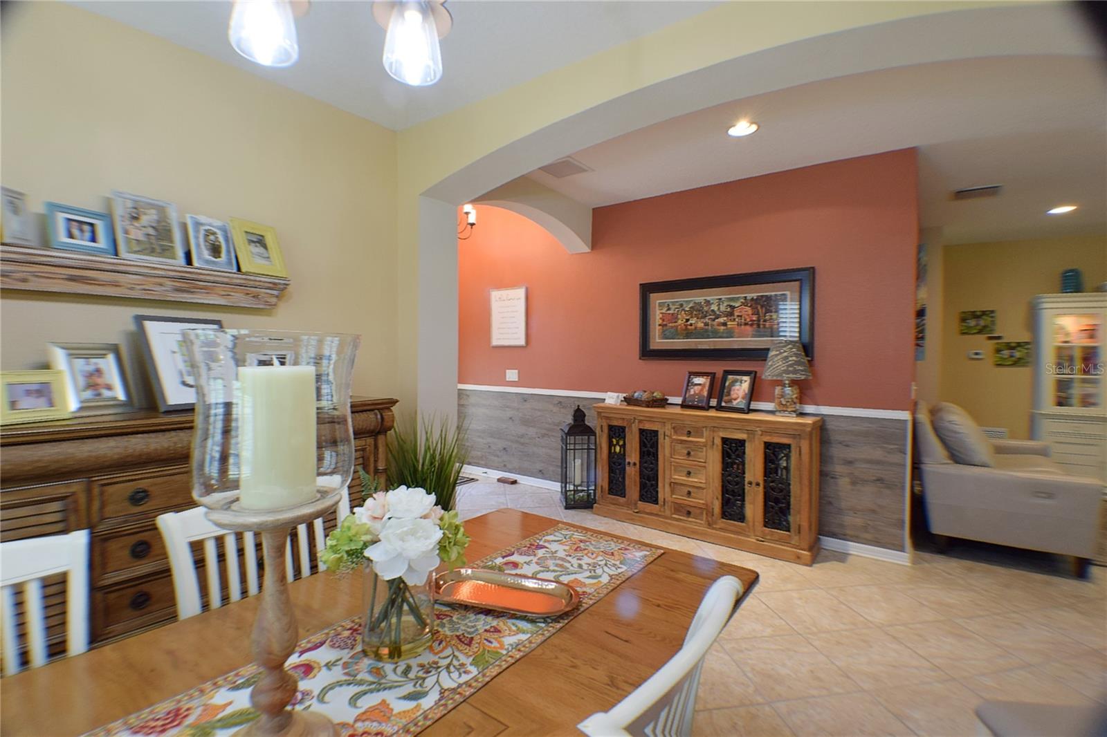 Greeted with a decorative driveway and walkway leading to the leaded glass front door, step inside this Beautiful home to the tall foyer. Look past the bedroom count, this home has 2 Bedrooms, a Den, and a formal dining room that could be utilized in a variety of ways. Tile floors installed on a diagonal pattern and plantation shutters on all windows add character to the home. The kitchen is a must-see, with an island that is nearly a 5 x 8 foot single slab quartz countertop, beautiful cabinetry, and upgraded stainless steel appliances. The kitchen is truly a great place for guests to gather as it is a focal point of the home with openness to the dinette and living room. The expanded screen lanai with travertine tile floors adorned with three stately planters offers a quiet relaxation area or additional space for entertaining guests. A four foot extension makes not only the common space larger, but the primary bedroom becomes a spacious room with a walk in closet, a built in desk/shelf, and beautiful hardwood floors. Primary ensuite offers a dual sink quartz countertop, tiled wall-in shower, and generous linen closet. Small details like the accent wall leading to the guest bedroom and bath makes this home extra special. Guest bath has a walk-in tile shower with glass doors. Oversized garage has additional storage area or space for 2 cars and a tandem parked golf cart. Garage features built in storage racks, tool organizers, and a sliding screen. Well maintained home also has a freshly painted exterior. Located in the gated, 55+ Community of Tampa Bay Golf and Country Club. HOA fees include lawn care, Cable, Internet, and a long list of amenities. Community features tennis/pickleball courts, fitness center, swimming pools, and three clubhouses. Come see why this home should be your own!