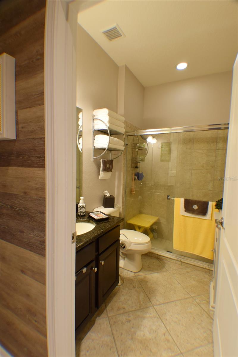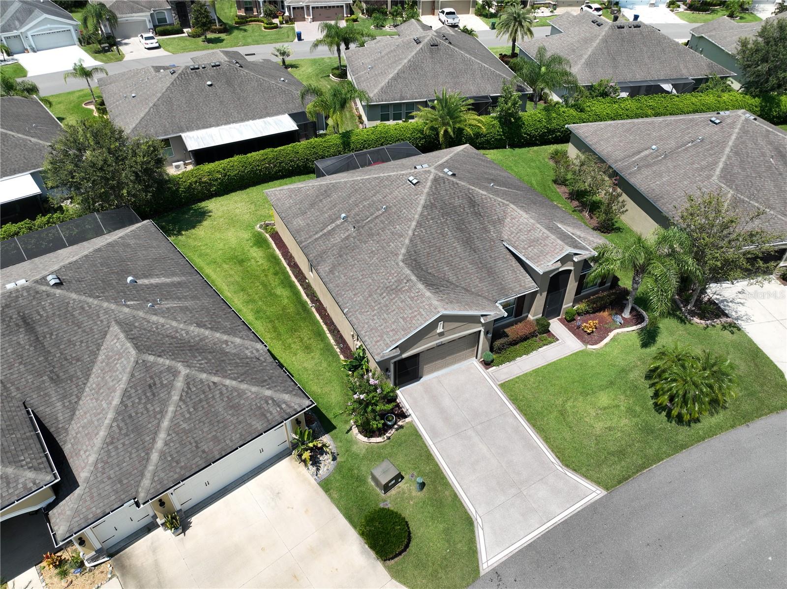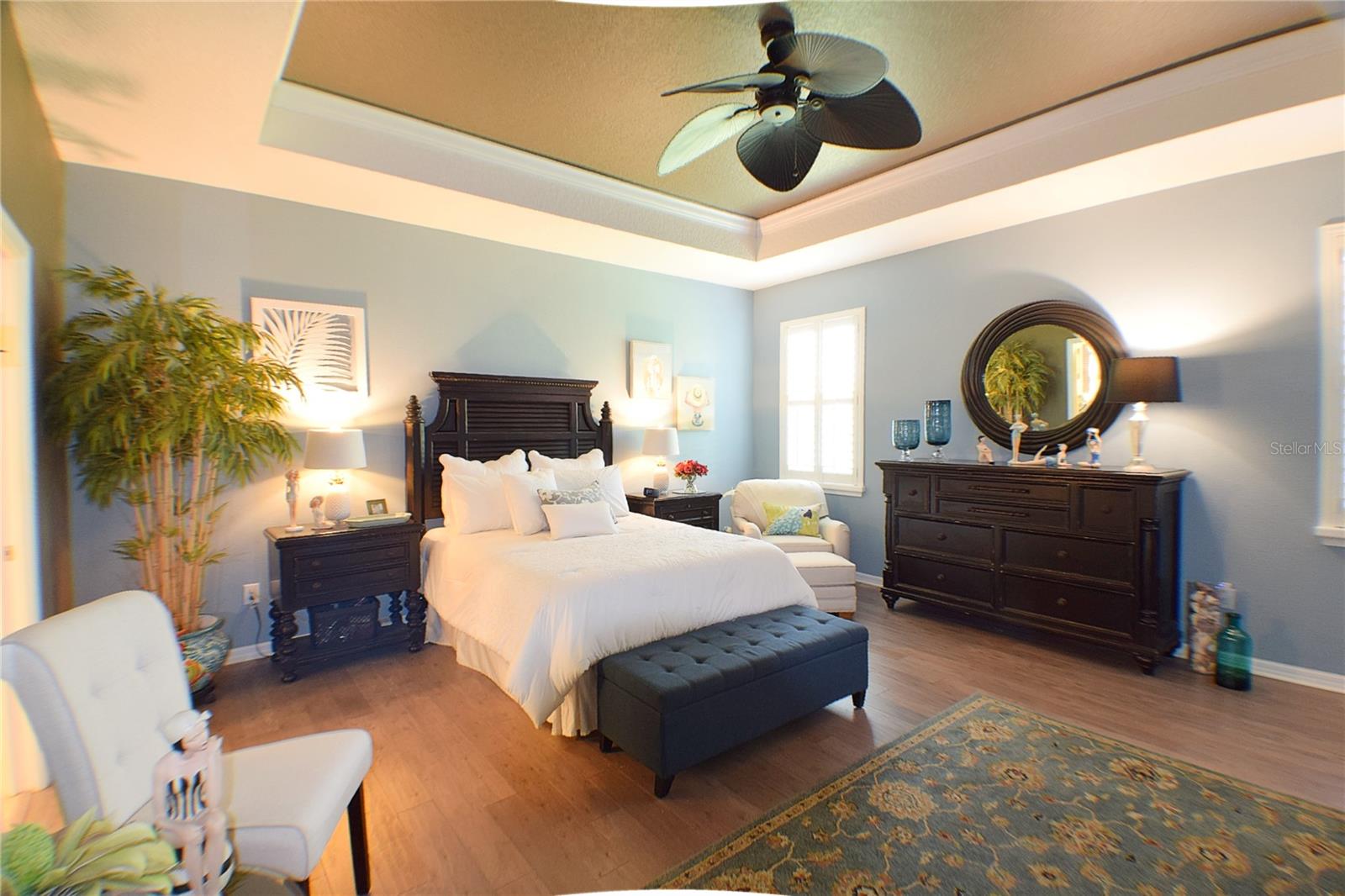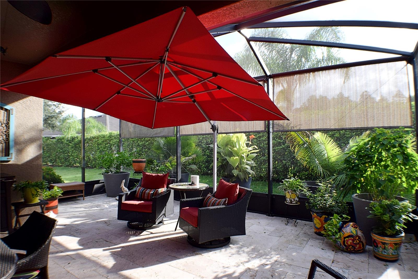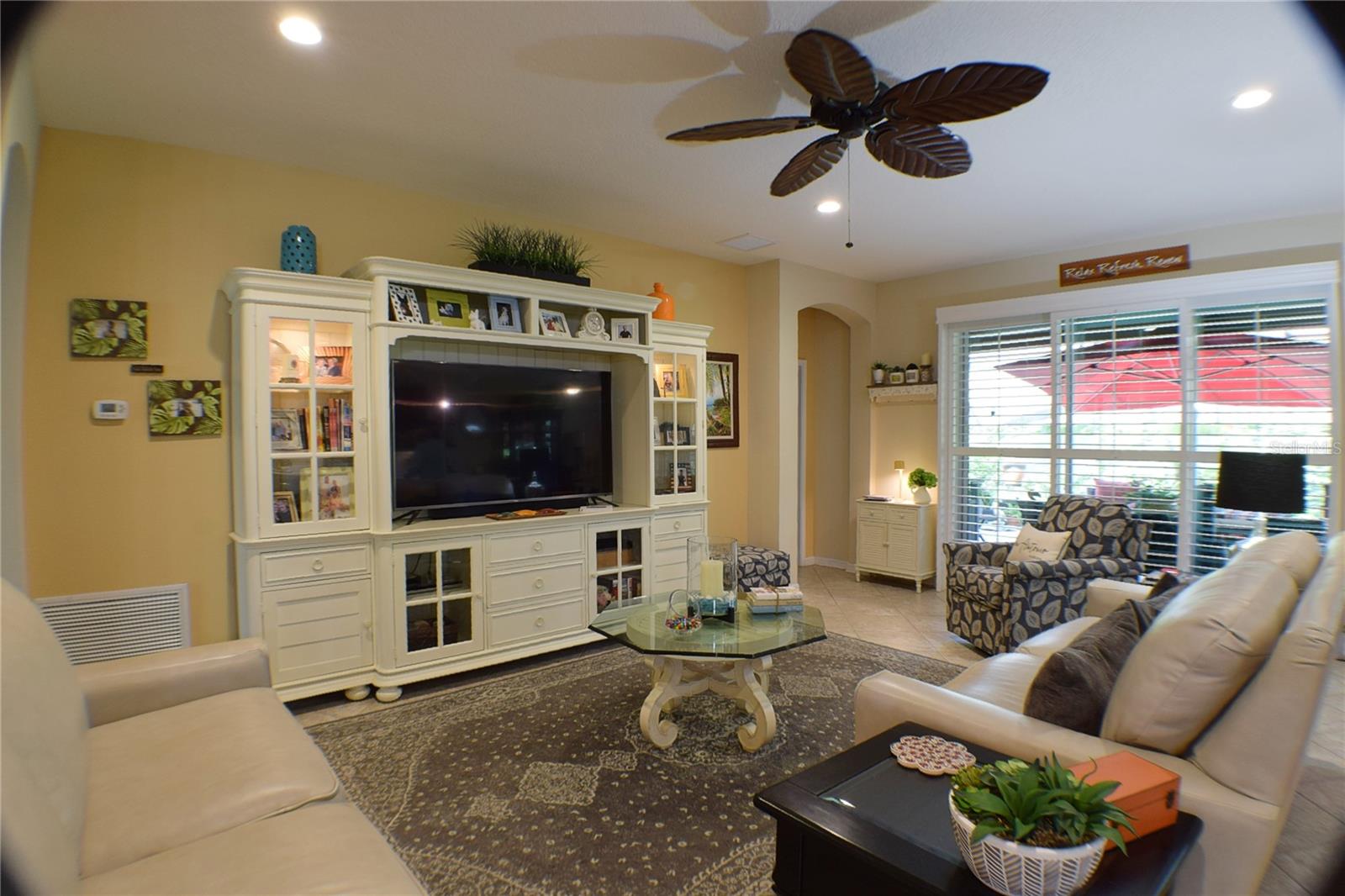 Greeted with a decorative driveway and walkway leading to the leaded glass front door, step inside this Beautiful home to the tall foyer. Look past the bedroom count, this home has 2 Bedrooms, a Den, and a formal dining room that could be utilized in a variety of ways. Tile floors installed on a diagonal pattern and plantation shutters on all windows add character to the home. The kitchen is a must-see, with an island that is nearly a 5 x 8 foot single slab quartz countertop, beautiful cabinetry, and upgraded stainless steel appliances. The kitchen is truly a great place for guests to gather as it is a focal point of the home with openness to the dinette and living room. The expanded screen lanai with travertine tile floors adorned with three stately planters offers a quiet relaxation area or additional space for entertaining guests. A four foot extension makes not only the common space larger, but the primary bedroom becomes a spacious room with a walk in closet, a built in desk/shelf, and beautiful hardwood floors. Primary ensuite offers a dual sink quartz countertop, tiled wall-in shower, and generous linen closet. Small details like the accent wall leading to the guest bedroom and bath makes this home extra special. Guest bath has a walk-in tile shower with glass doors. Oversized garage has additional storage area or space for 2 cars and a tandem parked golf cart. Garage features built in storage racks, tool organizers, and a sliding screen. Well maintained home also has a freshly painted exterior. Located in the gated, 55+ Community of Tampa Bay Golf and Country Club. HOA fees include lawn care, Cable, Internet, and a long list of amenities. Community features tennis/pickleball courts, fitness center, swimming pools, and three clubhouses. Come see why this home should be your own!