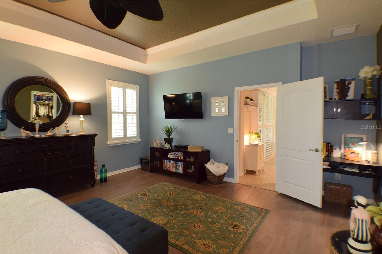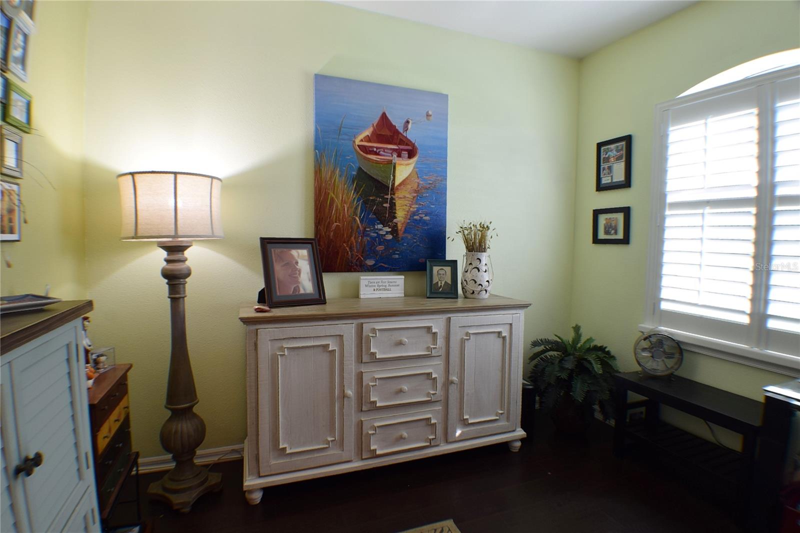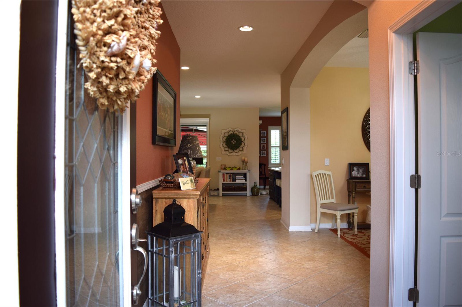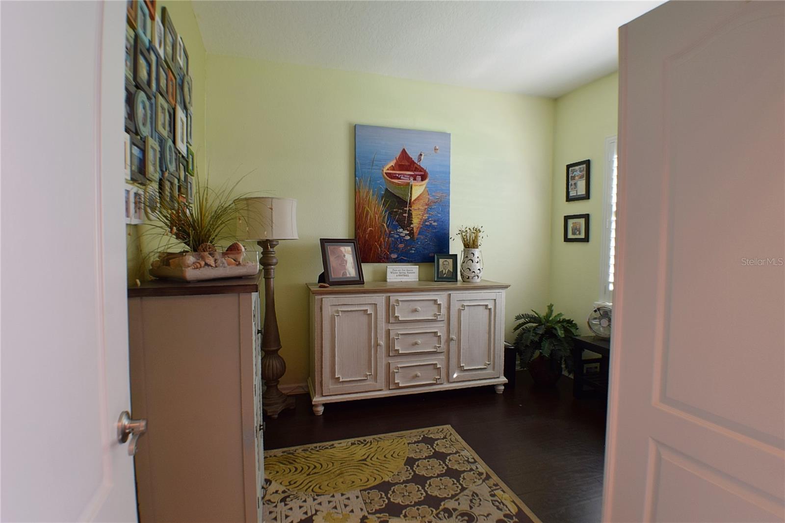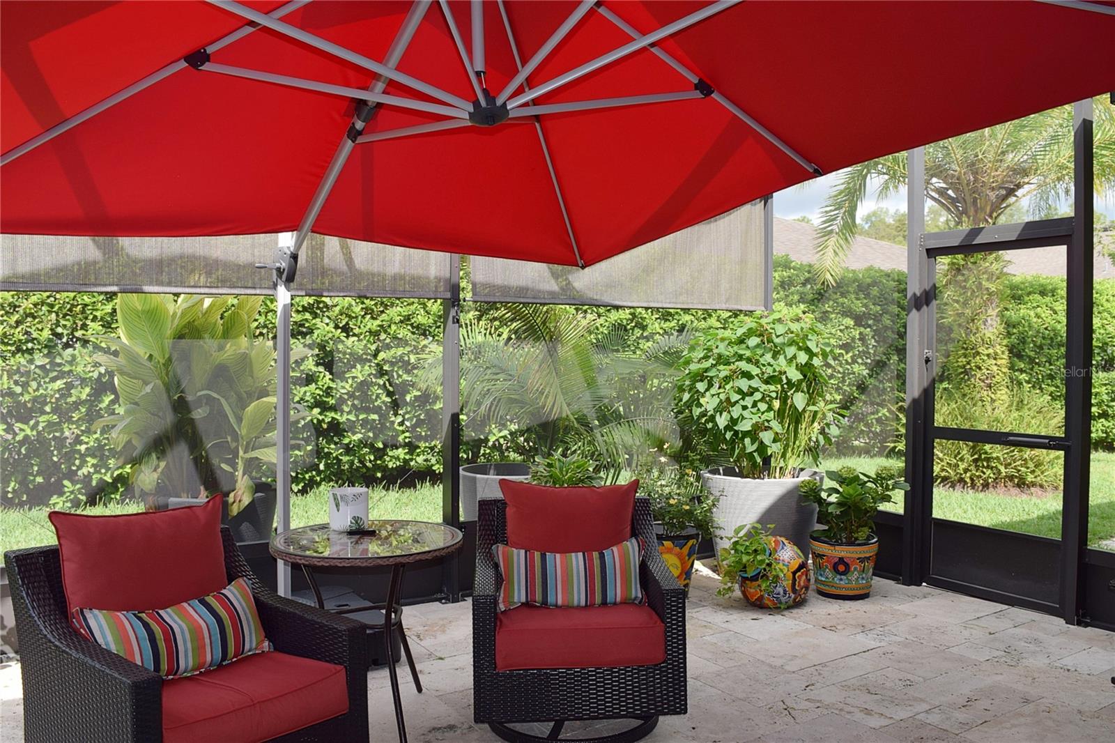 Greeted with a decorative driveway and walkway leading to the leaded glass front door, step inside this Beautiful home to the tall foyer. Look past the bedroom count, this home has 2 Bedrooms, a Den, and a formal dining room that could be utilized in a variety of ways. Tile floors installed on a diagonal pattern and plantation shutters on all windows add character to the home. The kitchen is a must-see, with an island that is nearly a 5 x 8 foot single slab quartz countertop, beautiful cabinetry, and upgraded stainless steel appliances. The kitchen is truly a great place for guests to gather as it is a focal point of the home with openness to the dinette and living room. The expanded screen lanai with travertine tile floors adorned with three stately planters offers a quiet relaxation area or additional space for entertaining guests. A four foot extension makes not only the common space larger, but the primary bedroom becomes a spacious room with a walk in closet, a built in desk/shelf, and beautiful hardwood floors. Primary ensuite offers a dual sink quartz countertop, tiled wall-in shower, and generous linen closet. Small details like the accent wall leading to the guest bedroom and bath makes this home extra special. Guest bath has a walk-in tile shower with glass doors. Oversized garage has additional storage area or space for 2 cars and a tandem parked golf cart. Garage features built in storage racks, tool organizers, and a sliding screen. Well maintained home also has a freshly painted exterior. Located in the gated, 55+ Community of Tampa Bay Golf and Country Club. HOA fees include lawn care, Cable, Internet, and a long list of amenities. Community features tennis/pickleball courts, fitness center, swimming pools, and three clubhouses. Come see why this home should be your own!