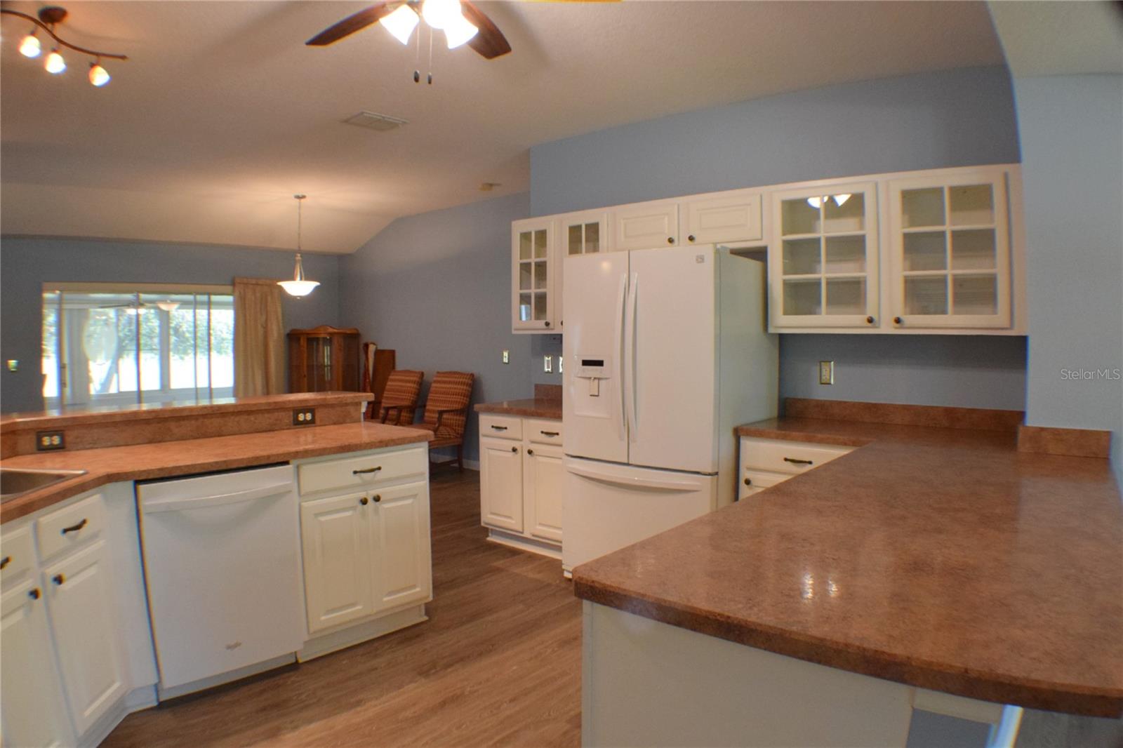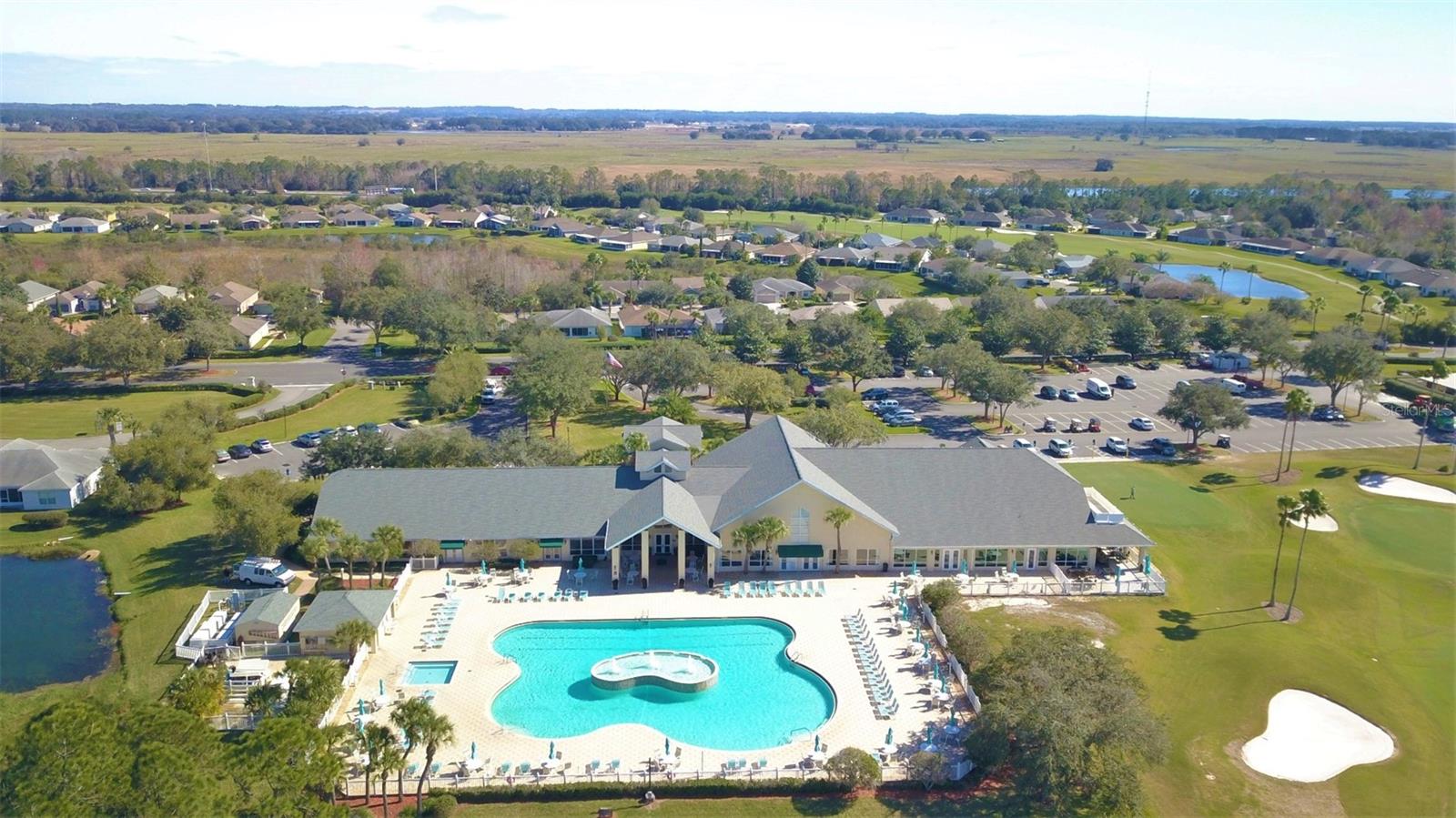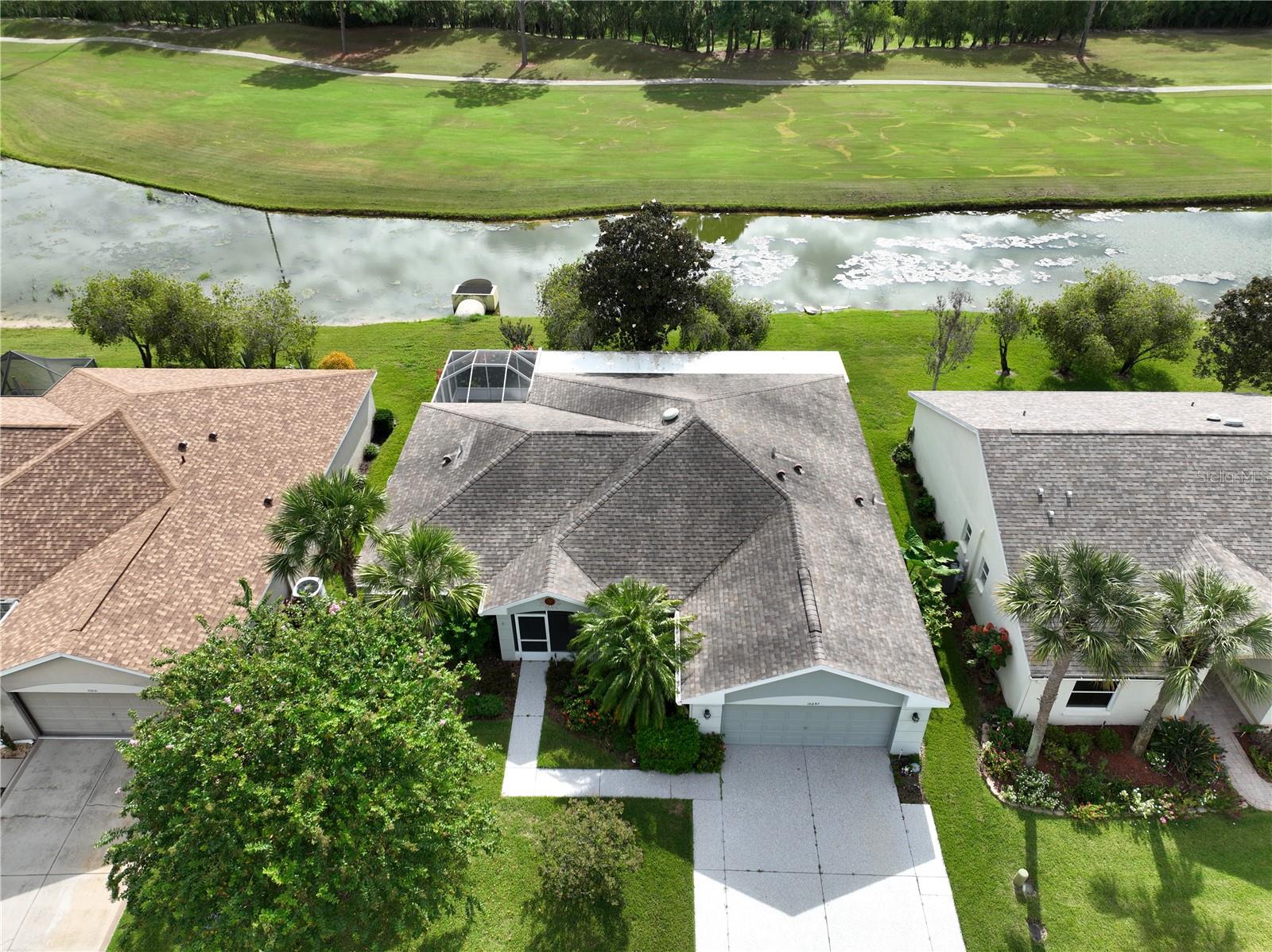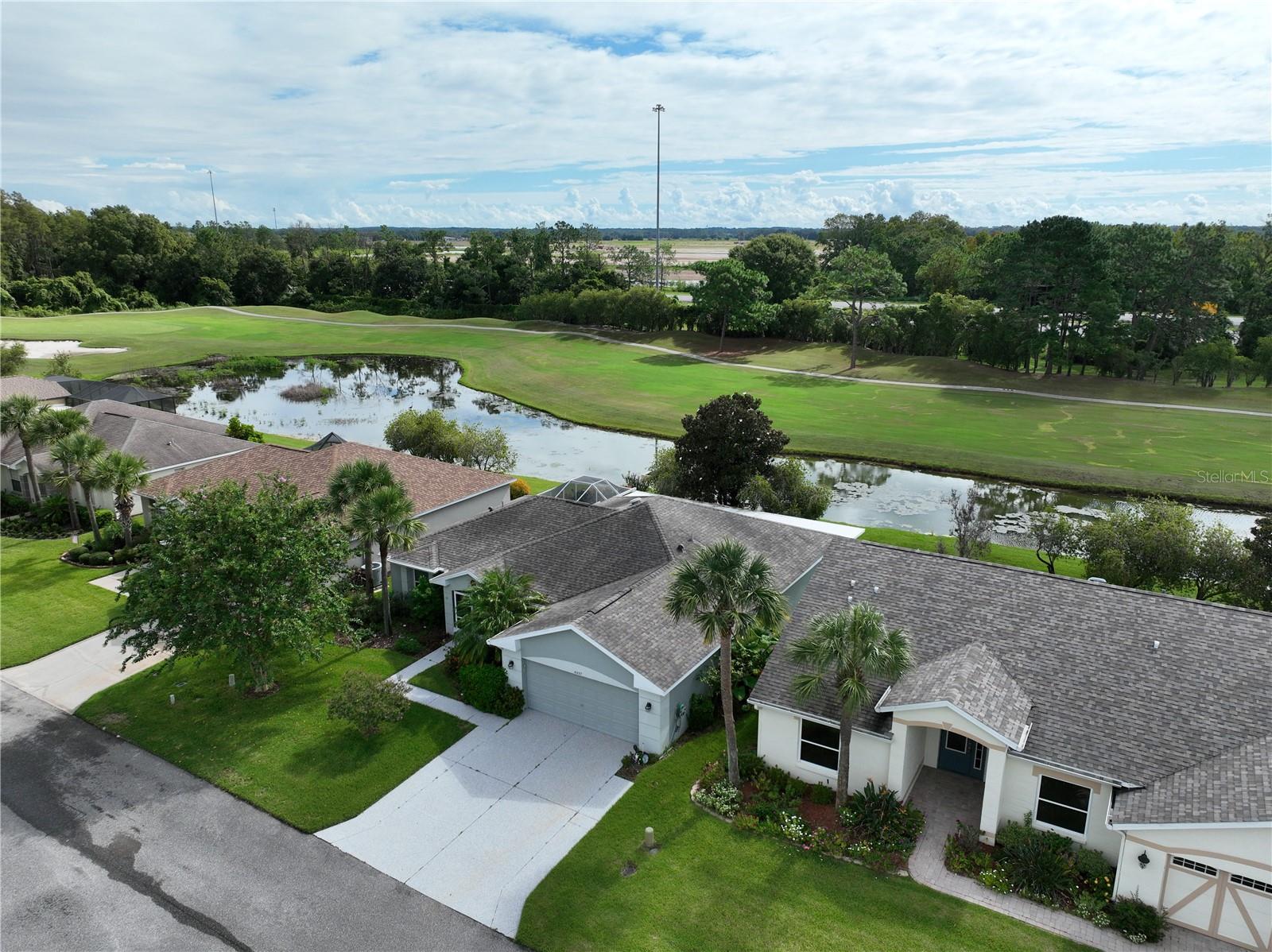 Located in the desirable Tampa Bay Golf & Country Club community, this 3-bedroom, 2-bath home offers a stunning view of the golf course across the pond. The open kitchen is filled with natural light, providing ample counter space and abundant cabinets. This popular floorplan features split bedrooms separated by a spacious living and dining room combo, with two triple-door sliders that lead to the air-conditioned lanai, adding 500 sq. ft. of living space and a large birdcage screened area with views of the golf course. The home includes newer windows (installed in 2016), a roof replaced in 2013, and easy-to-maintain laminate and tile flooring throughout. The primary suite includes a walk-in shower and a handicap-accessible walk-in tub, along with a dual-sink vanity and two large closets. The bedroom features a tray ceiling and a sliding glass door to the lanai. HOA fees cover cable, internet, and lawn care. The community offers a wide range of amenities, including a championship golf course, executive course, restaurant and pub, tennis and pickleball courts, bocce, shuffleboard, billiards, swimming pools, and a fitness center. Experience why this 55+ community keeps residents young at heart!