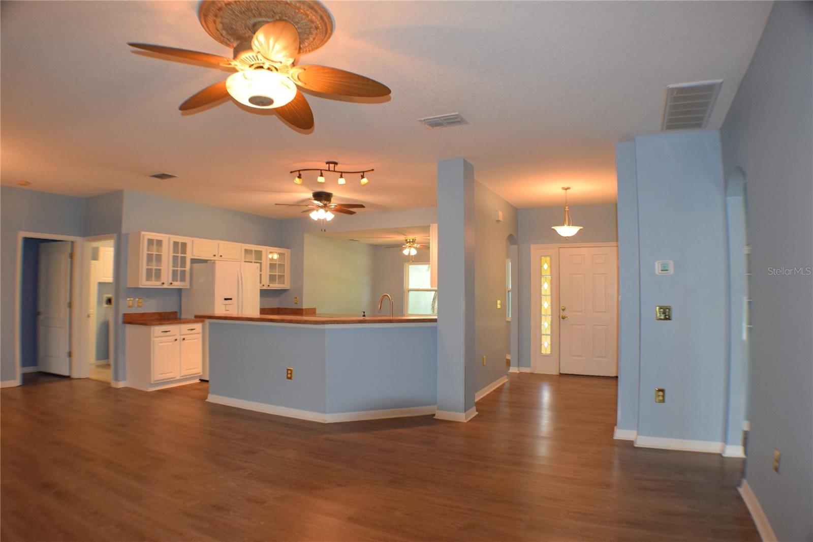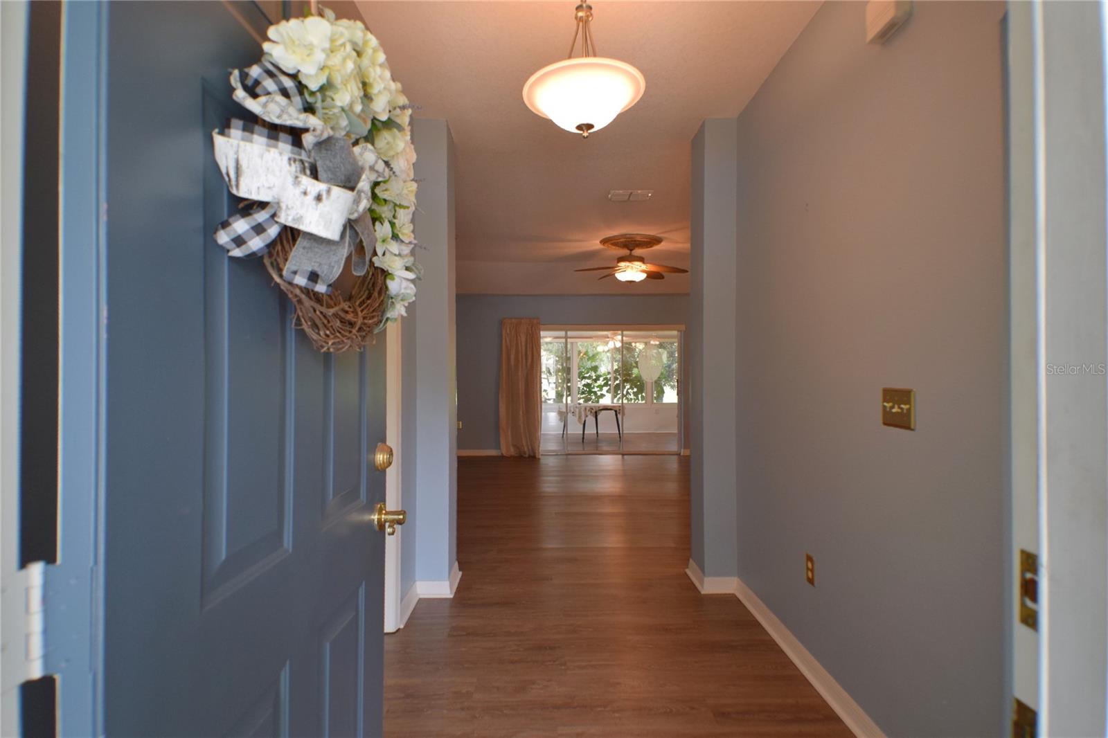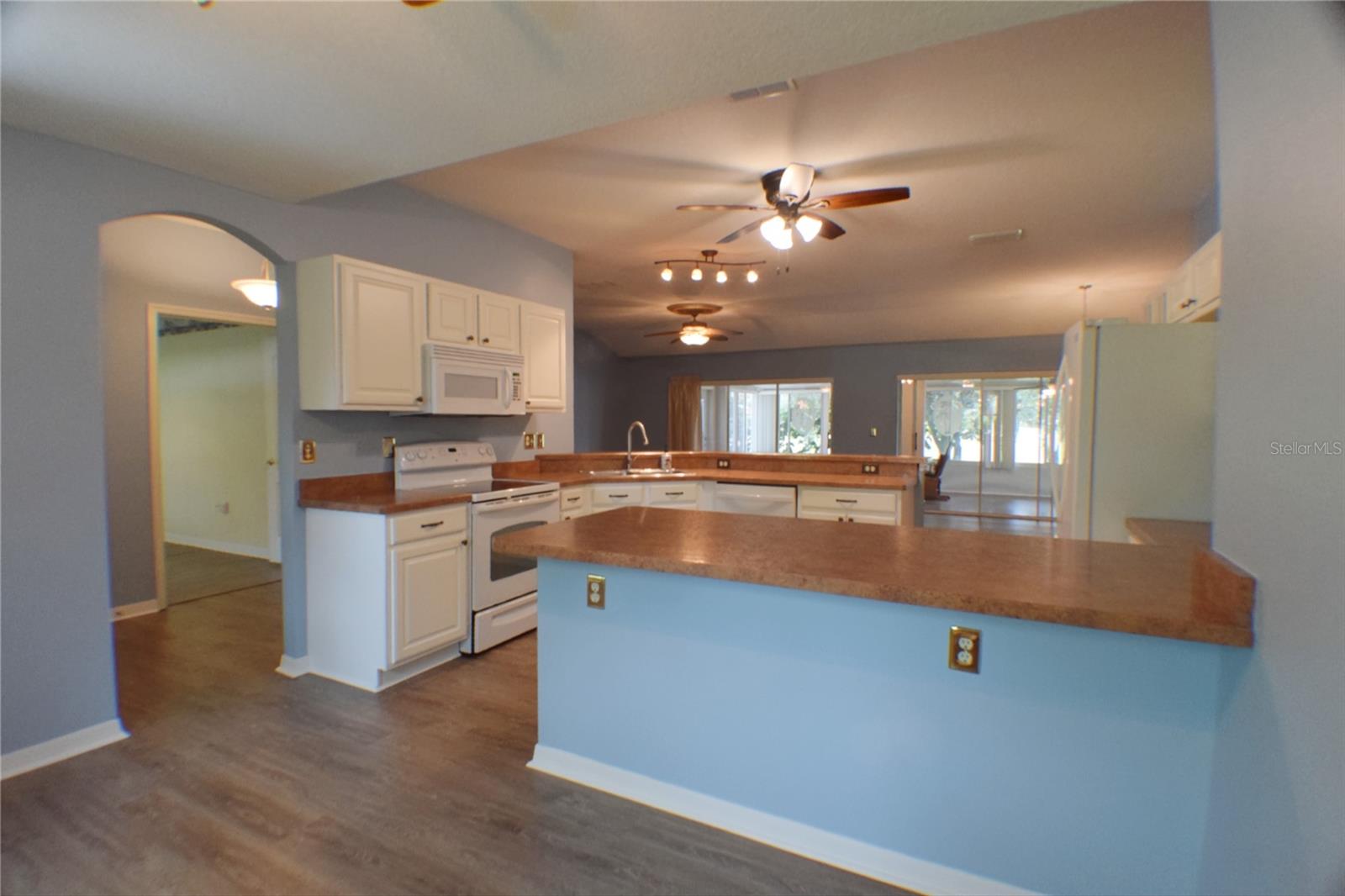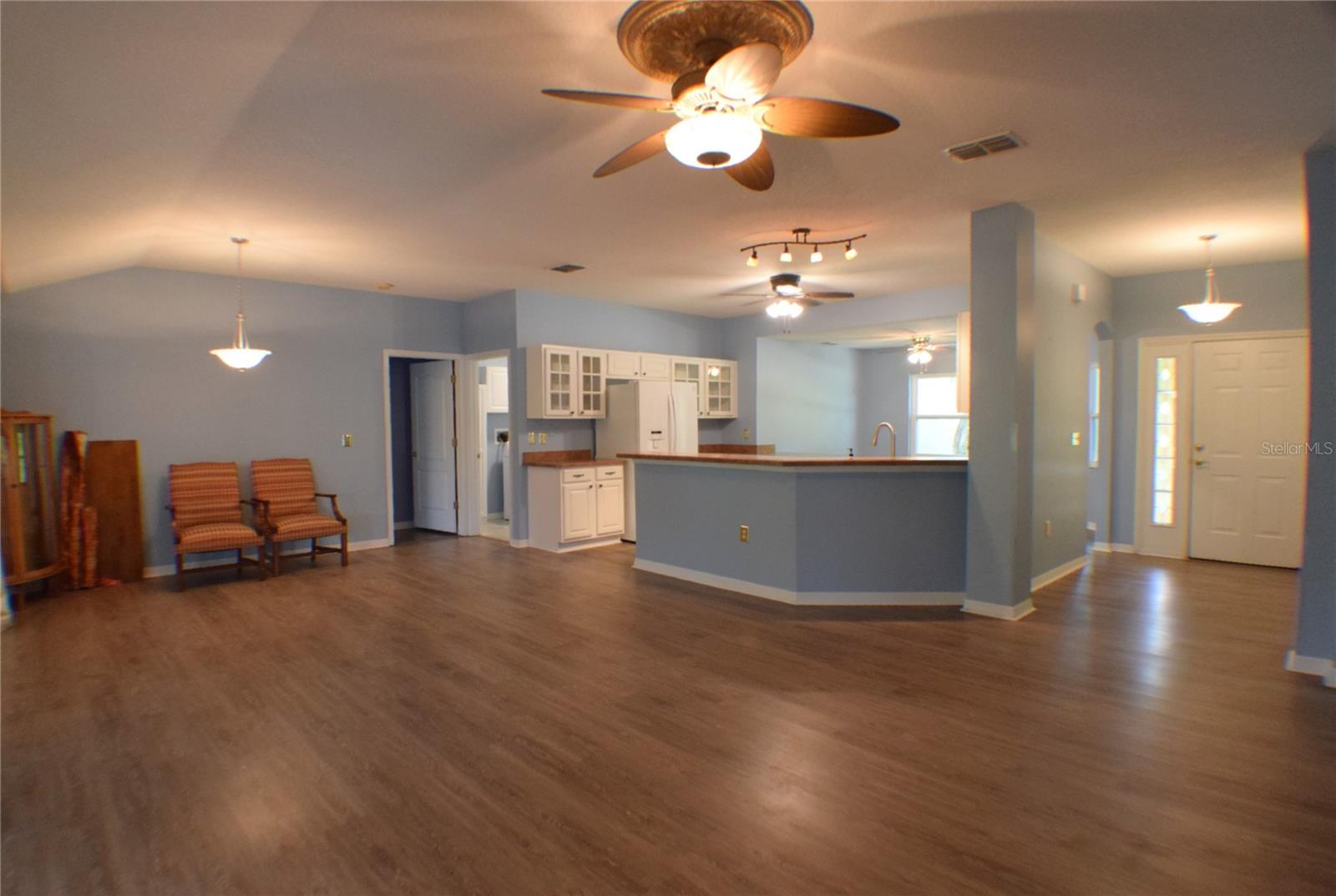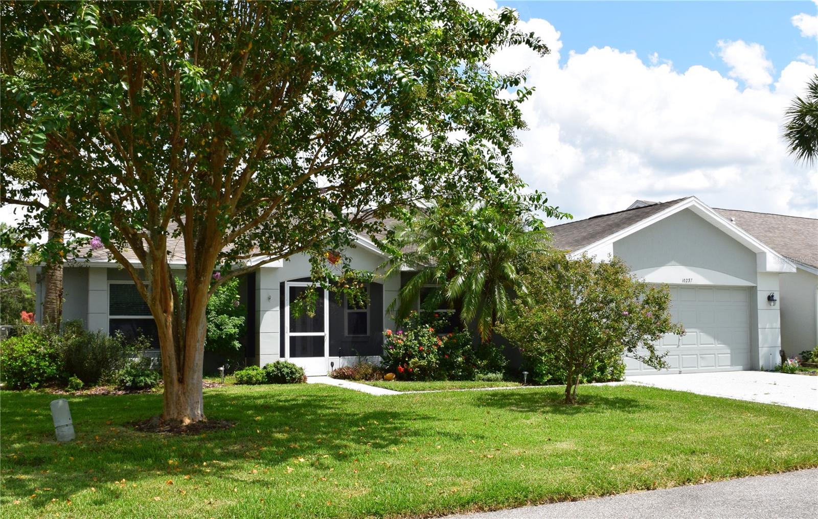 Located in the desirable Tampa Bay Golf & Country Club community, this 3-bedroom, 2-bath home offers a stunning view of the golf course across the pond. The open kitchen is filled with natural light, providing ample counter space and abundant cabinets. This popular floorplan features split bedrooms separated by a spacious living and dining room combo, with two triple-door sliders that lead to the air-conditioned lanai, adding 500 sq. ft. of living space and a large birdcage screened area with views of the golf course. The home includes newer windows (installed in 2016), a roof replaced in 2013, and easy-to-maintain laminate and tile flooring throughout. The primary suite includes a walk-in shower and a handicap-accessible walk-in tub, along with a dual-sink vanity and two large closets. The bedroom features a tray ceiling and a sliding glass door to the lanai. HOA fees cover cable, internet, and lawn care. The community offers a wide range of amenities, including a championship golf course, executive course, restaurant and pub, tennis and pickleball courts, bocce, shuffleboard, billiards, swimming pools, and a fitness center. Experience why this 55+ community keeps residents young at heart!