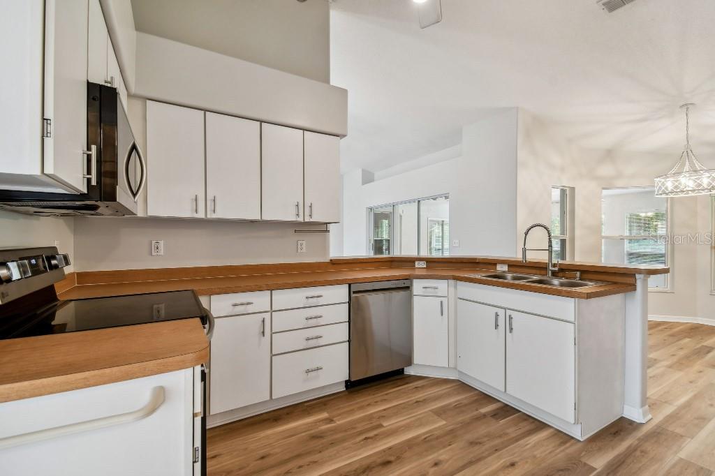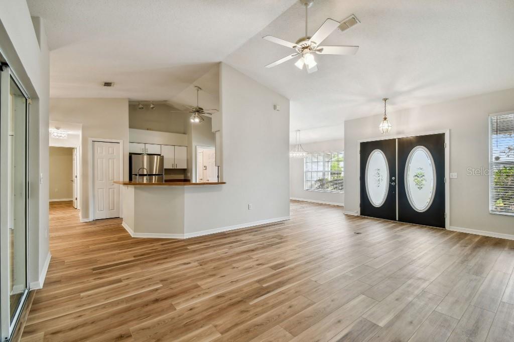 Welcome to one of the most spectacular home sites in Tampa Bay Golf and Country Club. This home features three bedrooms, two baths, two car garage plus a huge 20X21 bonus/sunroom overlooking a conservation with an open split floor plan and vaulted ceilings. It was just updated with new waterproof vinyl plank flooring throughout, new interior and exterior paint, new appliances, 2016 roof, 2023 HVAC system, wifi thermostat, video doorbell, and more. Offering a spacious master suite including a walk in closet with dual shower and double sinks. The bonus room is lined with windows overlooking a preserve where deer enjoy to roam. There are also two separate screened in porches. Tampa Bay is a 55 plus premiere gated resort style community with a 15,000 square foot clubhouse that was recently renovated and features two pools, two champion golf courses with 27 holes, tennis courts, dog parks, a fitness center, ballroom, shuffleboard, billiards, card room, library, and a restaurant with a bar and grille. In addition, a monthly calendar with planned activities such as card games, dance and painting lessons, travel excursions, and more. Conveniently located off I75 & 52. Minutes to shopping, restaurants, outlet mall, hospitals, and beaches. Don't miss out on this incredible home! Move in ready and priced below the appraisal!