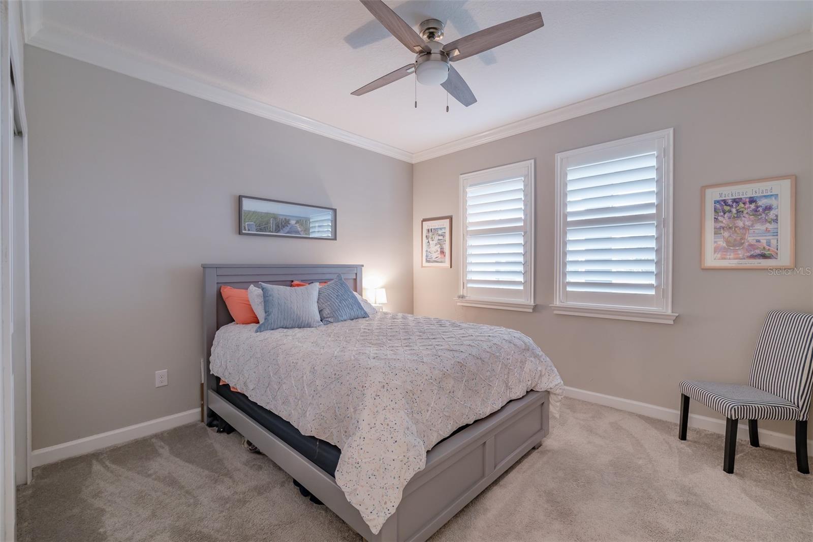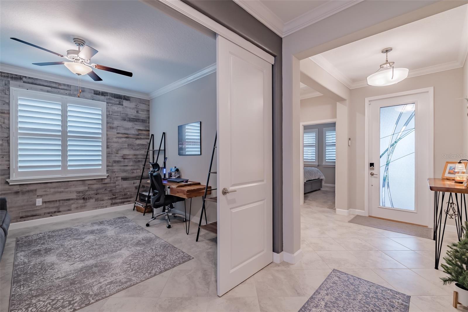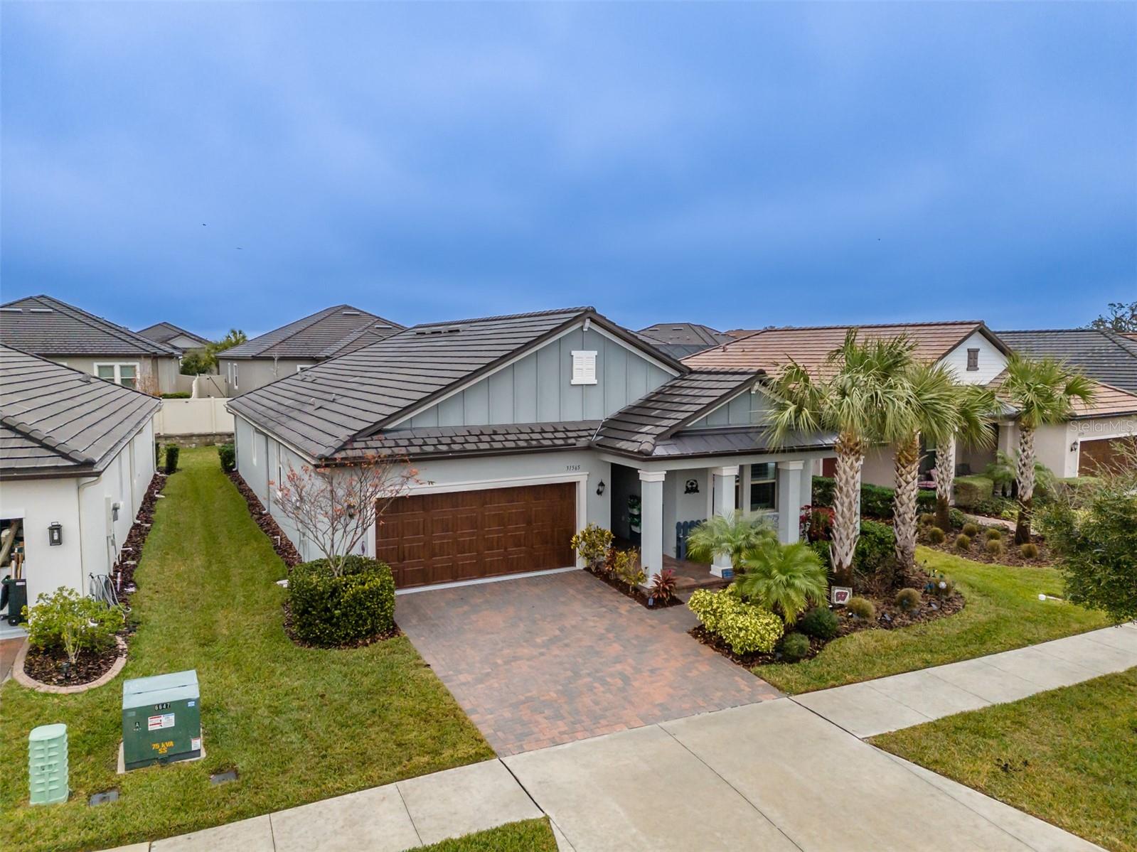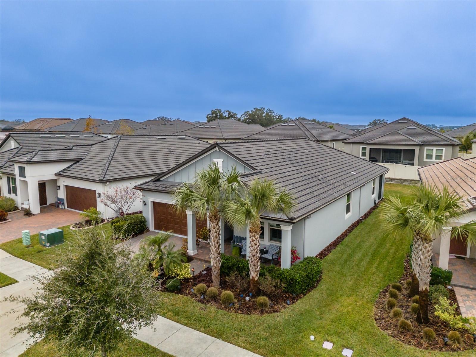 Price Improvement !! Why wait to build? This 1968sq ft, 2021 built 1 story, Sunburst II model located in the 55+, Medley At Mirada community, offers high ceilings with crown molding and Plantation shutters throughout. An open concept Kitchen, dining room and Living room that overlooks the tiled Lanai. A covered Front porch with water views to enjoy the Florida lifestyle. Lots of room for entertaining or just relaxing. Along with two spacious bedrooms and 2 Full Bathrooms. The Owners Suite with an ensuite bathroom featuring double sinks, a private water closet and a large walk-in closet. The Den is equipped with a ship lapped planked accent wall along with doors for privacy. A 2-car garage that has extra overhead storage rack. The home features granite counter tops and ceramic tile flooring and carpet in the Bedrooms. Bedrooms, Family Room, and Lanai have ceiling fans. High speed fiber optic internet (ULTRAFI) & Spectrum premium cable TV is included in the HOA fee. Gutters and Water Softener already installed. Residents of Medley At Mirada have access to the resort style heated pool and amenity center equipped with café & bar, billiards room, card room, ballroom,24 hr. fitness center, Sports courts featuring, tennis, pickleball, shuffleboard & bocce ball along with a tot lot and dog park. There are many clubs, activities, and events for fun and enjoyment. In the heart of Mirada is the 15-acre Crystal Lagoon. The largest Lagoon in the nation. Enjoy the pristine crystal blue water with a swim up bar, sandy beaches, cabanas, water slide, water splash zone, kayaking, water obstacle course, minus sharks and red tide. The Lagoon offers numerous activities and entertainment for year-round enjoyment. This golf cart inspired community has a Publix shopping center at its entrance and is near Dade City, Wire Grass and Tampa Premium outlet malls, The Grove, Golf courses, BayCare & Advent Hospitals, with close proximity and easy access to Interstate 75. CDD is already included in Tax Amount.