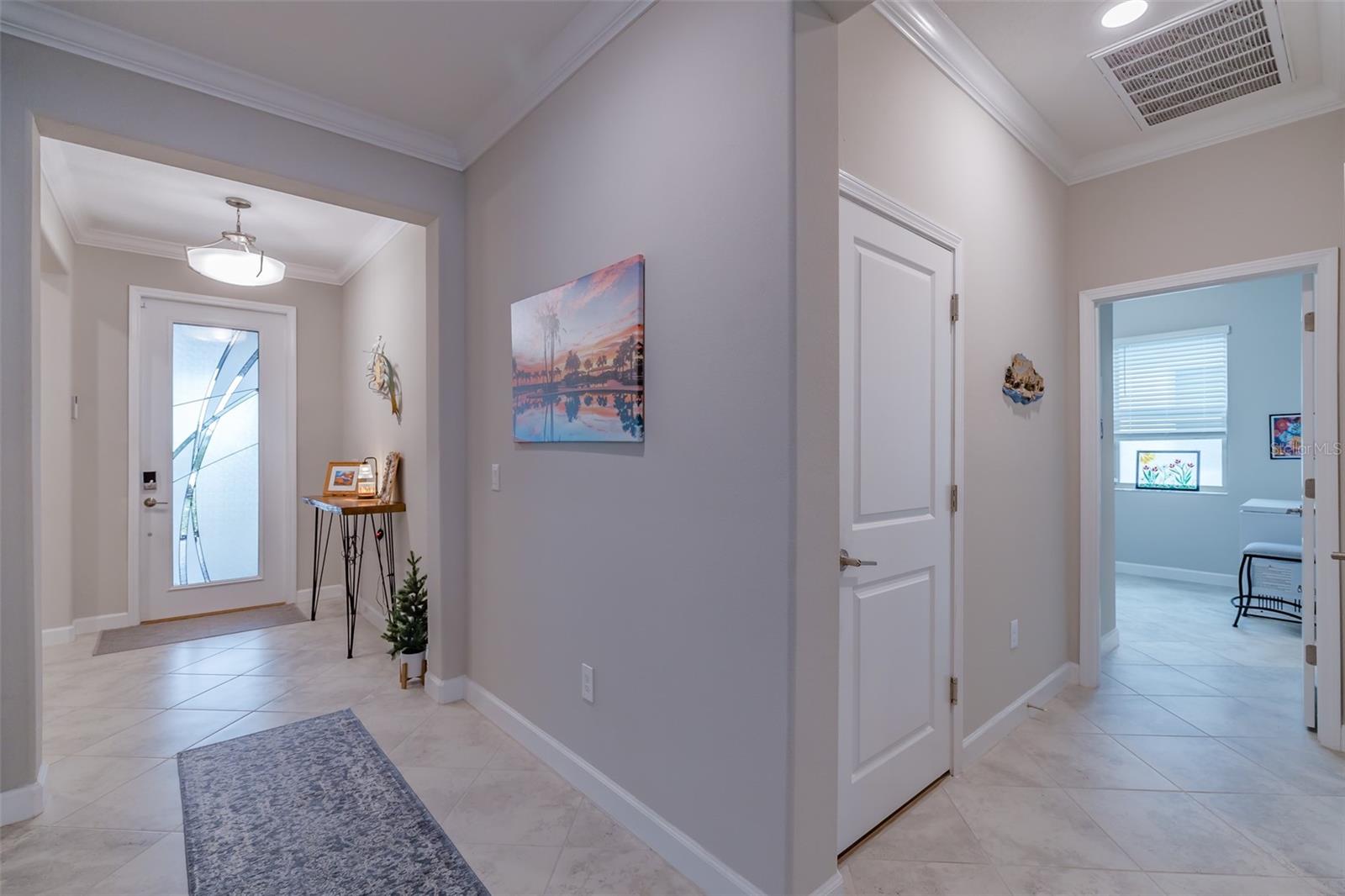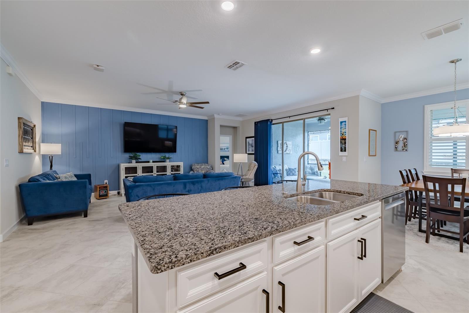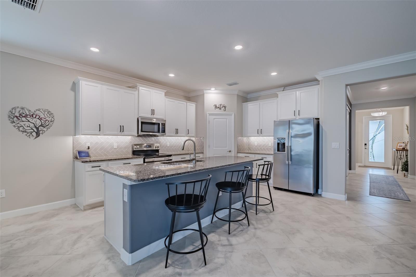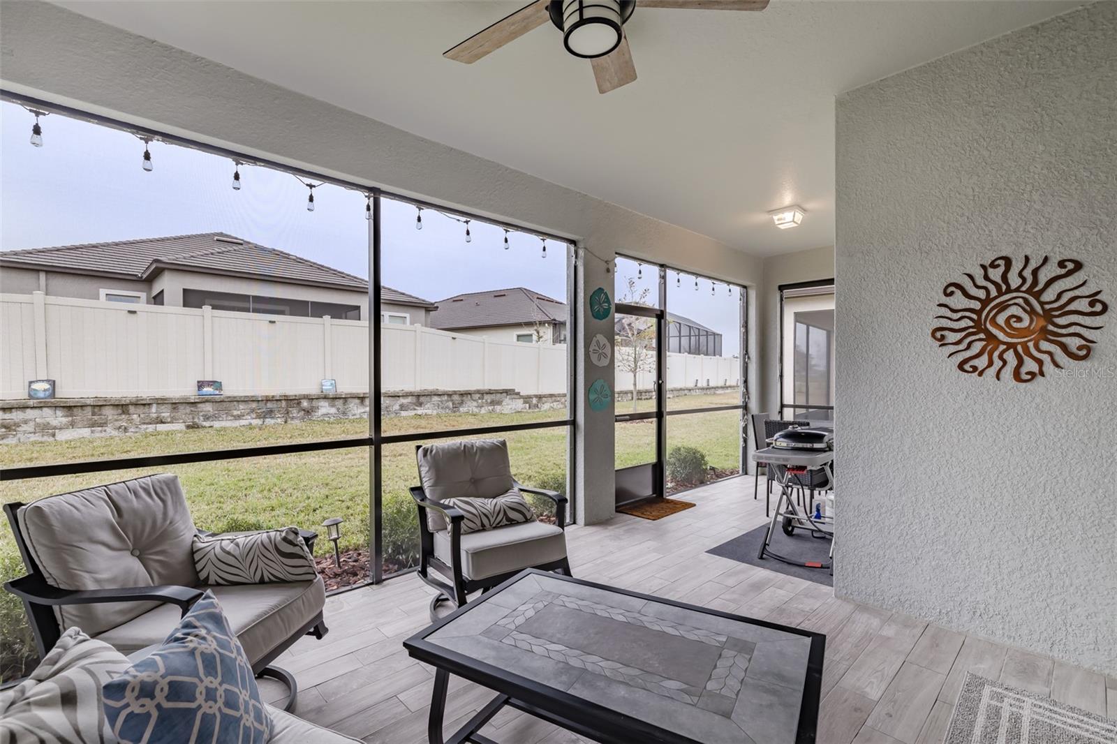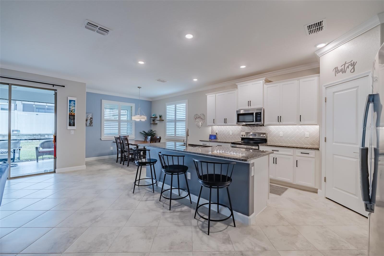 Price Improvement !! Why wait to build? This 1968sq ft, 2021 built 1 story, Sunburst II model located in the 55+, Medley At Mirada community, offers high ceilings with crown molding and Plantation shutters throughout. An open concept Kitchen, dining room and Living room that overlooks the tiled Lanai. A covered Front porch with water views to enjoy the Florida lifestyle. Lots of room for entertaining or just relaxing. Along with two spacious bedrooms and 2 Full Bathrooms. The Owners Suite with an ensuite bathroom featuring double sinks, a private water closet and a large walk-in closet. The Den is equipped with a ship lapped planked accent wall along with doors for privacy. A 2-car garage that has extra overhead storage rack. The home features granite counter tops and ceramic tile flooring and carpet in the Bedrooms. Bedrooms, Family Room, and Lanai have ceiling fans. High speed fiber optic internet (ULTRAFI) & Spectrum premium cable TV is included in the HOA fee. Gutters and Water Softener already installed. Residents of Medley At Mirada have access to the resort style heated pool and amenity center equipped with café & bar, billiards room, card room, ballroom,24 hr. fitness center, Sports courts featuring, tennis, pickleball, shuffleboard & bocce ball along with a tot lot and dog park. There are many clubs, activities, and events for fun and enjoyment. In the heart of Mirada is the 15-acre Crystal Lagoon. The largest Lagoon in the nation. Enjoy the pristine crystal blue water with a swim up bar, sandy beaches, cabanas, water slide, water splash zone, kayaking, water obstacle course, minus sharks and red tide. The Lagoon offers numerous activities and entertainment for year-round enjoyment. This golf cart inspired community has a Publix shopping center at its entrance and is near Dade City, Wire Grass and Tampa Premium outlet malls, The Grove, Golf courses, BayCare & Advent Hospitals, with close proximity and easy access to Interstate 75. CDD is already included in Tax Amount.