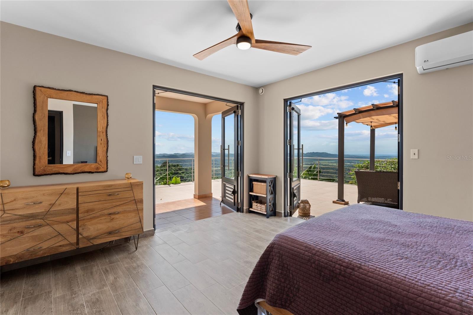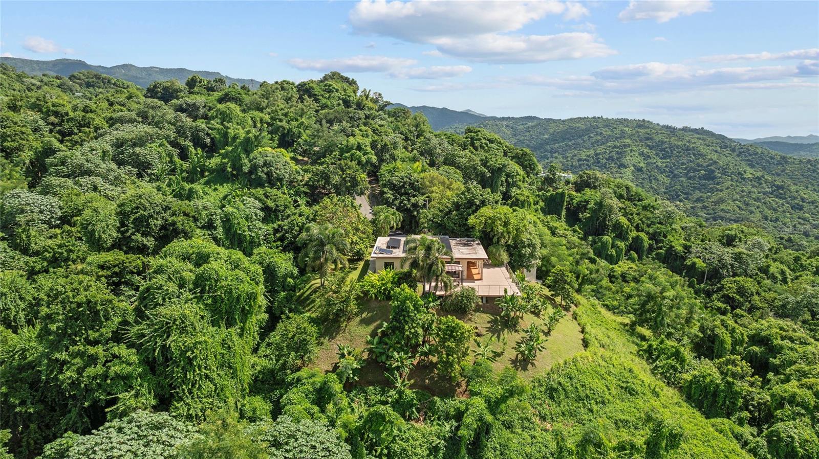 Experience ultimate privacy and tranquility in this secluded estate, quite literarily nestled within the lush landscapes of Southwestern Puerto Rico. Set on a sprawling 7.45 acre plot, this retreat offers a natural sanctuary surrounded by aromatic ylang-ylang and jasmine that fill the evening breeze. Enjoy sweeping panoramic views of the Caribbean Sea and rolling green mountains, where each sunset unfolds with breathtaking beauty over the water. Built with self-sufficiency in mind, this eco-friendly estate was initially constructed in 2006 and underwent a complete rebuild in 2018, enhancing both layout and infrastructure. The property features a robust photovoltaic solar system with a large battery bank, a community water source, rainwater collection capabilities, a substantial water storage system, and whole-house water filtration. This setup ensures energy independence and sustainability, providing a green living experience that offers both environmental conservation and financial savings. The interior design merges modern aesthetics with natural warmth, bathed in abundant natural light for a harmonious living space that mirrors the estate's serene surroundings. Indoor and outdoor spaces flow seamlessly, creating a perfect balance between intimacy and openness. Offering the rare combination of immersive nature living alongside modern comforts, the property includes fiber optic internet and proximity to essential amenities. Hospitals, shopping centers, and grocery stores are only minutes away, yet sitting on the expansive 1,200-foot terrace, surrounded by lush greenery and the melodies of birds and coquis, it’s easy to feel worlds apart. The estate is located in a region with an ideal balance of rainfall and sun, supporting a vibrant ecosystem of fruit trees and diverse wildlife—a nature lover's paradise. Situated in San Germán, in Puerto Rico’s southwestern region, the area is renowned for its pristine beauty, safety, and access to beaches, mountains, forests, and springs. It’s where locals escape to vacation.