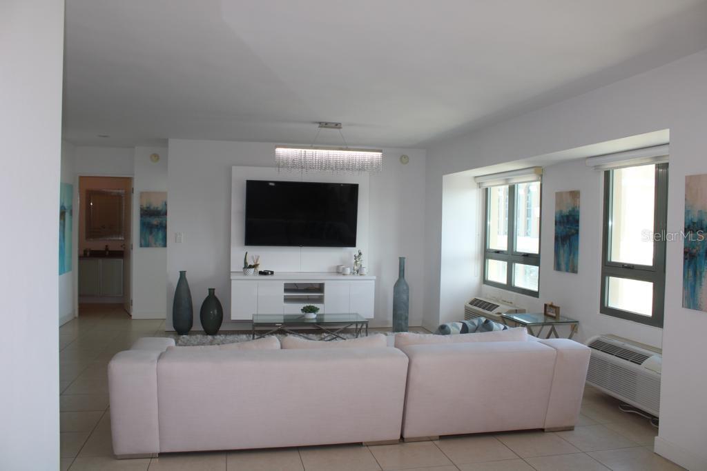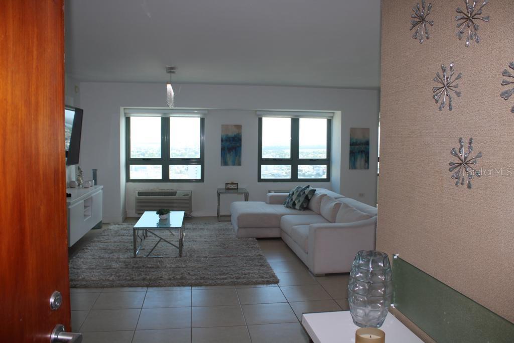 Live in one of most amazing properties in Condado. Beautiful architecture, concierge service, full power generator, 24 hr. security, the best resort style amenities including pool/jacuzzi right in the middle of the metropolitan Condado-city lifestyle. This exclusive Sub-Penthouse is the big model of 2 bedrooms, 2 baths with laundry room , bigger seating bay window feature. Looking at the ocean towards the east, on the 23rd floor with breathtaking views to Condado & Isla Verde Beach, Lagoon, city, airport, plus El Yunque Rainforest. Gather with friends at the Plaza, around the water fountain, Starbucks, Denny's or restaurants adjacent. In-building superb Fitness Center, shops, and SPA. Walking 2-3 minutes to the beach, shops, bars, boutiques and cafés. The best school district. 2 parking spaces. about 5 miles from the International airport. HOA $450; Tax $1,200 yearly. 1365 Square Feet.