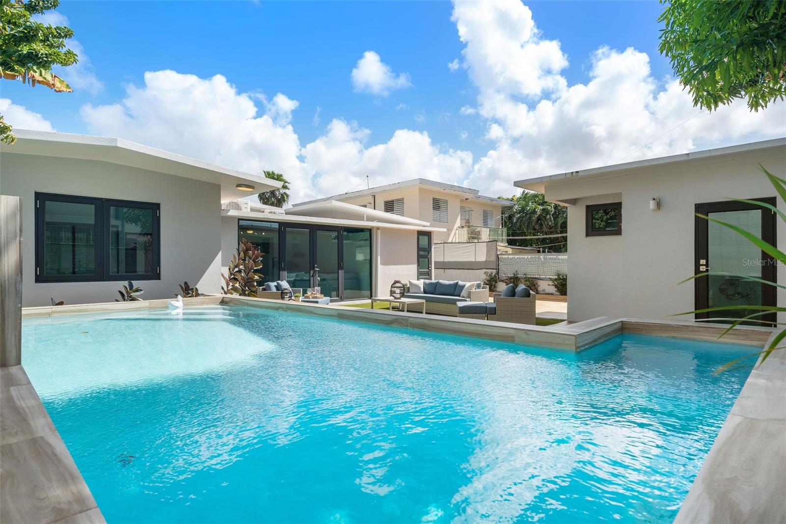 Discover this stunning 4-bedroom, 3-bathroom home offering approximately 4,200 sq. ft. of living space on a 725 sq. mt. lot. Recently remodeled, this partially furnished residence features brand-new flooring, windows, kitchen, and bathrooms, combining modern elegance with comfort. Step outside to a gorgeous patio with a pool, perfect for relaxation and entertaining. A separate 2-bedroom, 2-bath guest house by the pool provides additional space for visitors or rental income. The property also includes a driveway for up to 5 cars. Located in Punta Las Marías, a prime neighborhood between Isla Verde and Ocean Park/Condado, this home is just a short distance to the beach and 10 minutes from Condado and the airport. Its unbeatable location makes it ideal for residential living or as a high-performing investment property for short-term rentals or Airbnb. For more details or to schedule a showing, contact us today!
