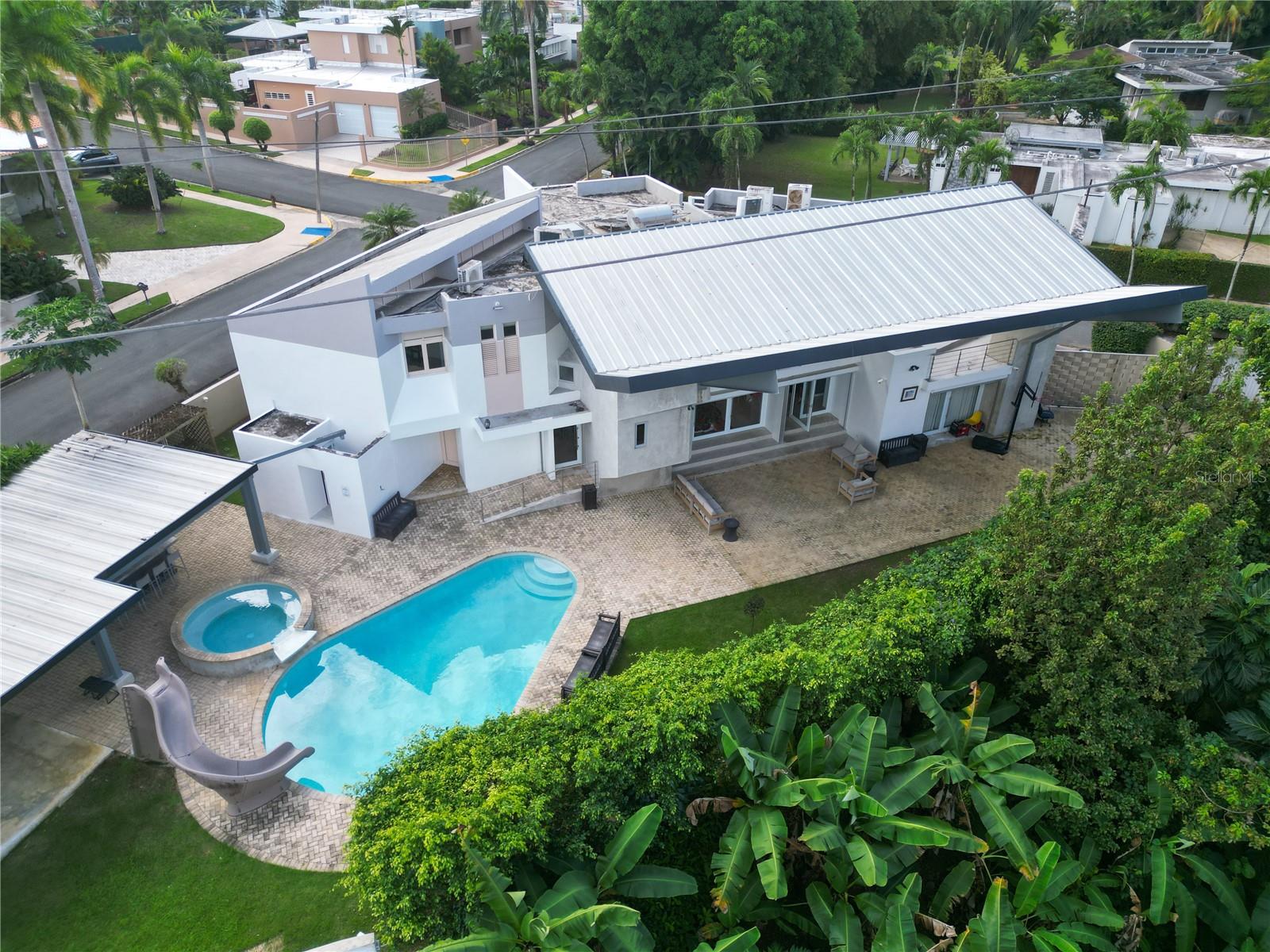 One or more photo(s) has been virtually staged. Stunning Luxury Residence in the Exclusive Santa María Neighborhood, San Juan, Puerto Rico Discover this impressive property with 5,000 square feet of living space, situated on a spacious 1,700-square-meter lot in a quiet cul-de-sac, offering unmatched privacy and security. This residence features 6 bedrooms and 5.5 bathrooms, complemented by high ceilings and abundant natural light that enhance its modern and elegant design. The kitchen is a dream for culinary enthusiasts, equipped with granite countertops and high-end finishes. Highlighted amenities include: Private theater, perfect for enjoying your favorite movies in the comfort of your home. Heated pool, ideal for relaxing year-round. Integrated music system, available throughout the interior and exterior of the house. Backup generator and water cistern, ensuring uninterrupted essential services. Elevator, providing convenience and accessibility to every level. Security windows, offering added peace of mind. Located in one of San Juan's most exclusive neighborhoods, this property combines luxury, comfort, and privacy, making it perfect for those seeking an elevated lifestyle in a privileged setting. Don't miss this unique opportunity. Schedule your visit today and experience the home of your dreams!