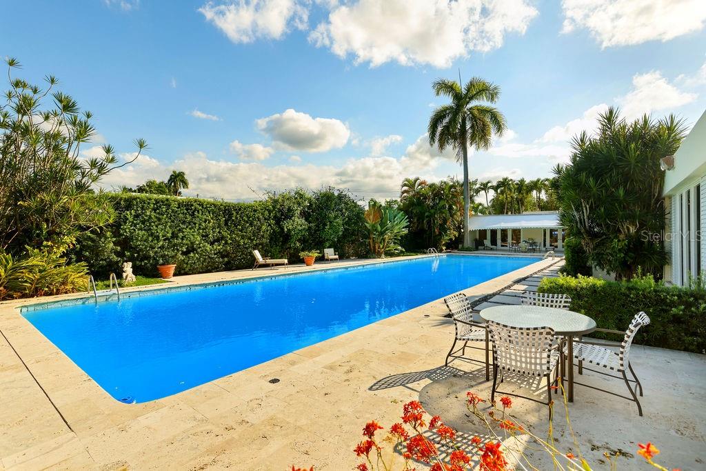 Elegant estate nestled on the coveted Orquidea Street in Santa María, this home offers refined living surrounded by lush landscaping and spacious interiors. This exceptional residence provides expansive, thoughtfully designed spaces on a beautifully landscaped lot of approximately 4,362.16 square meters. The main living area is arranged on a single level, beginning with a tropical garden entrance that leads into a grand living room with seamless access to the patio. Adjacent is an ensuite guest room, perfect for visitors or as a private office. The formal dining room opens to its own intimate patio, followed by a bright, large kitchen with generous storage, laundry room, and a utility room with ensuite bathroom for added convenience. The bedroom wing features four spacious bedrooms and a comfortable family room. Two bedrooms share a large bathroom, while a junior suite includes an office nook. The primary bedroom suite overlooks the pool and patio, offering a peaceful retreat. On the lower level is a versatile open-concept space currently used as a game room, complete with its own kitchen and two full bathrooms. This area could easily be converted into a separate guest suite. Outdoors, the front yard welcomes you with manicured gardens and a stately entrance. In the backyard, a semi-Olympic pool with four swim lanes offers a swimmer’s dream setup, ideal for both recreation and exercise. The home offers an impressive 6,202.70 square feet of interior living space, plus an additional 2,318.40 square feet of terrace, porch, garage, and storage, for a total of approximately 8,521.10 square feet under roof. With 4 bedrooms, 1 guest room, 1 utility room, 7 full bathrooms, 1 half bathroom, and a 3-car garage, this remarkable property delivers both comfort and grandeur. Now available for sale for the first time, schedule your private tour today!