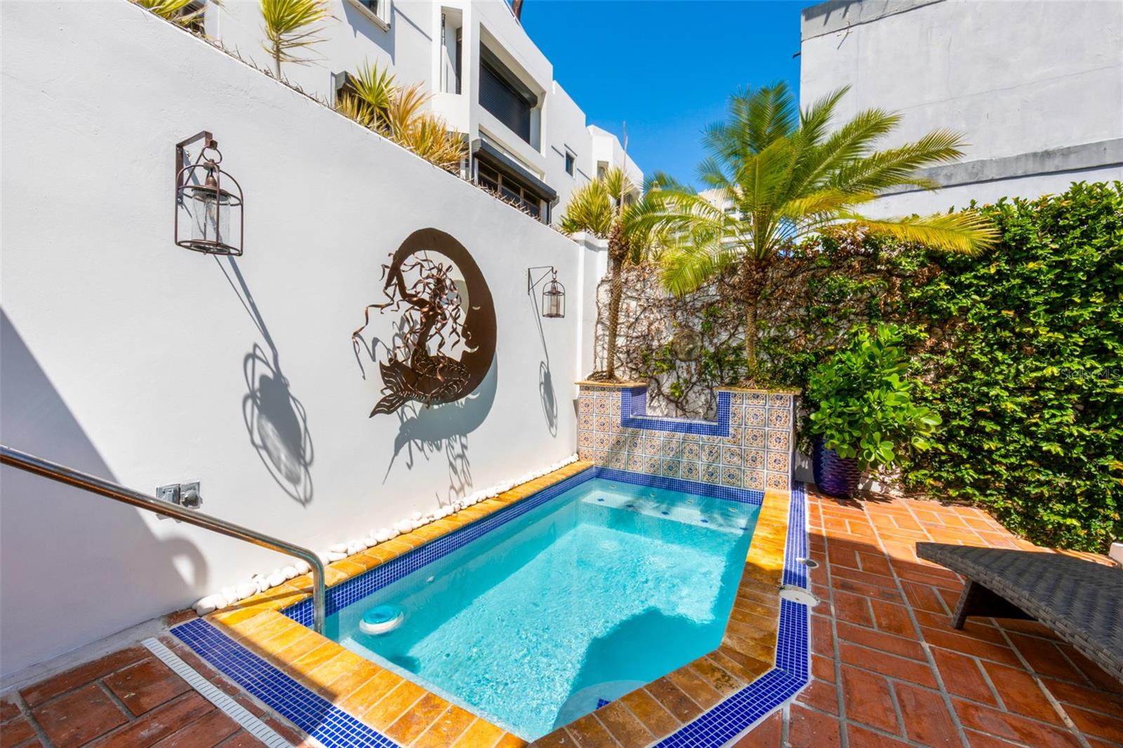 Located on one of the most charming and quiet residential streets in historic Miramar, this fully remodeled Spanish Colonial home offers timeless elegance with modern comfort. Sitting on a corner lot, the two-level residence spans approximately 4,500 square feet and features six bedrooms and four and a half bathrooms. Thoughtful renovations include a redesigned kitchen with high-end appliances and custom wood cabinetry, updated bathrooms, new floors, windows, and roof. Original architectural elements such as arched wrought-iron doors and terracotta tile details have been carefully preserved to honor the home’s heritage. Ideal for entertaining, the property boasts a large covered terrace with a built-in bar and lounge area, plus a beautifully tiled plunge pool with tropical landscaping. Additional features include a full-power generator, water cistern, inverter A/C units (5-ton), and a four-car covered garage. Just steps away from Condado and top restaurants, this is a rare opportunity to own a classic yet turnkey home in one of San Juan’s most coveted neighborhoods.