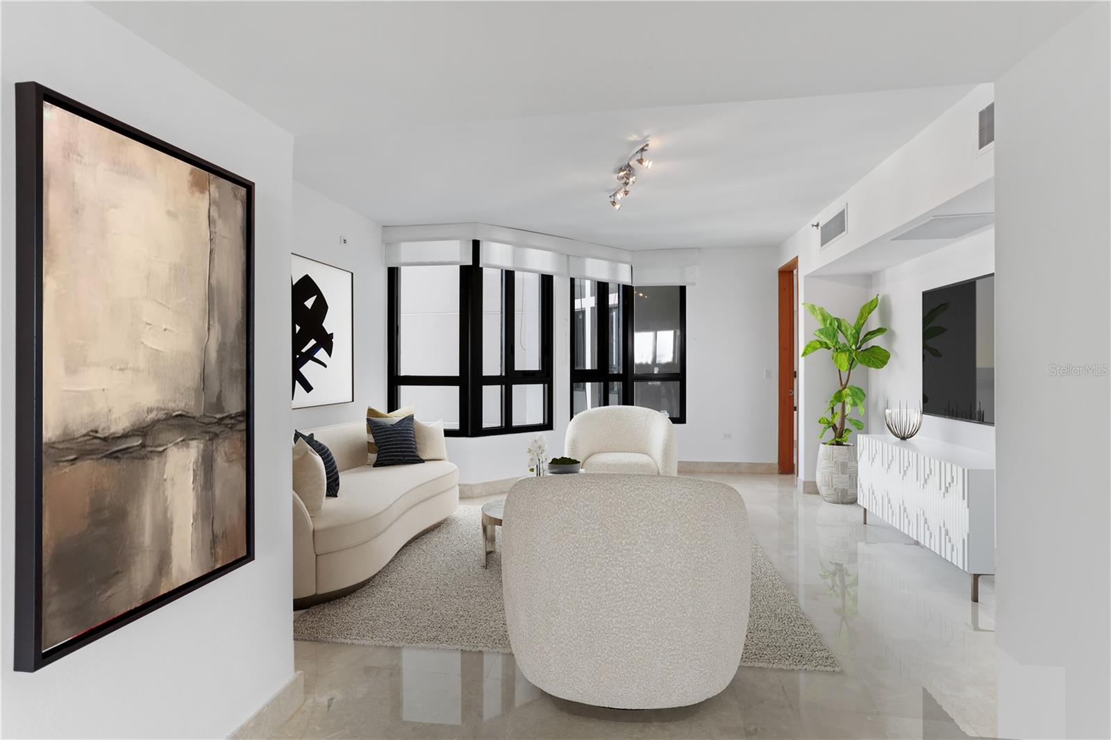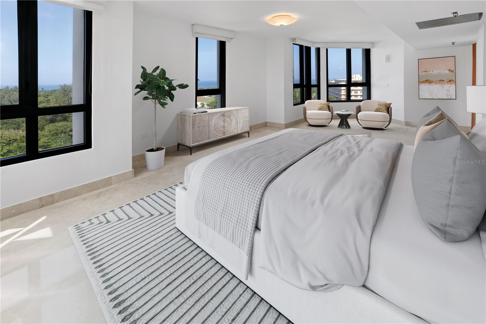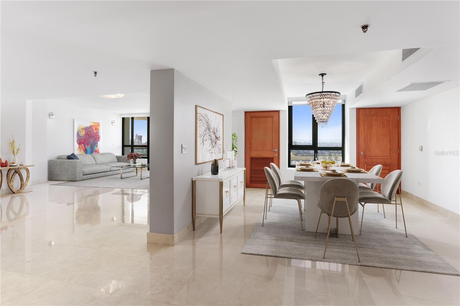 One or more photo(s) has been virtually staged. Discover the pinnacle of luxury living at Caribe Plaza, where elegance meets breathtaking vistas of San Juan Bay Marina, Condado Lagoon, Old San Juan, and the Convention Center. This residence boasts newly renovated marble floors and opens to a private lobby that flows into a spacious great room, seamlessly connecting the dining area, family room, and a gourmet kitchen equipped with top-of-the-line appliances. The primary suite serves as a tranquil retreat with dual closets and an en-suite bathroom. Two additional en-suite bedrooms and a versatile flex room provide ample space, complemented by four full bathrooms and a powder room. Recent enhancements include new vanities, lighting fixtures, and security windows. The property includes three side-by-side parking spaces and a temperature-controlled storage room. Designed for convenience and resilience, the building features a full-power backup generator and a water cistern. Residents enjoy premium amenities such as 24-hour security, concierge and valet services, a fully equipped gym, a heated pool, and an activity room. Perfectly located, Caribe Plaza is steps from Luis Muñoz Rivera Park, the Caribe Hilton Hotel, and Escambrón Beach, with easy access to Condado's top restaurants, shopping, entertainment, and schools. The vibrant Distrito T-Mobile and historic Old San Juan provide endless leisure and exploration opportunities. This property elevates to an unmatched lifestyle in one of San Juan's most sought-after locations. Truly move-in ready and available for sale for the first time!