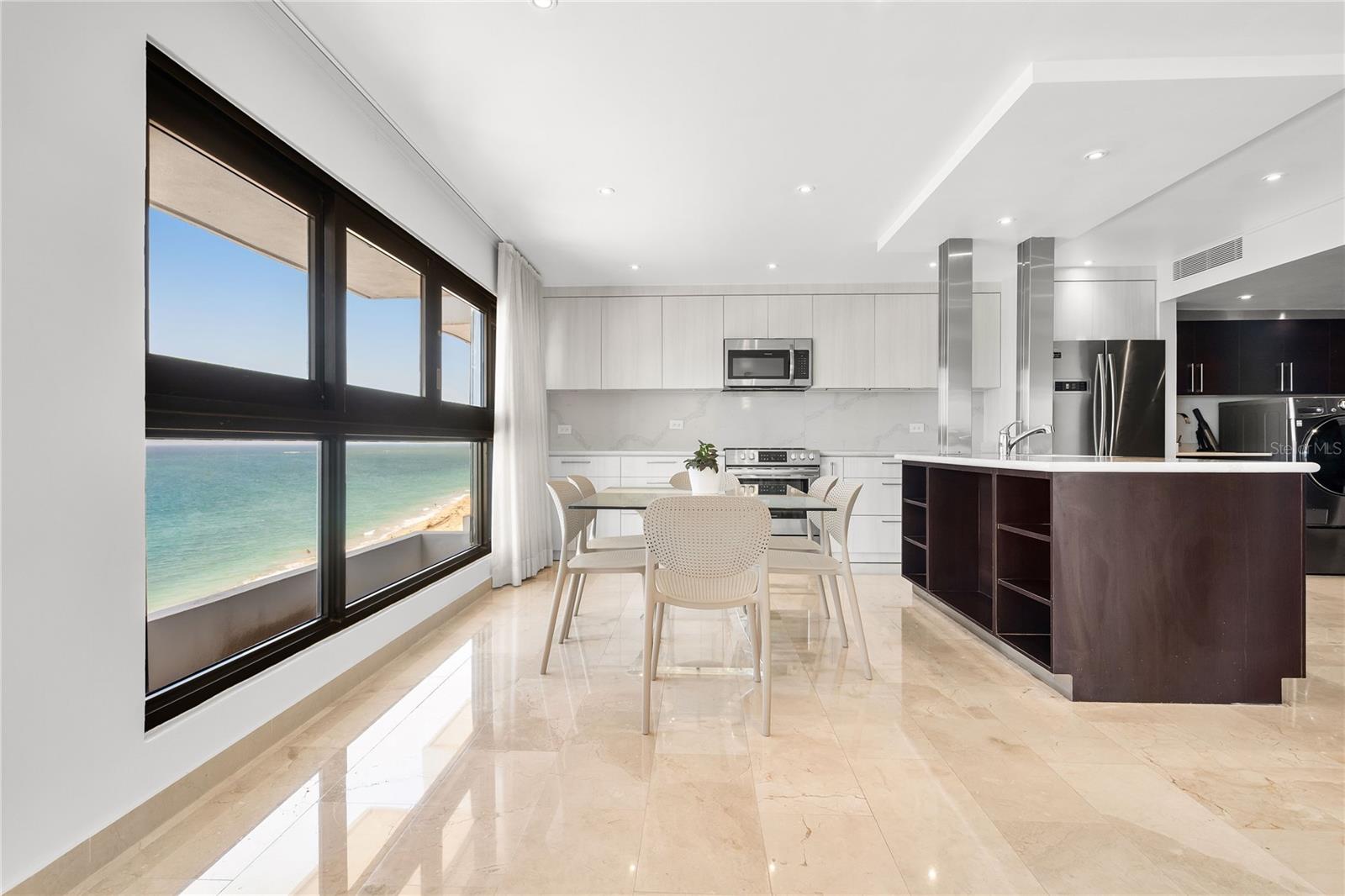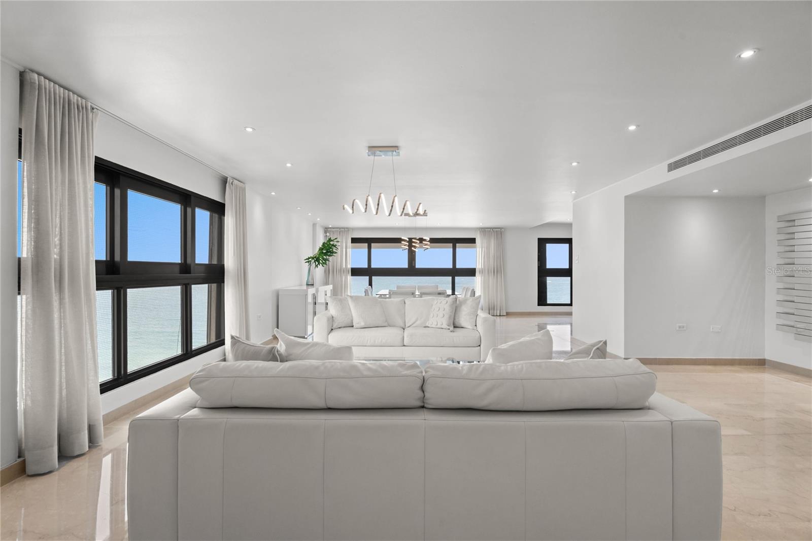 PRIME LOCATION IN CONDADO - Condominio Tenerife, Ashford Avenue, Condado, San Juan, Puerto Rico. Elegant turn key 2,412 sq ft, corner oceanfront / ocean view apartment in one of San Juan’s most elegant neighborhoods, steps from restaurants, iconic hotels, hospitals, shops, and a pristine sandy beach. Fully remodeled with marble floors, modern finishes, and floor-to-ceiling glass windows framing breathtaking, unobstructed views of the Atlantic Ocean. Furnished living room, dining room, eat-in kitchen, and three stylish bedrooms, two and a half bathrooms, including a master suite with spa-inspired bathroom. Gourmet kitchen features refrigerator, microwave, electric oven, and high-efficiency washer/dryer. Building offers total power generator backup, water reservoir, direct beach access, 24/7 security with guard, and only two apartments on each floor. Enjoy three deeded parking spaces (two underground) that can be set up with EV chargers, direct access to Parque del Indio, and miles of walkable seashore. Bank approval letter or proof of funds required to schedule a showing.