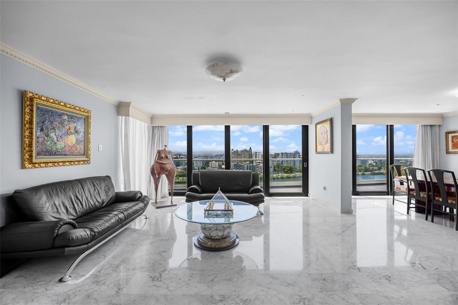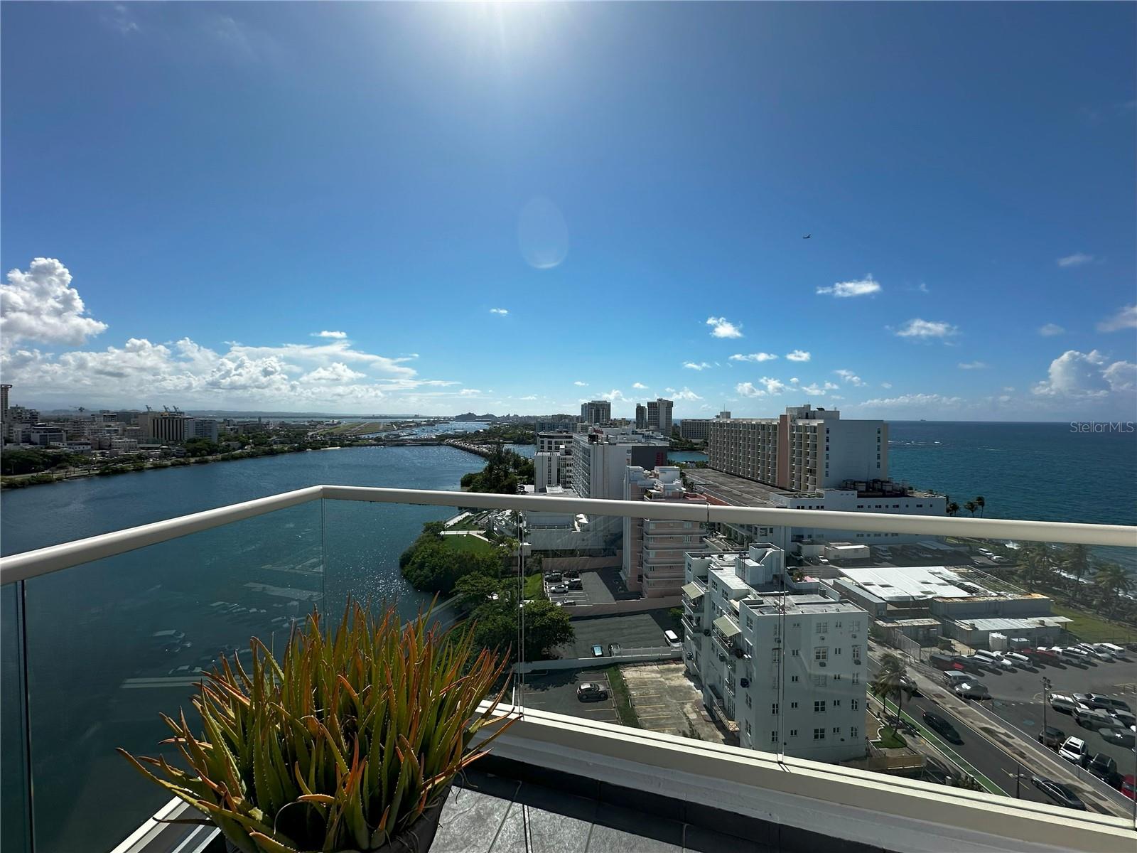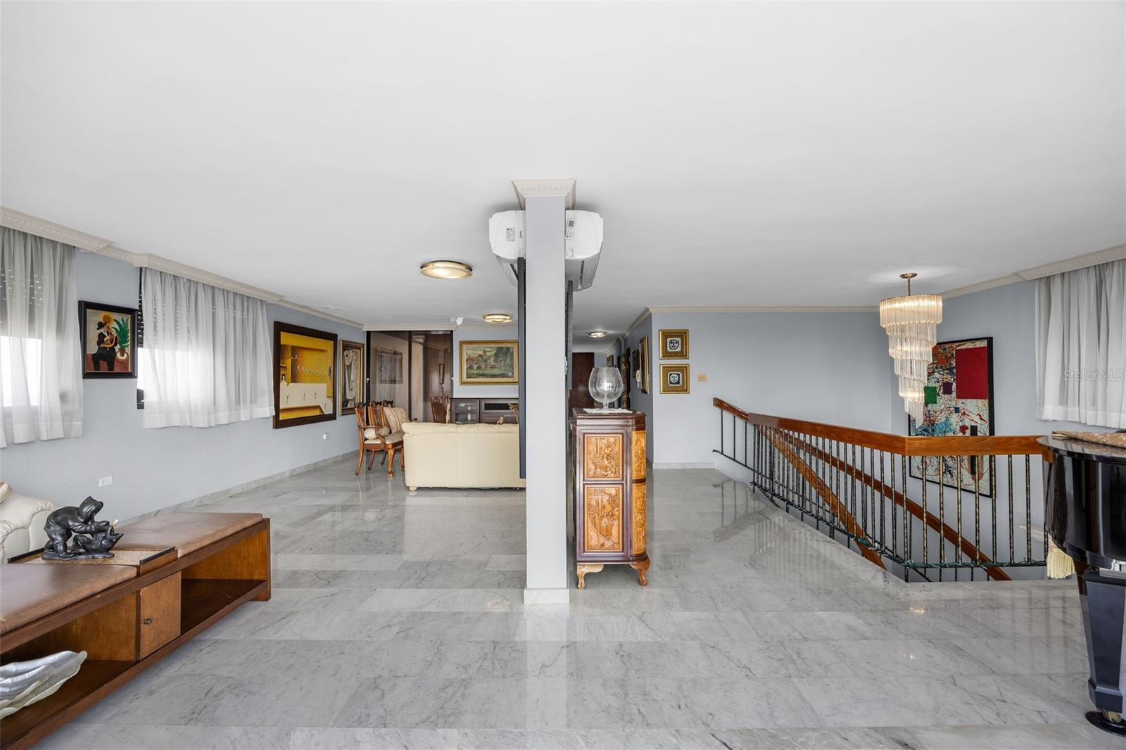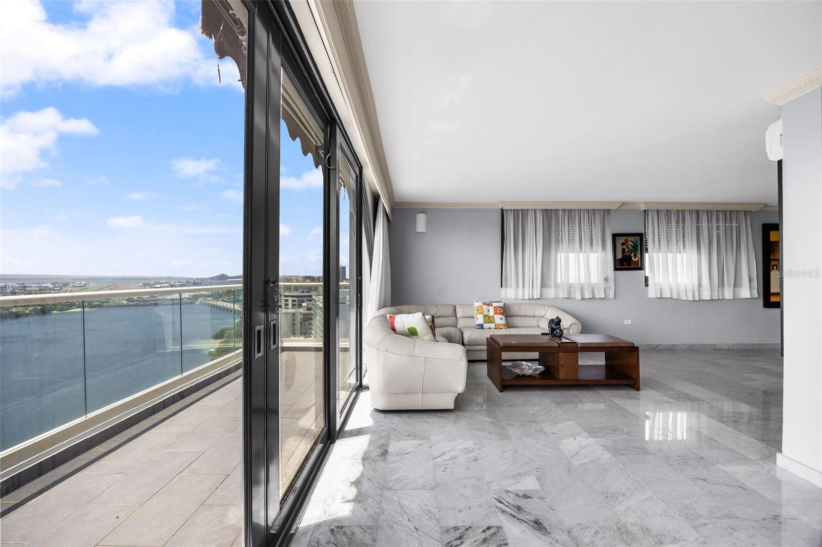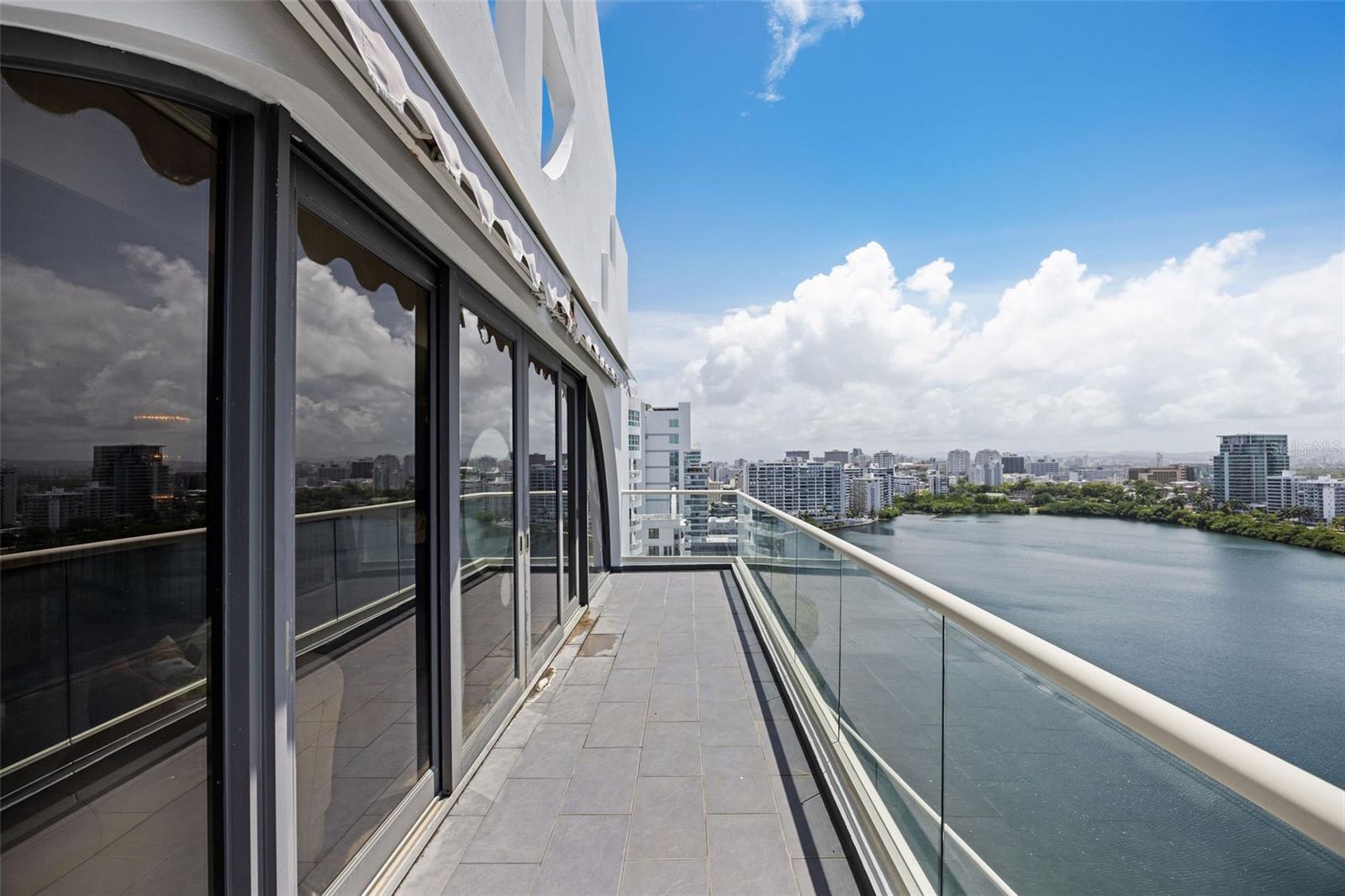 PENTHOUSE FLOOR 17 · 8 COVERED PARKING (4 BACK-TO-BACK) · 6,600 SQ FT · 360° OCEAN VIEWS · 6 BED · 4 FULL + 2 HALF BATHS · Located in Ashford Lagoon Plaza on Condado’s Ashford Avenue, this penthouse occupies the entire 17th floor (PH-17) across two levels plus a mezzanine (third level), 6,600 sq ft (5,729 sq ft GLA). It features 6 bedrooms, 4 full bathrooms, and 2 half baths. From three open terraces you’ll enjoy spectacular vistas: to the south, the city and Condado Lagoon; to the north, the Atlantic Ocean with permanently unobstructed views. Access is exclusive, with two key-access elevators arriving directly into the residence via a private foyer. Interior highlights include space for a private gym, a large family room/lounge overlooking the city and lagoon, and a wine cellar. The building provides direct lagoon access with a small wooden dock, lobby, gym, restrooms/storage, and a full-capacity backup generator for the entire residence—an offering hard to replicate in the area. As an extraordinary advantage, the PH includes 8 covered parking spaces, configured as four back-to-back pairs, a key differentiator for multi-car households or collectors. Compared with Condado market references—where standout penthouses range 2,895–3,991 sq ft and typically with 4–5 parking spaces—this PH far exceeds the size and doubles the parking capacity, positioning it as a truly rare opportunity.