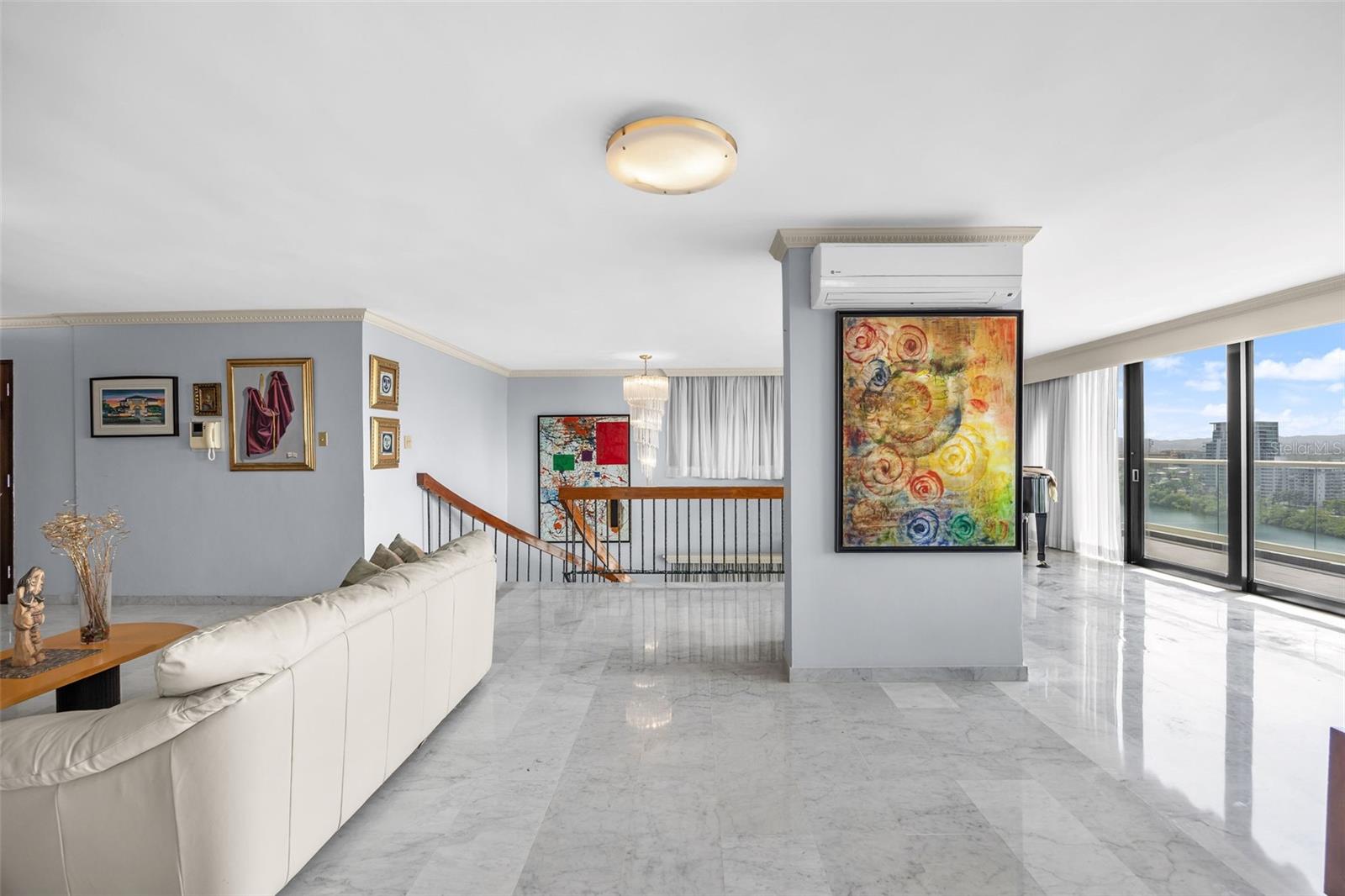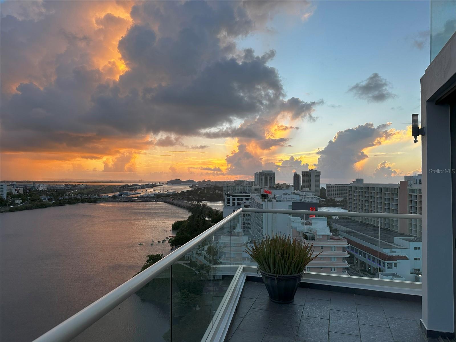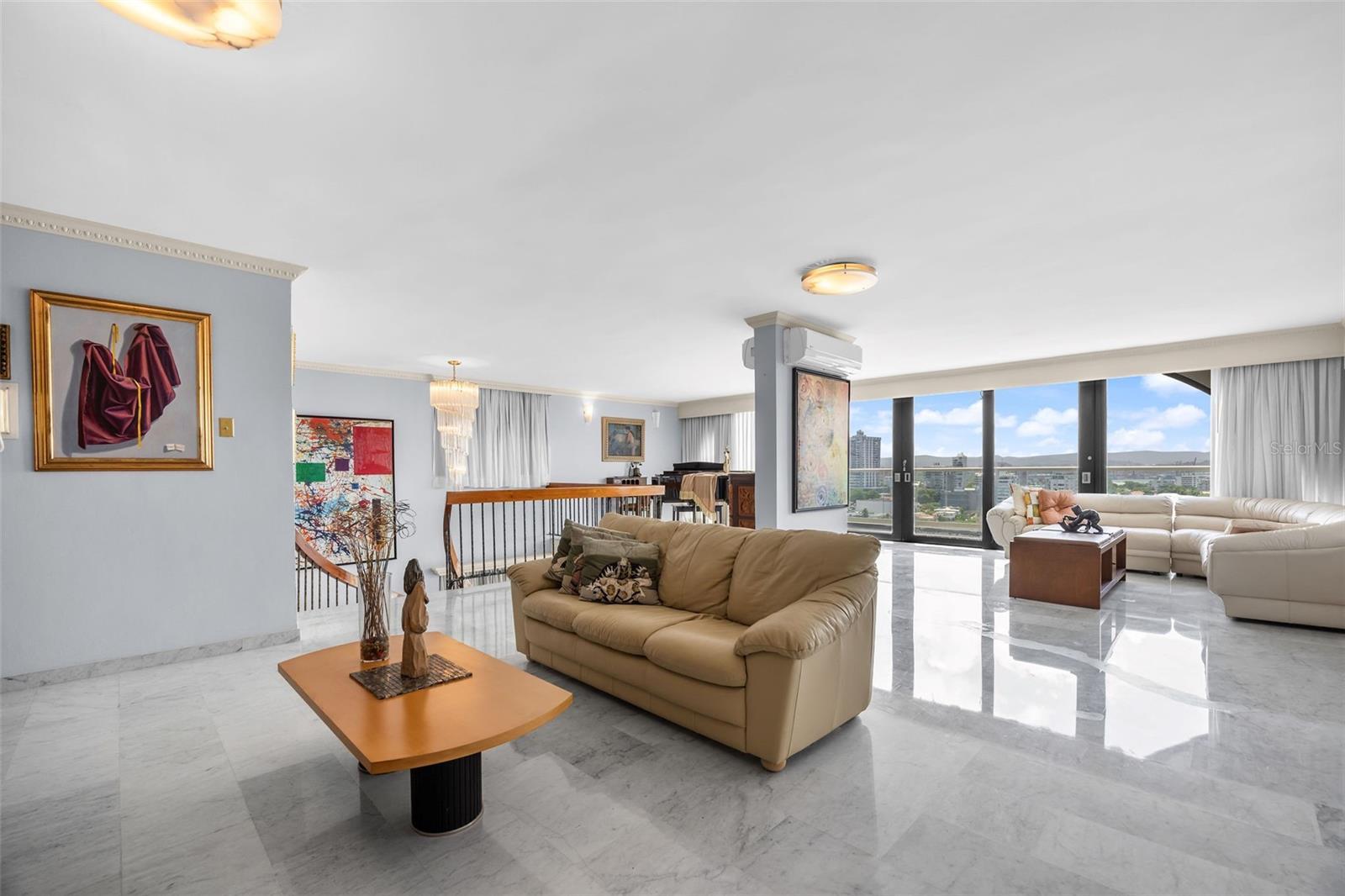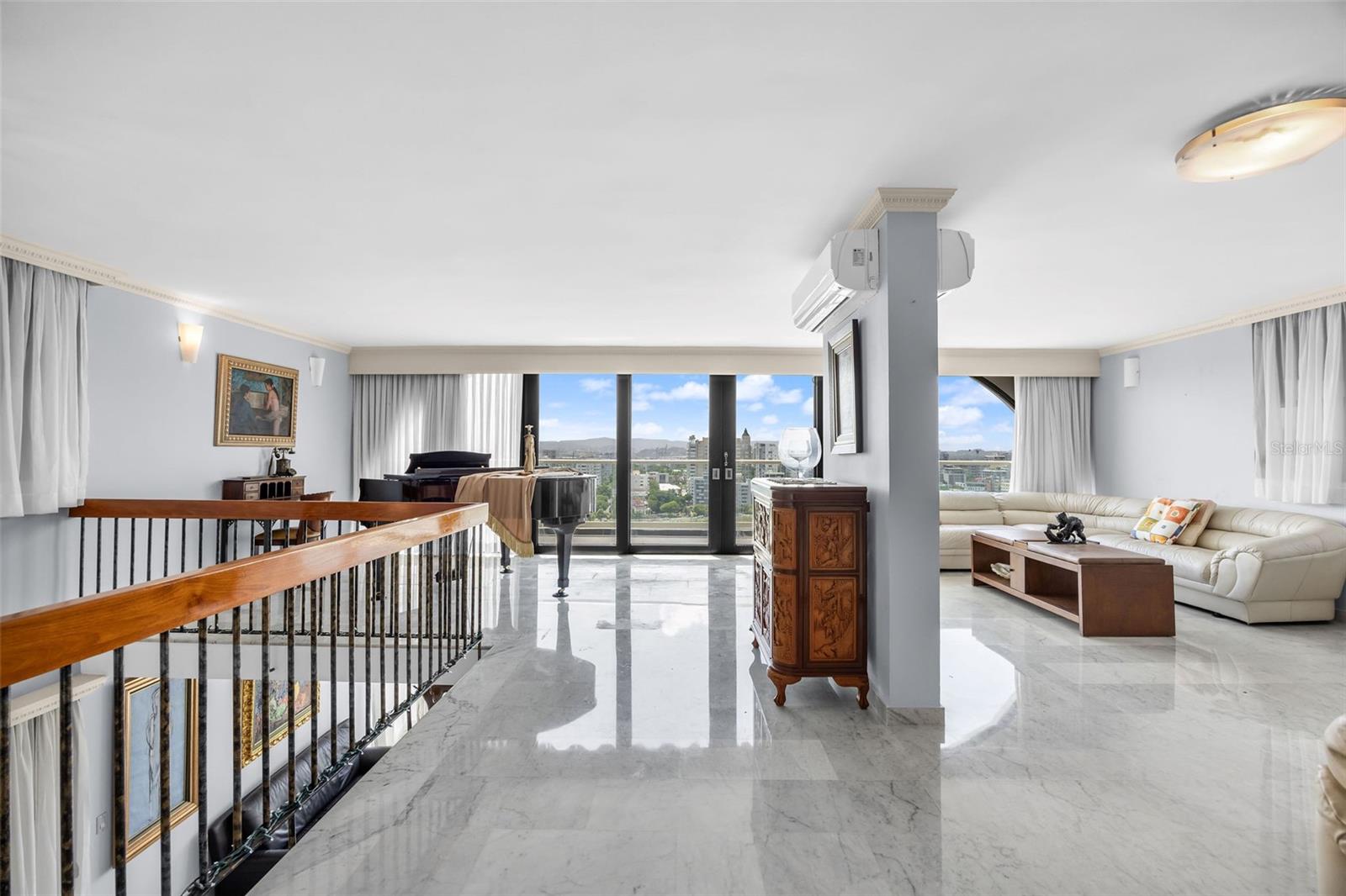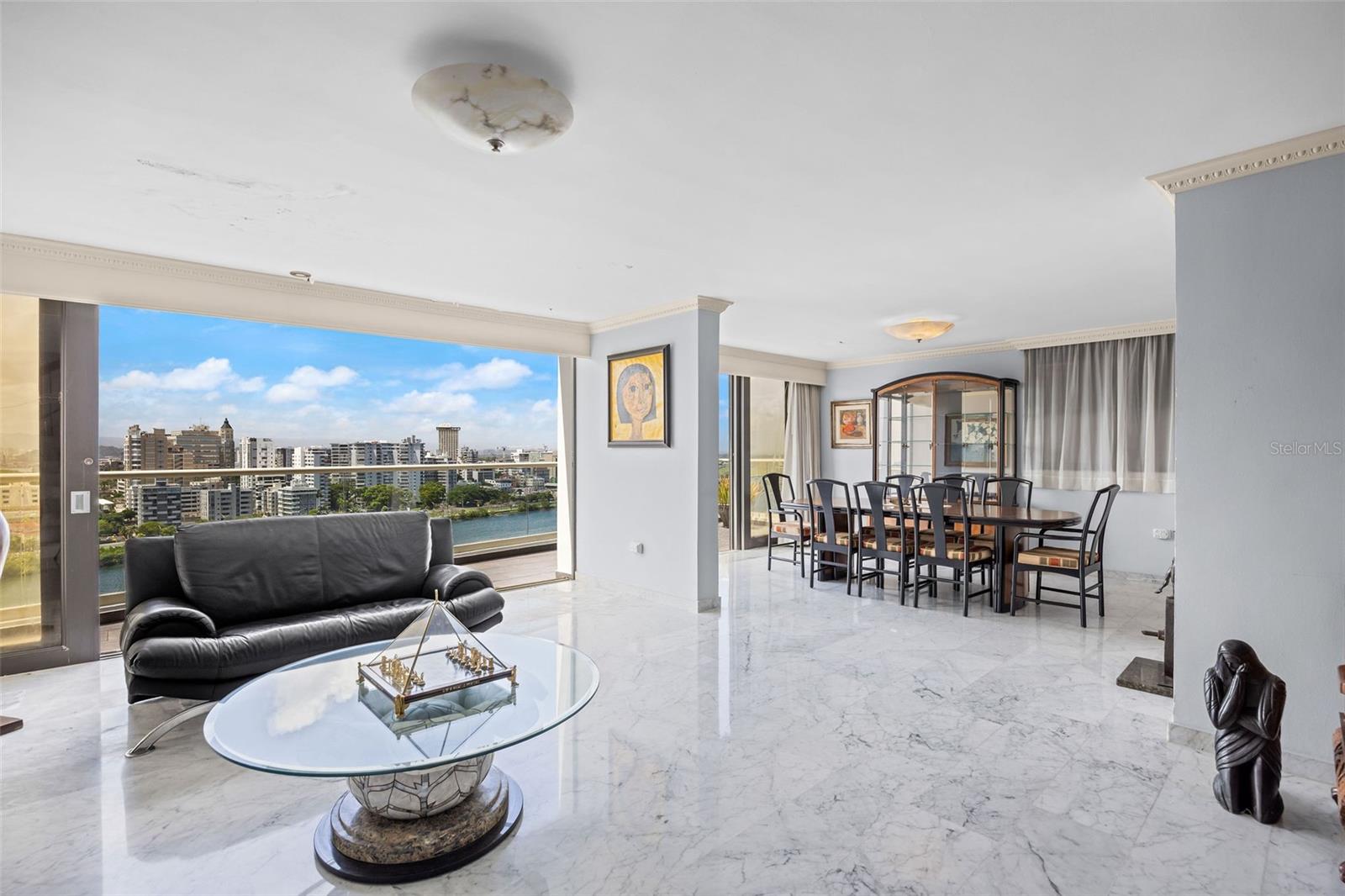 PENTHOUSE FLOOR 17 · 8 COVERED PARKING (4 BACK-TO-BACK) · 6,600 SQ FT · 360° OCEAN VIEWS · 6 BED · 4 FULL + 2 HALF BATHS · Located in Ashford Lagoon Plaza on Condado’s Ashford Avenue, this penthouse occupies the entire 17th floor (PH-17) across two levels plus a mezzanine (third level), 6,600 sq ft (5,729 sq ft GLA). It features 6 bedrooms, 4 full bathrooms, and 2 half baths. From three open terraces you’ll enjoy spectacular vistas: to the south, the city and Condado Lagoon; to the north, the Atlantic Ocean with permanently unobstructed views. Access is exclusive, with two key-access elevators arriving directly into the residence via a private foyer. Interior highlights include space for a private gym, a large family room/lounge overlooking the city and lagoon, and a wine cellar. The building provides direct lagoon access with a small wooden dock, lobby, gym, restrooms/storage, and a full-capacity backup generator for the entire residence—an offering hard to replicate in the area. As an extraordinary advantage, the PH includes 8 covered parking spaces, configured as four back-to-back pairs, a key differentiator for multi-car households or collectors. Compared with Condado market references—where standout penthouses range 2,895–3,991 sq ft and typically with 4–5 parking spaces—this PH far exceeds the size and doubles the parking capacity, positioning it as a truly rare opportunity.