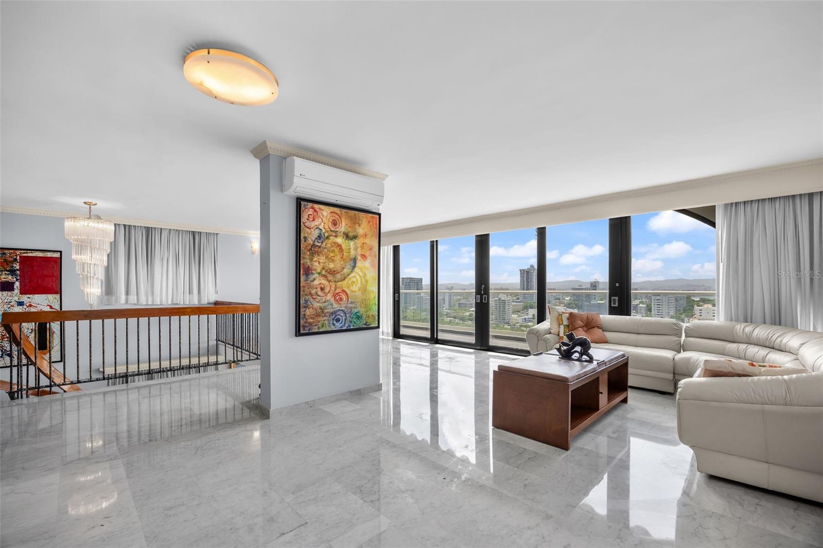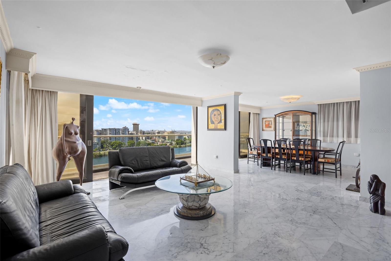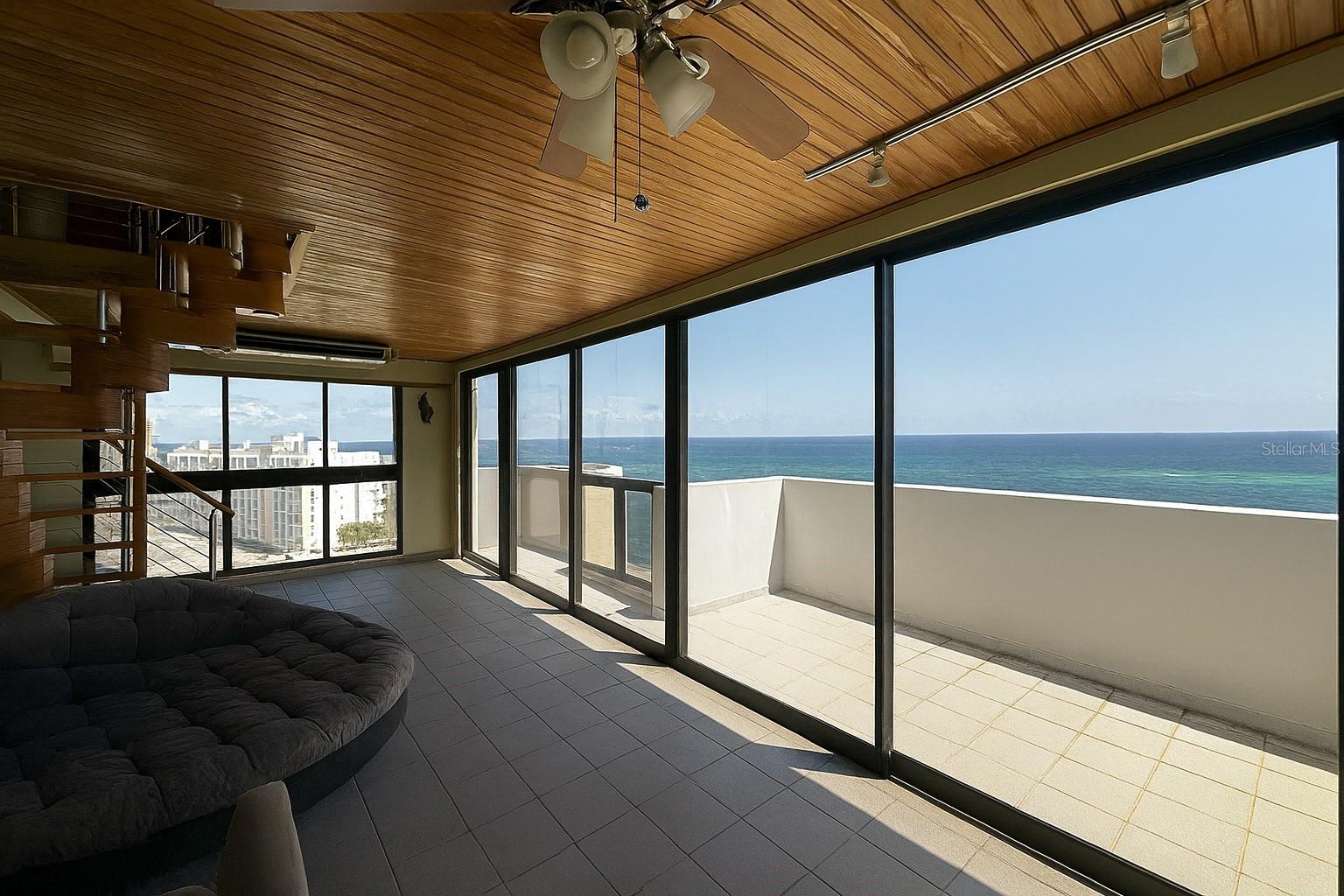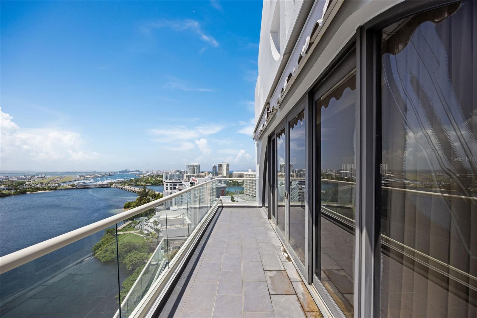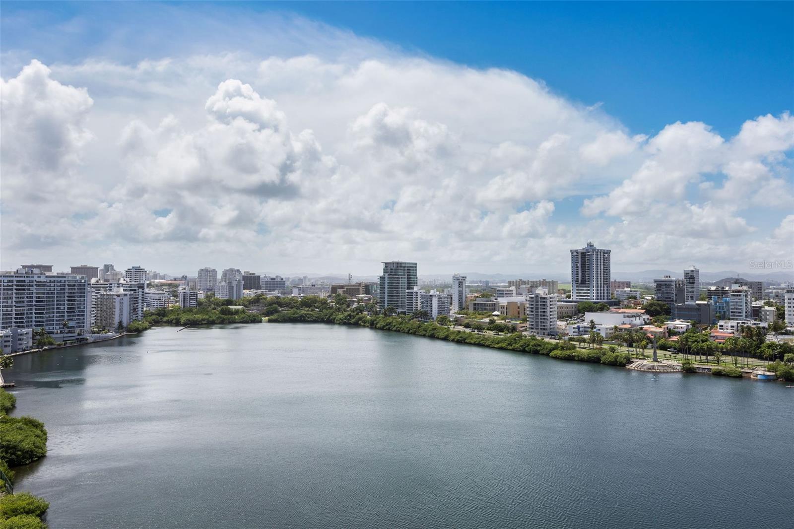 PENTHOUSE FLOOR 17 · 8 COVERED PARKING (4 BACK-TO-BACK) · 6,600 SQ FT · 360° OCEAN VIEWS · 6 BED · 4 FULL + 2 HALF BATHS · Located in Ashford Lagoon Plaza on Condado’s Ashford Avenue, this penthouse occupies the entire 17th floor (PH-17) across two levels plus a mezzanine (third level), 6,600 sq ft (5,729 sq ft GLA). It features 6 bedrooms, 4 full bathrooms, and 2 half baths. From three open terraces you’ll enjoy spectacular vistas: to the south, the city and Condado Lagoon; to the north, the Atlantic Ocean with permanently unobstructed views. Access is exclusive, with two key-access elevators arriving directly into the residence via a private foyer. Interior highlights include space for a private gym, a large family room/lounge overlooking the city and lagoon, and a wine cellar. The building provides direct lagoon access with a small wooden dock, lobby, gym, restrooms/storage, and a full-capacity backup generator for the entire residence—an offering hard to replicate in the area. As an extraordinary advantage, the PH includes 8 covered parking spaces, configured as four back-to-back pairs, a key differentiator for multi-car households or collectors. Compared with Condado market references—where standout penthouses range 2,895–3,991 sq ft and typically with 4–5 parking spaces—this PH far exceeds the size and doubles the parking capacity, positioning it as a truly rare opportunity.